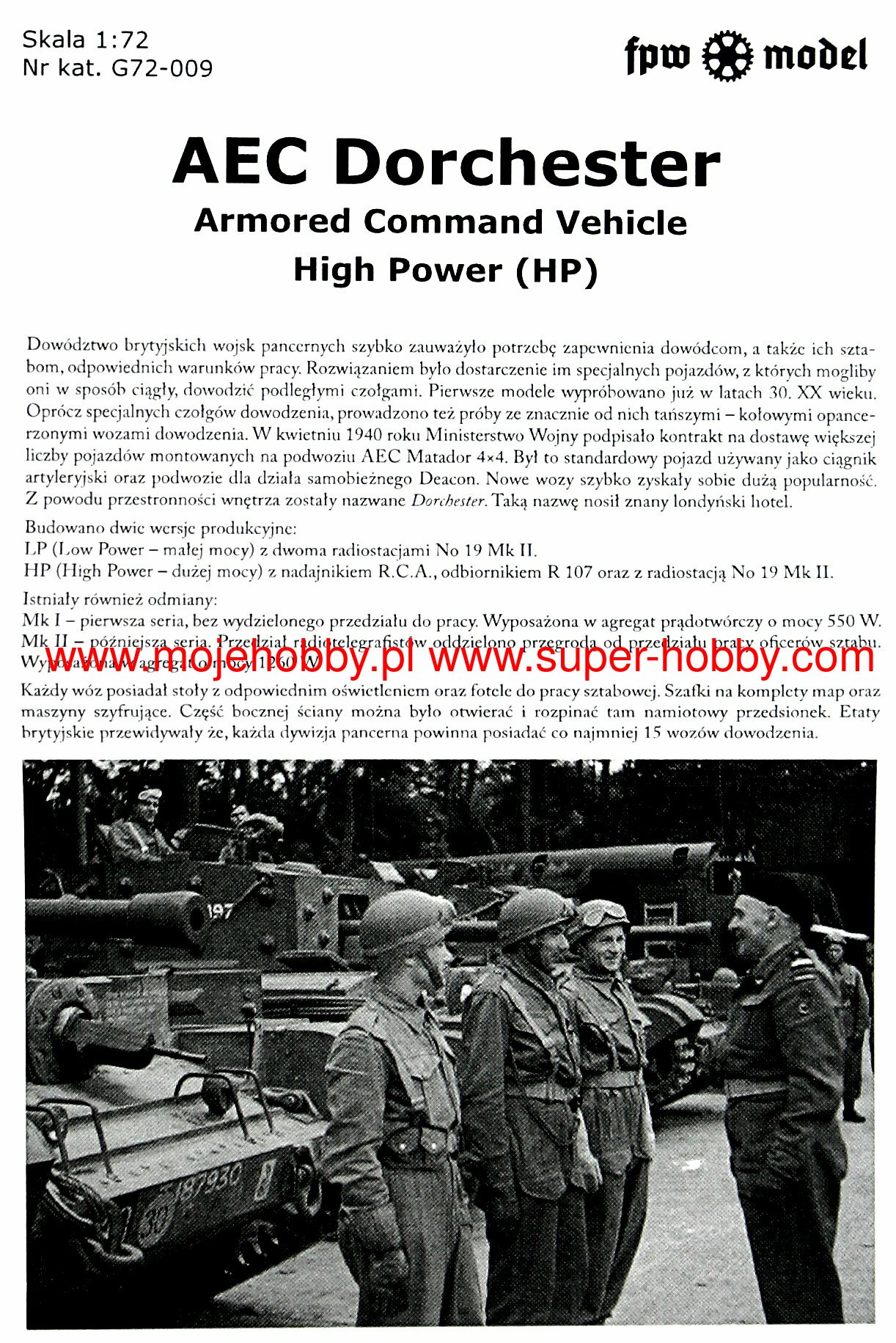 The AEC Dorchester was a British armored command vehicle of the Second World War. The first prototypes were built in 1939, and serial production continued in the period 1941-1943. In total, about 410 examples of this vehicle were built. The AEC Dorchester was powered by an engine AEC A187 with 95 HP. The basic version of the vehicle was armed with a single 7.7mm Bren machine gun. At the end of the 1930s, the command of the British Army saw the need to provide officers of the middle and higher rank of mechanized and armored troops with the ability to command subordinate units in the field and to provide them with appropriate mobility command posts. The demanded answer was just that The AEC Dorchester, which was initially built on the Moris C9 / LAC truck chassis, and was finally mounted on the AEC Matador 4x4 truck chassis. This type of vehicle, due to its low failure rate, spacious interior and good working conditions, gained considerable recognition and popularity among British officers. One AEC Dorchester was captured by German troops in North Africa and was used by Erwin Rómml as a command vehicle. Two versions of the AEC Dorchester were created. The first (Mk. I) did not have a separate workplace for officers and was equipped with a 550 W power generator. The second version (Mk. II) had separate compartments for radio telegraphists and officers, and it was equipped with a power generator with a capacity of 1260 W. AEC Dorchester cars they served mainly during the fighting in North Africa (1940-1943), in Italy, France and West Germany in the period 1943-1945. They were also used by the Polish Armed Forces in the West (PES).