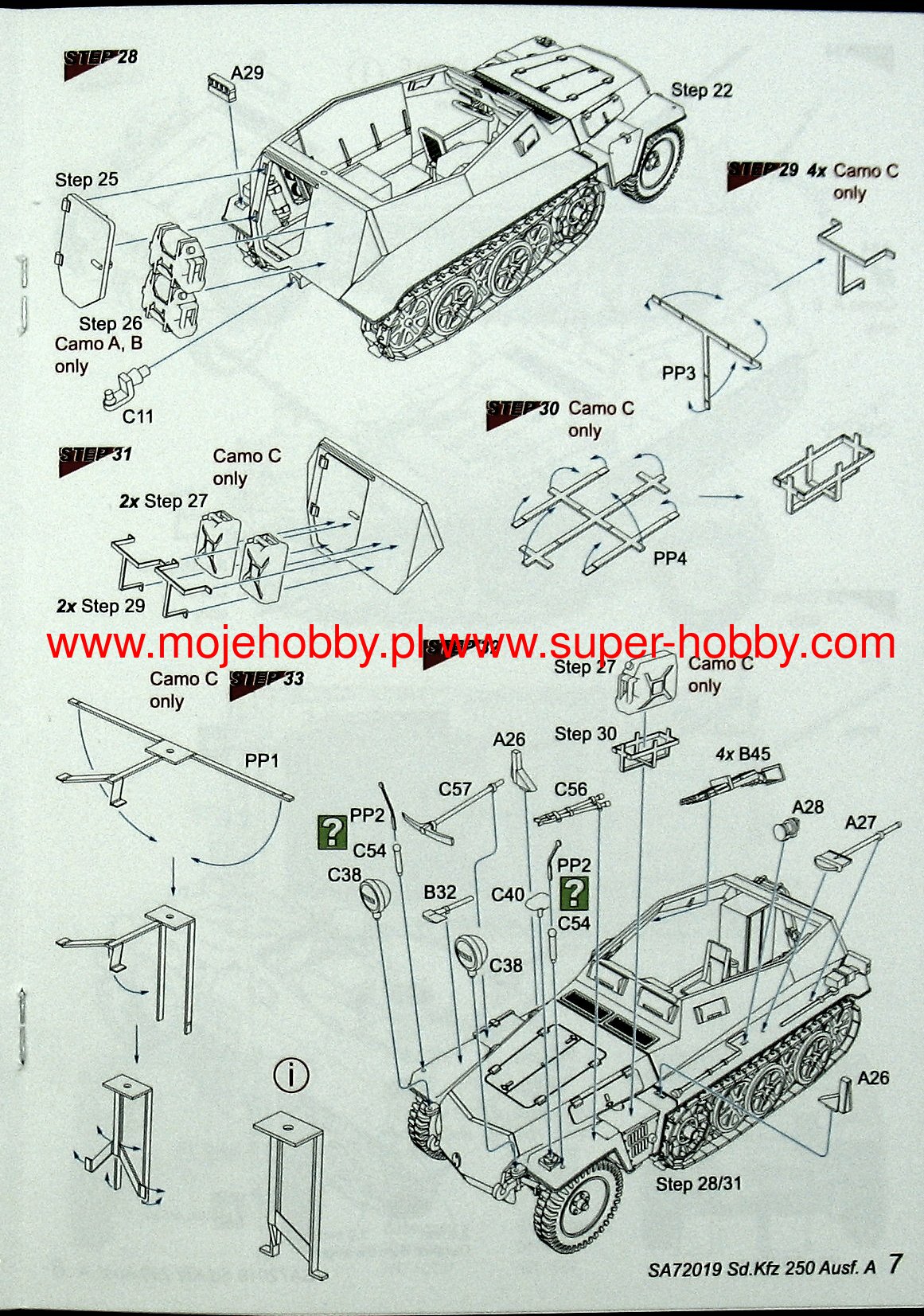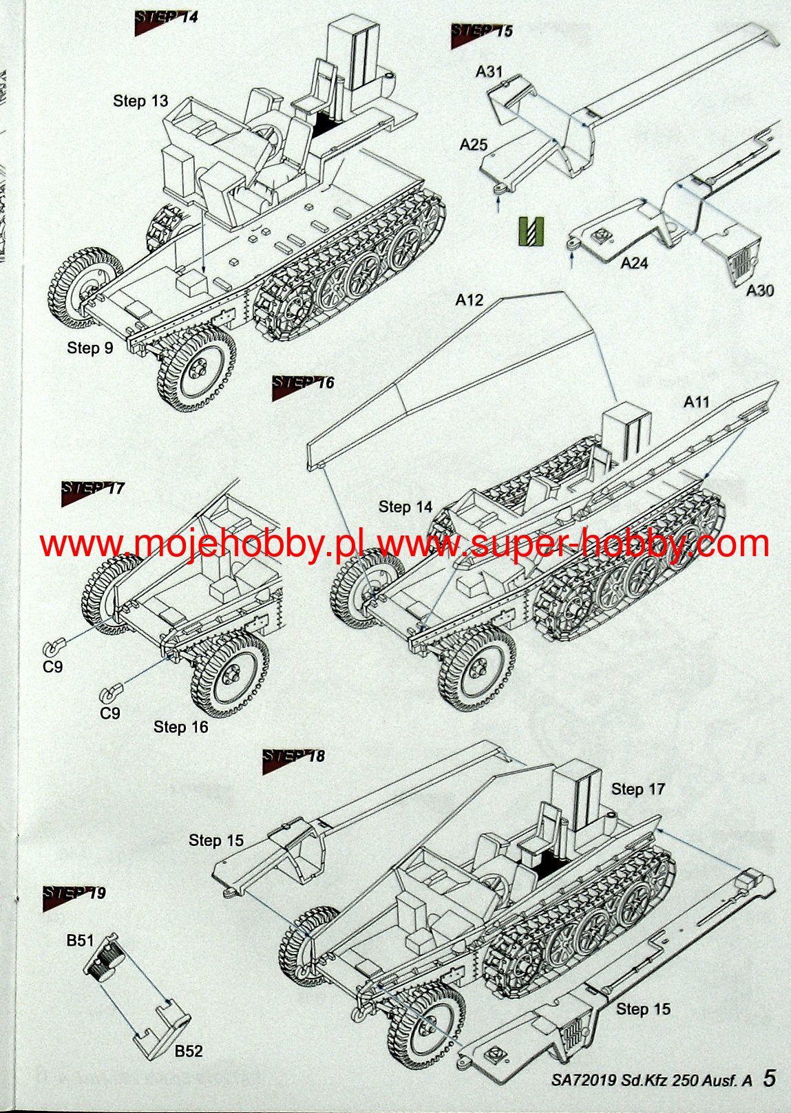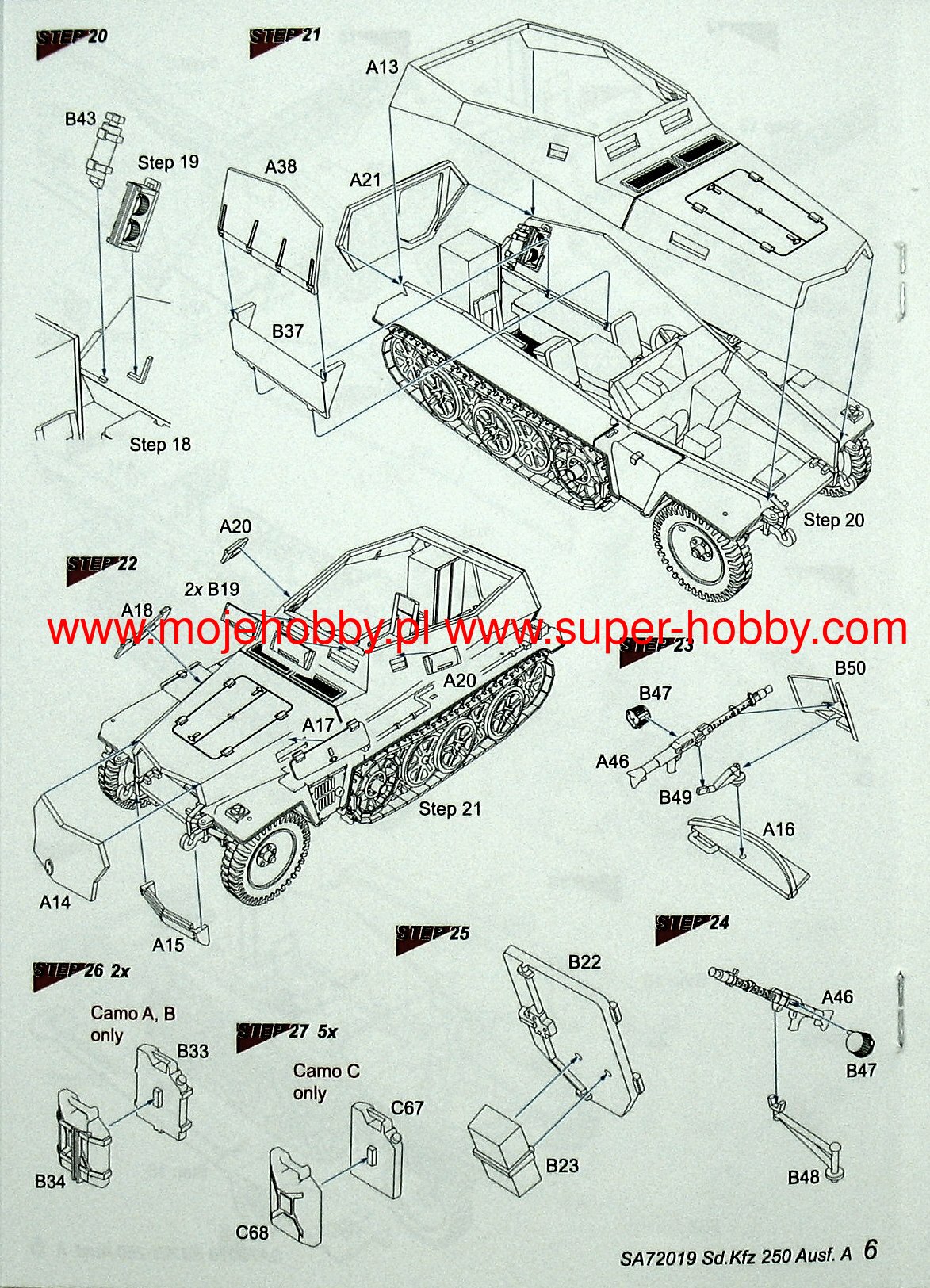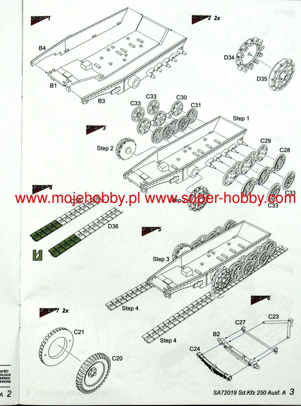 Sd.Kfz 250 was a German light, half-track armored transport from the Second World War. The first prototypes of the vehicle were created in 1939, and serial production continued in the period 1940-1944, ending with the production of about 6,700 units. The Sd.Kfz 250 was powered by a six-cylinder engine Maybach HL 42 TRKM with 100 hp . The Sd.Kfz 250 was developed as a light reconnaissance and multipurpose vehicle for the German armored divisions and panzer grenadiers. In the course of serial production, two versions of the Sd.Kfz 250 hull were created: the first (called "alt") had undercut side hull plates and a broken armor plate at the front of the hull. In 1943, the "neu" version was introduced, which was simplified: the hull sides were flat, as was the armor plate on the front of the car. During the Second World War, several variants and versions of the Sd.Kfz 250 were created. The first chronological version was the Sd.Kfz 250/1, which was the basic version and could function as a light infantry transporter or reconnaissance vehicle. Later, the Sd.Kfz 250/3 version appeared, which was a command version with a long-range loop antenna and a long-range radio. Later, a version armed with an 80 mm mortar (Sd.Kfz 250/7), a 28 mm anti-tank gun (Sd.Kfz 250/11) or a reconnaissance vehicle with a 20 mm cannon in a rotating turret (Sd. Kfz 250/9). Cars Sd.Kfz 250 of all versions were used primarily in armored divisions and armored grenadiers on virtually all fronts of World War II.