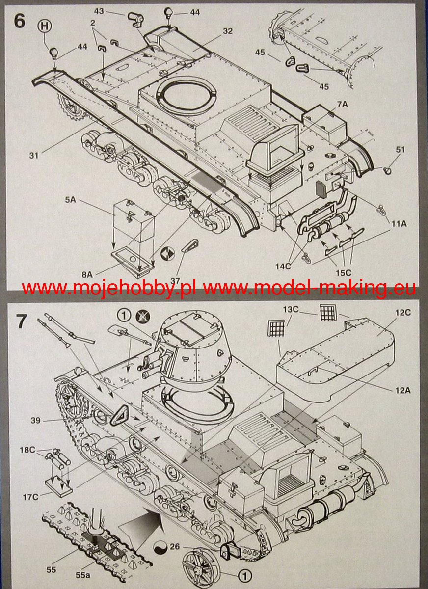 The Vickers E tank (Mark E or Vickers 6-ton) became an export hit to countries where the armaments industry did not produce its tanks. The prototype was built in 1928. It was originally offered to the British Army but rejected it. The tank was built in a twin-turret version as type A and in a single-turret version as type B. For the export version, the turret with the 47 mm gun was moved to the left side (which relieved the driver) and the middle part of the hull was shortened. Countries that purchased the Vickers E could also purchase a license for the tank components that were manufactured at Vickers-Armstrong. Poland managed to obtain such licenses without a special surcharge. The tank was used in the armies of Afghanistan, Bolivia, Estonia, Finland, the USSR, and even Greece, Siam or Japan. On the basis of this design, the Polish 7TP tank and the Soviet T-26 were created. Technical data (version B): length (with a barrel): 4.88m, width: 2.41m, height: 2.16m, engine power: 80-98KM, range: 160km, maximum speed (on the road): 35 km / h, armament: 1 Vickers-Amstrong Mk. E cal. 47 mm, 1 Vickers machine gun cal. 7.7 mm.Download Mirage Hobby PDF catalogue