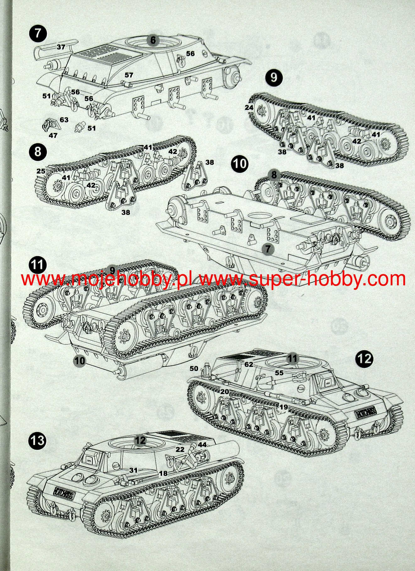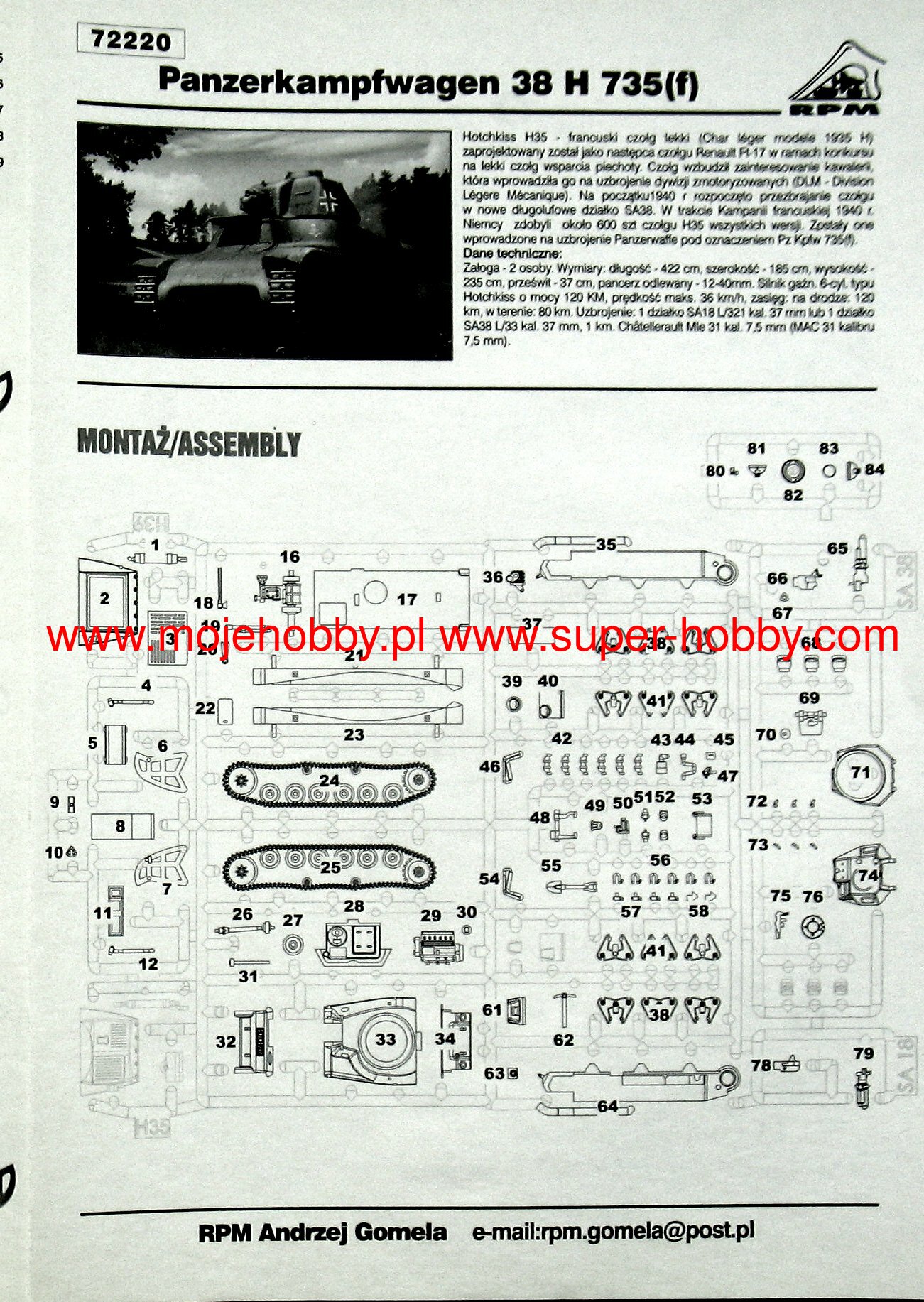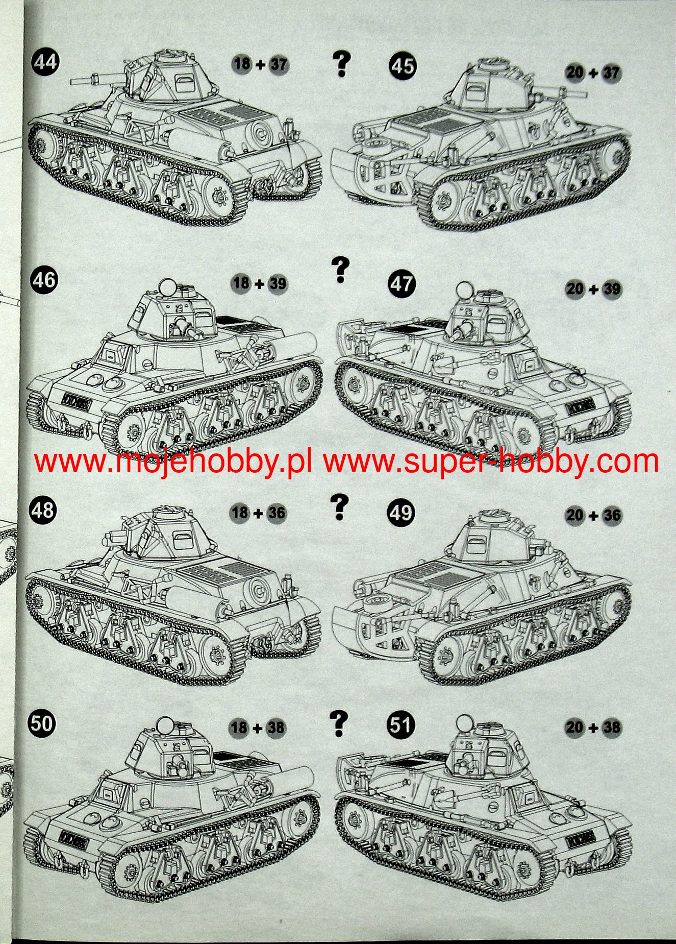 The Hotchkiss H-35 / H-39 is a French light tank from the interwar period and World War II. The first prototypes of this car were made in 1934, and serial production was carried out in the years 1936-1940. In total, about 1,200 tanks of this type of all versions were built. The drive was provided by a single Hotchkiss engine with a power of 78 HP. The wagon's hull was 4.22 m long and 1.95 m wide. The weight was 11 tons, and the operating range was approx. 130 kilometers. The main armament - in the H-35 version - was the 37mm SA18 cannon, and the secondary armament consisted of a single 7.5mm Reibel MAC31 machinegun. The Hotchkiss H-35 tank was developed for the needs of the French armed forces, which in the 1930s sought to replace the outdated Renault FT-17 vehicles with a much newer design. The new vehicle was supposed to be an infantry support vehicle, so the main emphasis was placed on the best possible armor (for this class of vehicles) and good armament, and the top speed was treated rather secondarily. Finally, a vehicle was created that is externally similar to the Renault R-35 and has many common features (e.g. cast armor). After its entry into service, the Hotchkiss H-35 was modernized, unofficially marked as H-39 (official name: Char leger models 1935 H modifie 1939), which primarily had an engine with a significantly greater maximum power, reaching up to 120 HP. It also featured an elevated engine compartment. From the beginning of 1940, the H-39 cars were delivered to units with a cannon The 37mm Puteaux SA38, which had better ballistic parameters than the gun SA18 of the same caliber. The H-35 / H-39 vehicles were used in combat in the 1940 campaign. It is worth adding that many cars of this type were captured by the Germans, who used them in various ways until 1944.