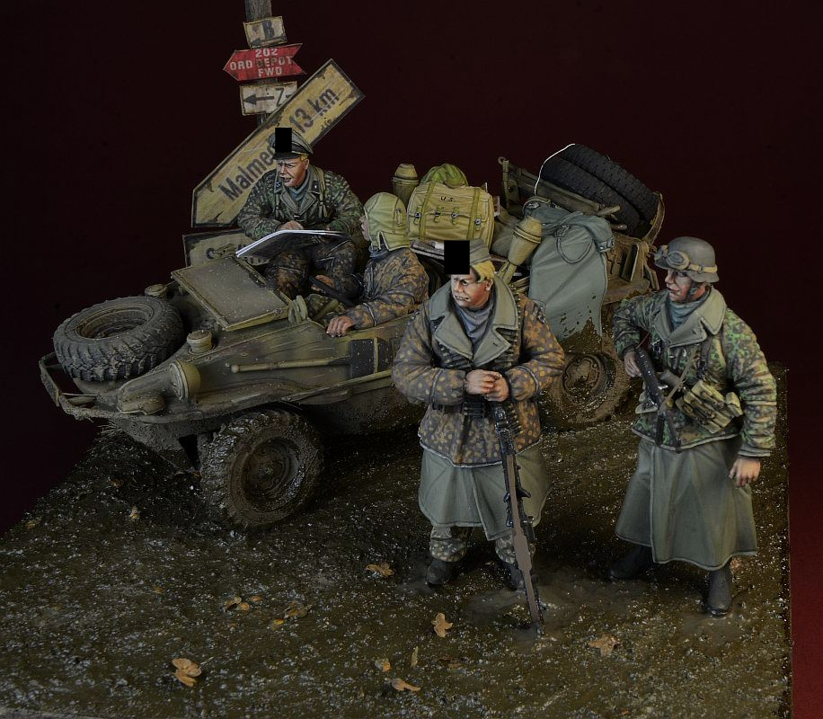 35162 WAFFEN SS BIG SET, ARDENNES 1944, 4 FIGURES + SCHWIMMWAGEN ACCESSORIES (DESIGNED FOR TAMIYA KIT) d-day miniature studio 1/35