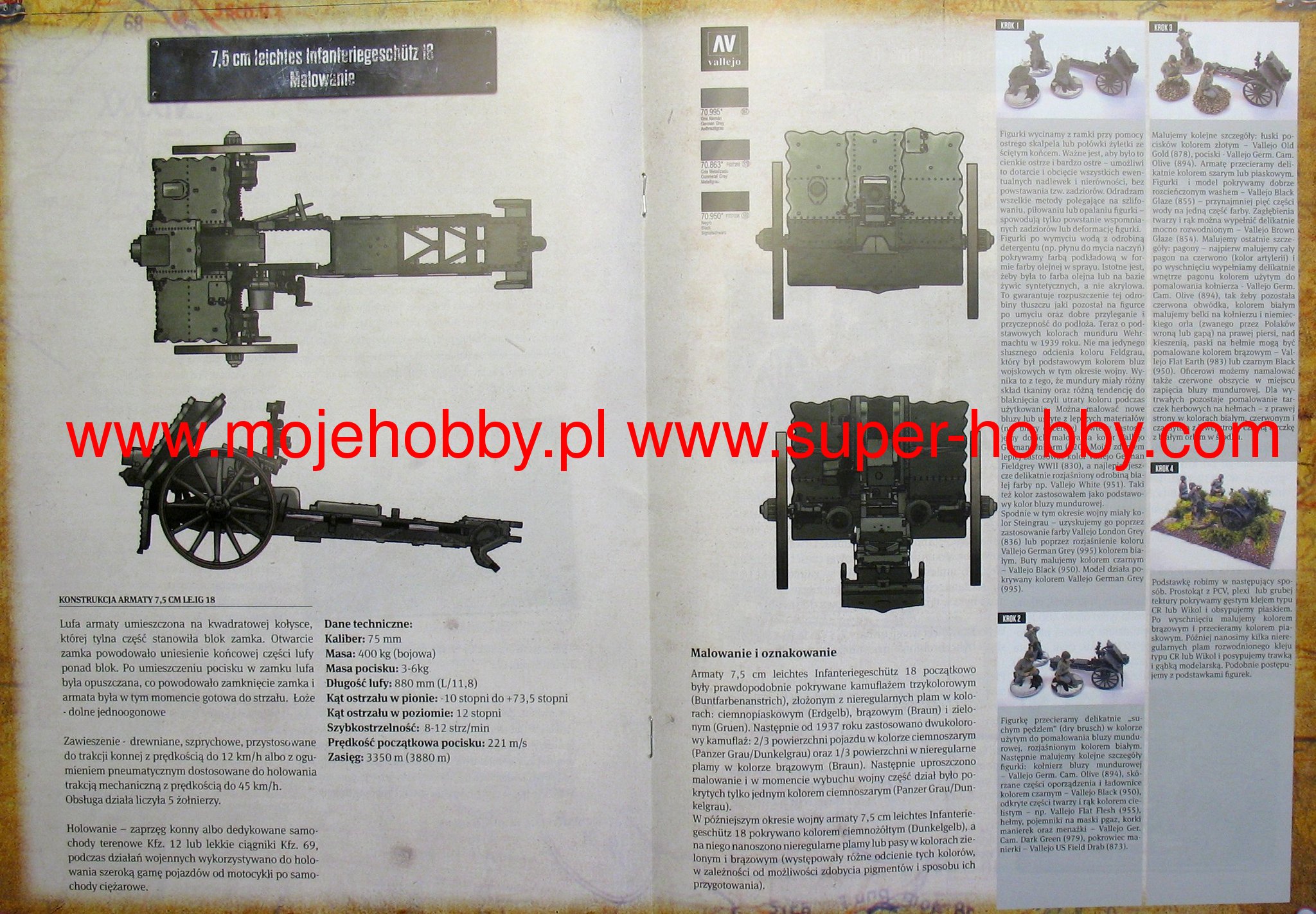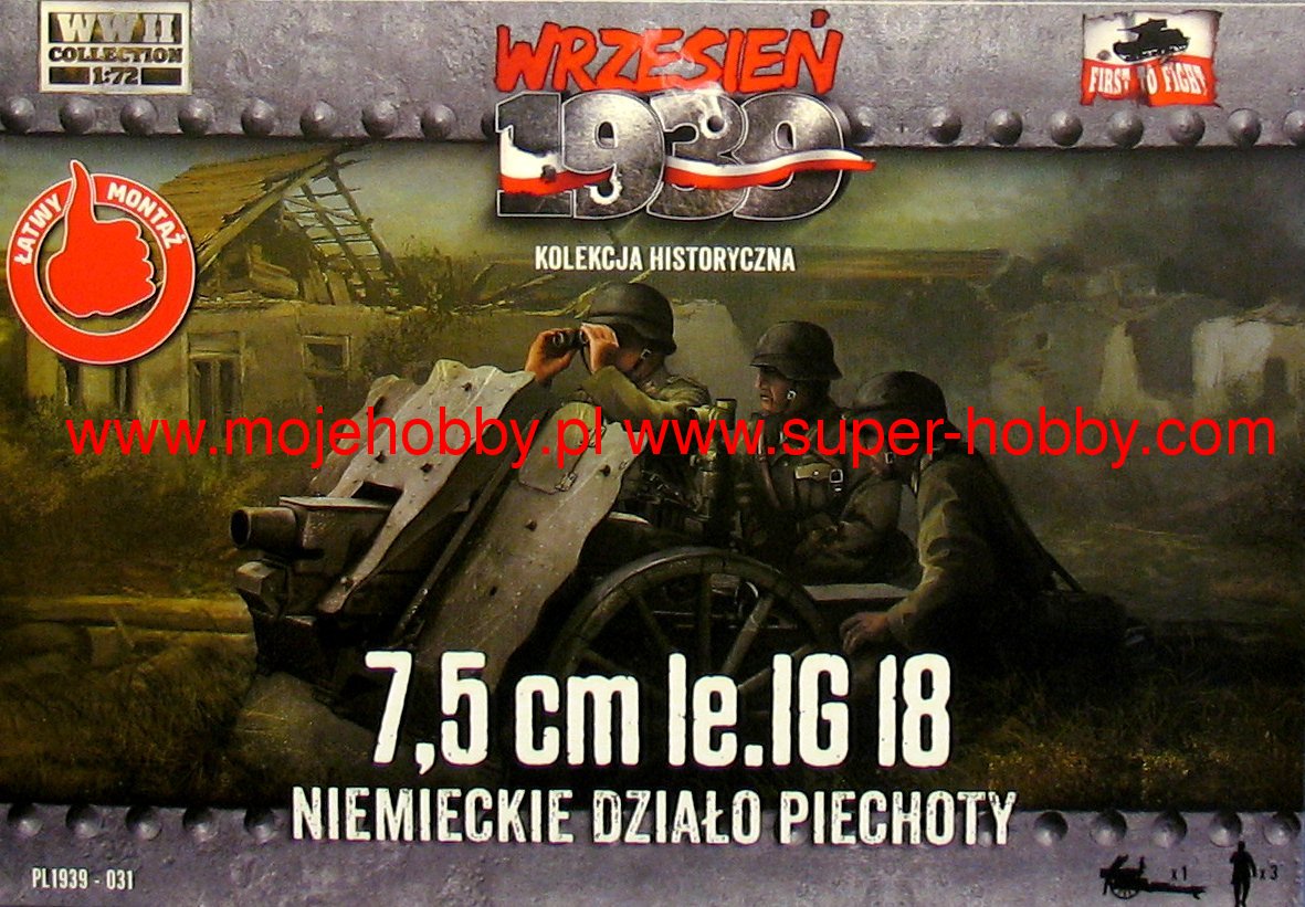 The 7.5 cm leichtes Infanteriegeschütz 18 (7.5 cm le.IG 18) is a German 75mm infantry cannon from the Second World War. The gun was designed in 1927 by the Rheinmetall concern, and in 1932 it entered mass production. The basic model of the 7.5 cm le.IG 18 gun was the basis for several specialized versions, the most widely produced of which was the gun intended for mountain shooters (7.5 cm le.GebIG 18). A characteristic feature of this version was the possibility of disassembling it into 10 parts, which facilitated transport on draft animals. About 12,000 cannons of all versions were produced. Technical data: range: 3550 m, caliber: 75 mm, combat weight: 375 kg.