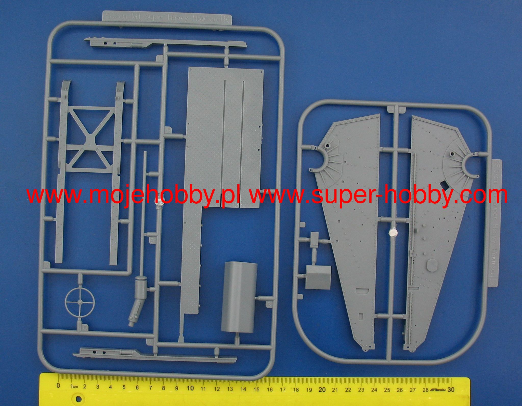 35,5 cm Haubitze M1 była superciężką niemiecką haubicą kalibru 355 mm z okresu II wojny światowej. Pierwsze prototypy tej broni powstały w 1935 r., ale produkcja wystartowała dopiero w 1939 r. i trwała do 1944 roku. W jej powstało wg. różnych źródeł od 3 do 8 sztuk tej broni. Masa broni w położeniu bojowym wynosiła 78 ton, a w położeniu marszowym aż 123 tony! Prędkość początkowa pocisku wystrzelonego z tego działa osiągała do 570 m/s, a donośność wynosiła ok. 20-21 kilometrów. 35,5 cm Haubitze M1 została opracowana i była produkowana przez koncern Rheinmetall, a przy pracach badawczo-rozwojowych nad tym działem opierano się w bardzo dużym stopniu na rozwiązaniach i podzespołach stosowanych w dziale Haubitze 39 kal. 240 mm. Broń, ze względu na masę, niewielkie zdolności manewrowe i bardzo długi czas przejścia z położenia marszowego w bojowe, była przeznaczona przede wszystkim do ostrzału bardzo silnie umocnionych pozycji nieprzyjacielskich. Bojowo została użyta w czasie oblężenia Sewastopola w latach 1941-1942. Co oprócz modelu będę potrzebować do jego sklejenia?