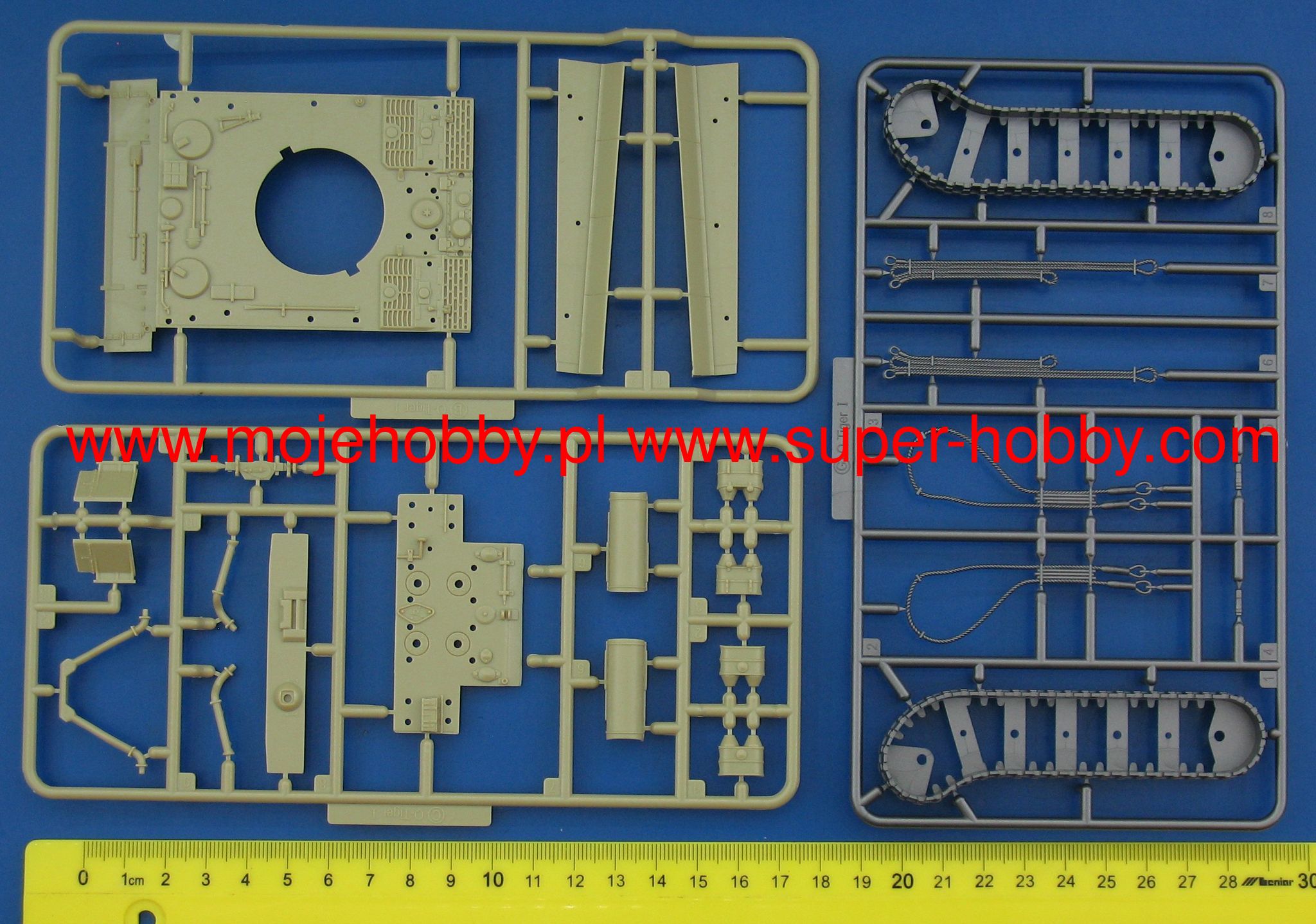 Pz.Kpfw VI (Sd.Kfz.181) Tiger to niemiecki czołg ciężki z okresu II wojny œwiatowej, będšcy jednym z najsłynniejszych pojazdów bojowych tego czasu. Dowództwo niemieckiej Panzerwaffe nosiło się z pomysłem stworzenia czołgu ciężkiego już od poczštku wojny, jednak pierwsze próby w postaci czołgu wielowiekowego Neubaufahrzeuge okazały się niepowodzeniem. W 1939 i 1940 prowadzono je nieefektywnie, jednak po starciu na froncie wschodnim z T-34 i KW-1 prace nad nowym czołgiem ciężkim przyspieszyły. 20 kwietnia 1942 roku, prototyp nowego czołgu, pod oznaczeniem VK 4501 (H), przeszedł próby poligonowe w obecnoœci Adolfa Hitlera i krótko póŸniej został skierowany do produkcji seryjnej. Pierwsze wersje produkcyjne były oznaczone jako Pz.Kpfw VI Ausf.H1 (póŸniej Ausf.E). W toku produkcji w latach 1942-1945 czołg był systematycznie modyfikowany poprzez np. dodanie filtrów przeciwpyłowych Feifell, inne umieszczenie reflektorów, modernizację sprzętu optycznego, zmiany wieżyczce dowódcy itp. Napęd zapewniał gaŸnikowy silnik 12-cylindrowy Maybach HL230 P45 o mocy 700 KM. Czołg Pz.Kpfw VI, chociaż nie posiadał tak wyprofilowanego przedniego kadłuba jak T-34 czy Pantera, był pojazdem potężnie opancerzonym (przedni pancerz do 120mm), uzbrojonym w bardzo skutecznš armatę KwK 36 L/56 kal.88mm, który zdobył sobie sławę najskuteczniejszego czołgu II wojny œwiatowej. Był pojazdem zdecydowanie lepszym od alianckich M4 czy Churchill’a oraz sowieckiego T-34/76. Mógł także swobodnie podjšć walkę z IS-2 czy M-26, przewyższajšc je skutecznoœciš głównego uzbrojenia. Z drugiej strony Pz.Kpfw VI posiadał wady-przede wszystkim był niesamowicie czasochłonny w produkcji oraz posiadał bardzo skomplikowane zawieszenie. W póŸniejszym okresie wojny także jakoœć pancerza Tygrysa się pogorszyła co wynikało z braku dostępu niemieckiej gospodarki do złóż molibdenu. Pomimo tych wad, Tygrys na polach bitew okazał się broniš nad wyraz skutecznš. Z powodzeniem walczył w Tunezji, na Łuku kurskim, w Normandii i na froncie wschodnim. Dane techniczne: długoœć (z lufš): 8,45m, szerokoœć: 3,7m, wysokoœć: 2,93m, moc silnika: 700KM, masa: 56,9 t, zasięg (po drodze): 100km, prędkoœć maksymalna (po drodze): 38km/h, uzbrojenie: 1 armata KwK 36 L/56 kal. 88 mm, 3 karabiny maszynowe MG 34 kal. 7,92 mm. Co oprócz modelu będę potrzebować do jego sklejenia?