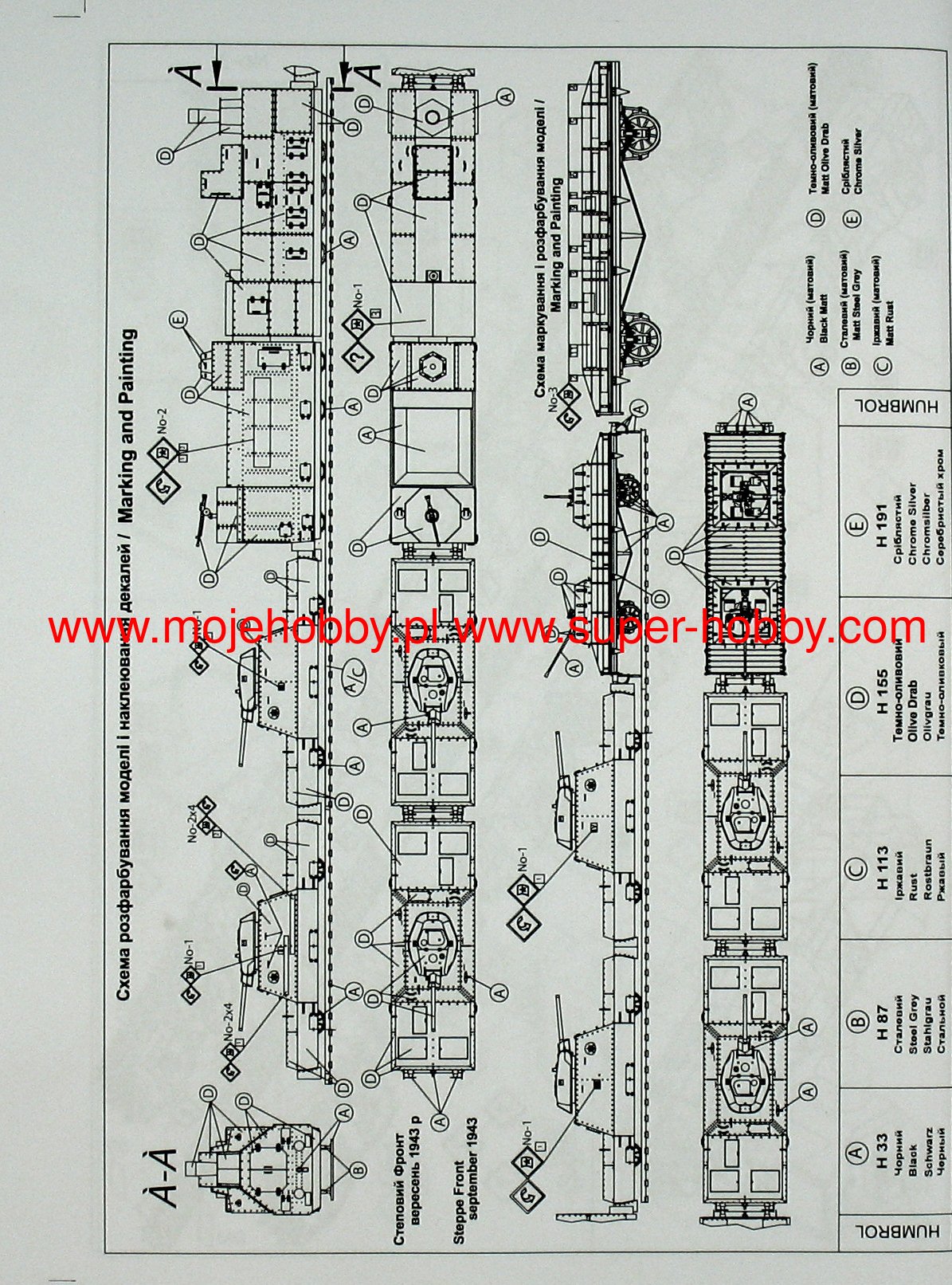 The BP-43 is a Soviet WWII armored train that entered service in 1943. It is assumed that a total of 21 such trains were produced. Its length was 19 meters, and the maximum speed did not exceed 45 km / h. The armor ranged from 50 to 60 mm, and the armament included 6 76.2 mm guns in the T-34 turrets and 12.7 mm DsZK machine guns. The armored train BP-43 was developed on the basis of the experience related to the high losses of OB-3 trains suffered at the beginning of the German-Soviet war. These experiences led to the fact that in the new train the emphasis was primarily on very strong artillery weapons and the greatest possible ability to repel enemy air attacks. It was also decided to use the PR-43 locomotive. Most of these assumptions were successfully implemented, as a result of which the BP-43 turned out to be an effective armored train that served until the end of World War II.