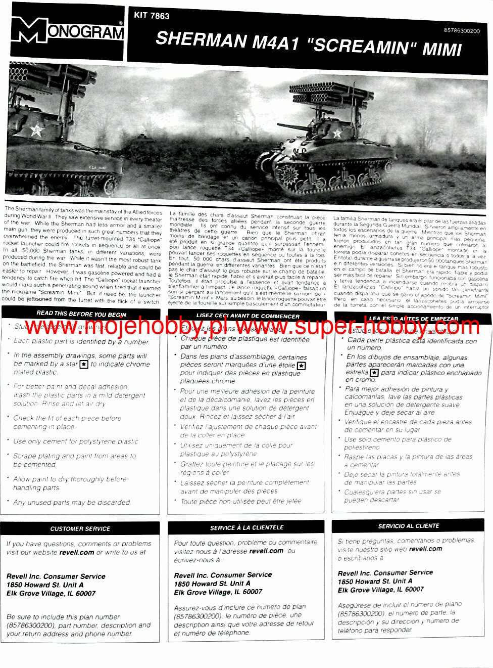 The M4 Sherman was an American medium tank from the Second World War. The first prototypes were built in 1941, and serial production was carried out in the period 1942-1945. In total, about 49,000 copies of this tank of all versions were created, which makes it one of the most produced tanks of the Second World War and the most important tank in the equipment of the Allied armies during this conflict. The M4 Sherman was powered by a single engine version of the M4A1 Continental R 975 C4 with a power of 400 hp . The vehicle was armed with - depending on the version - a single 75mm M3 cannon or a 76mm M1 cannon or a 105mm M4 howitzer and two 7.62mm Browning1919A machine guns. The M4 Sherman was developed as the successor to the M2 and M3 tanks, although it used many of the latter's components. First of all, it only used a slightly changed chassis of the M3 Lee car. When designing the M4 Sherman, the emphasis was primarily on playing the role of an infantry support vehicle, and not fighting enemy tanks - this was the role of American tank destroyers. Only possible clashes with the carts were assumed Pz.Kpfw III and Pz.Kpfw IV. A significant role was also played in the mass production of the new tank and the lowest possible production costs. The result was a tank with good armament for 1942 and early 1943, average armor, but with a tilted front plate, but also with poor maneuverability and - especially in the first versions - very susceptible to fire as a result of hitting the engine compartment . At the same time, however, a tank was created that could be truly large-scale production and had a significant modernization potential. Many development versions were created in the course of serial production M4 Sherman. Chronologically the first was the M4A1 version that already had a cast armor. Another - M4A2 - had welded armor and a new General Motors 6460 engine with 375-410hp, but much less prone to fire. A version of the M4A3 also appeared, armed with a 105 mm howitzer and powered by a Ford GAA engine with a capacity of 450 HP. Based on the M4A3 version, two sub-versions were created: the M4A3E2 Jumbo with reinforced armor and the M4A3E8 with the HVSS and 76mm gun. An interesting development version was also the T34 Calliope with mounted missiles not guided on the turret. The M4 Sherman was also supplied in huge numbers to the British and Red Army. The former developed a version of the Firefly based on it, with a great 17-pounder anti-tank gun. During World War II, M4 Sherman tanks fought in North Africa (1942-1943), Italy (1943-1945), during the battles in Normandy, France and West Germany (1944-1945), but also in the Pacific or in the ranks The Red Army on the Eastern Front. After World War II, the M4 Sherman was used in many countries, including Argentina, Belgium, India, Israel, Japan, Pakistan and Turkey. He also took part in many post-1945 conflicts, including the Indo-Pakistani War of 1965 and the Six-Day War of 1967.