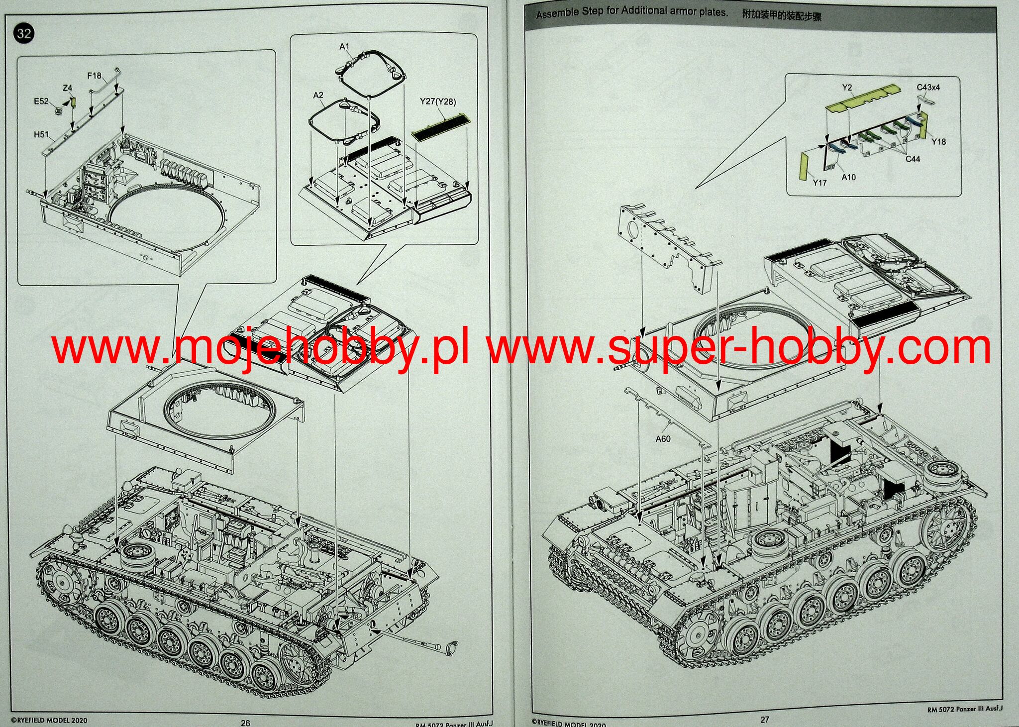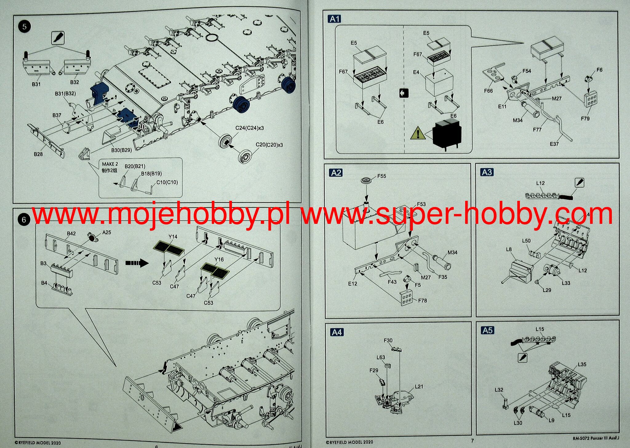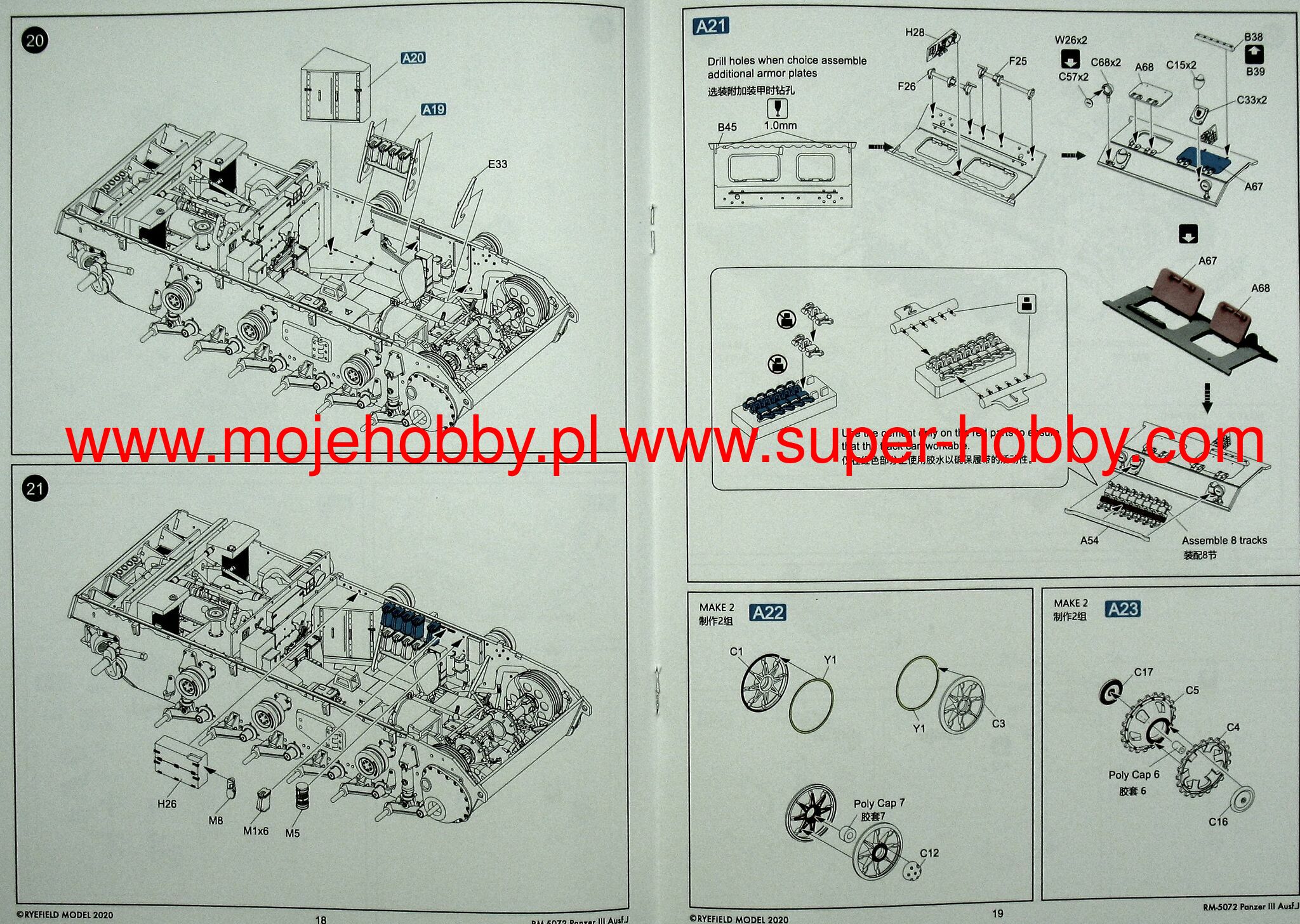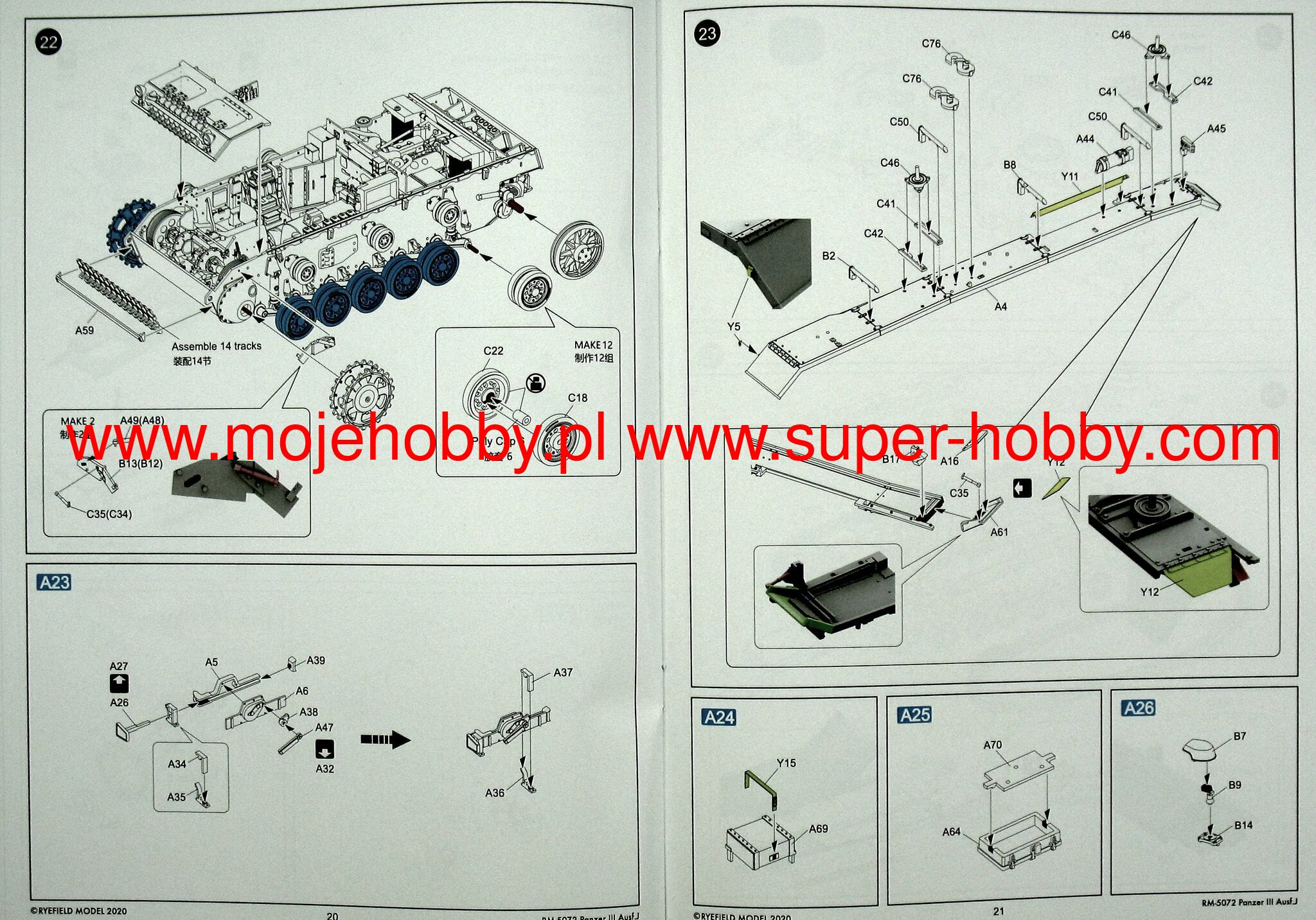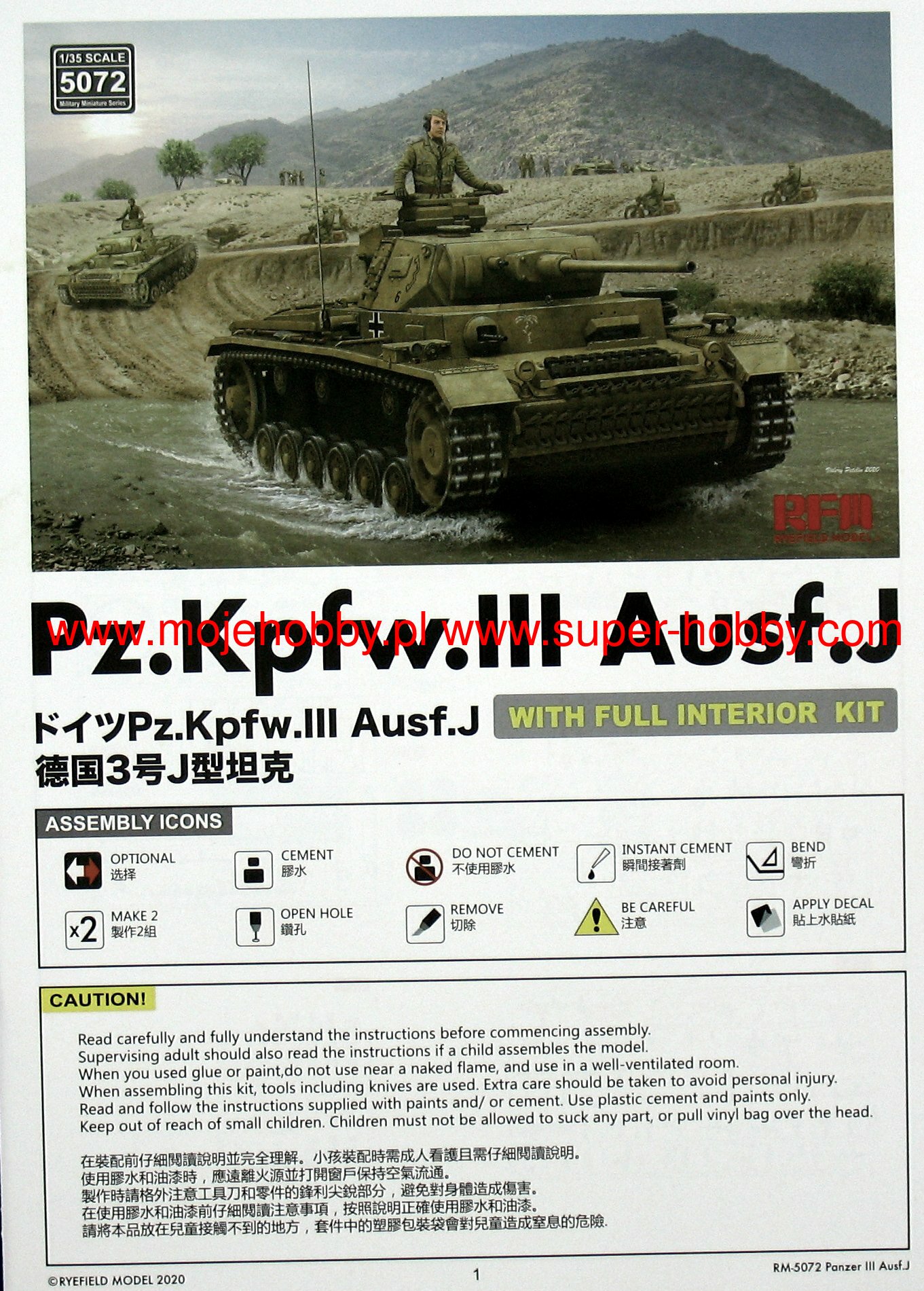 The PzKpfw III (Panzerkampfwagen III) was a German medium tank from the Second World War. The first prototypes of the vehicle were made in 1936, and serial production continued in the period 1937-1943, ending with the production of about 5,800 vehicles. The tank in the E version was powered by a single Maybach HL 120 TRM engine with a capacity of 300 HP. It was armed with one 37mm KwK 35/36 cannon and two 7.92mm MG 34 machine guns. placed in the tower. PzKpfw III was the "workhorse" of the German armored forces during World War II and one of the most intensively developed and modernized Wehrmacht tanks. Its serial production started in 1936, and many variants of this tank were created in its course. Chronologically, the first version was the A version, armed with a 37mm gun and a 230hp engine. However, already in December 1938, the E version was created, which was the first version produced in large series. It had a new, significantly more powerful engine, a completely new suspension and stronger armor in the front part of the turret and hull. Later (from December 1940) it was also armed with a more powerful 50mm cannon. In March 1940, the G version began to be produced, in which the rear hull and turret armor was reinforced. Soon after, in October 1940, the production of the H version started, which from the very beginning was armed with the 50mm KwK 38 L / 42 gun and had reinforced frontal armor. One of the most produced was the J version, which had armor up to 50 mm thick (later reinforced with aplique plates), and after the experience gained from the clashes with the T-34 and KW-1 vehicles - it was intensively rearmed for the KwK 39 L / 60 cannon. cal. 50 mm. The last development version was the N version, which was to be a support tank for armored grenadiers and was armed with a 75mm KwK 37 L / 24 short-barreled cannon. Numerous other vehicles were built on the chassis of the PzKpfw III, such as the StuG III assault gun. PzKpfw III tanks were used on almost all fronts of World War II - from the September campaign in 1939, through the campaign in France in 1940, operations Barbarossa and Typhoon in 1941, the Battle of Kursk in 1943, to the last operations of the German army against The USSR and the Western Allies in 1944-1945.