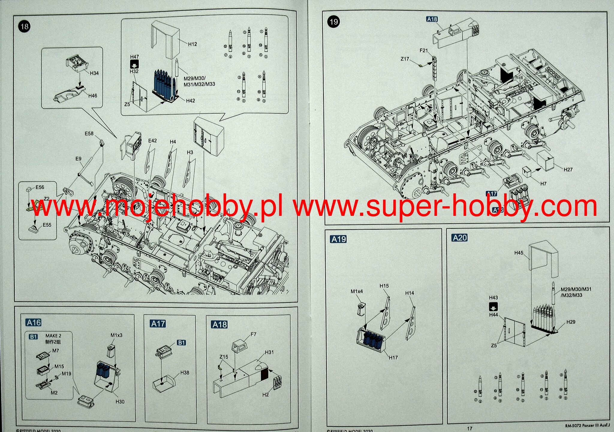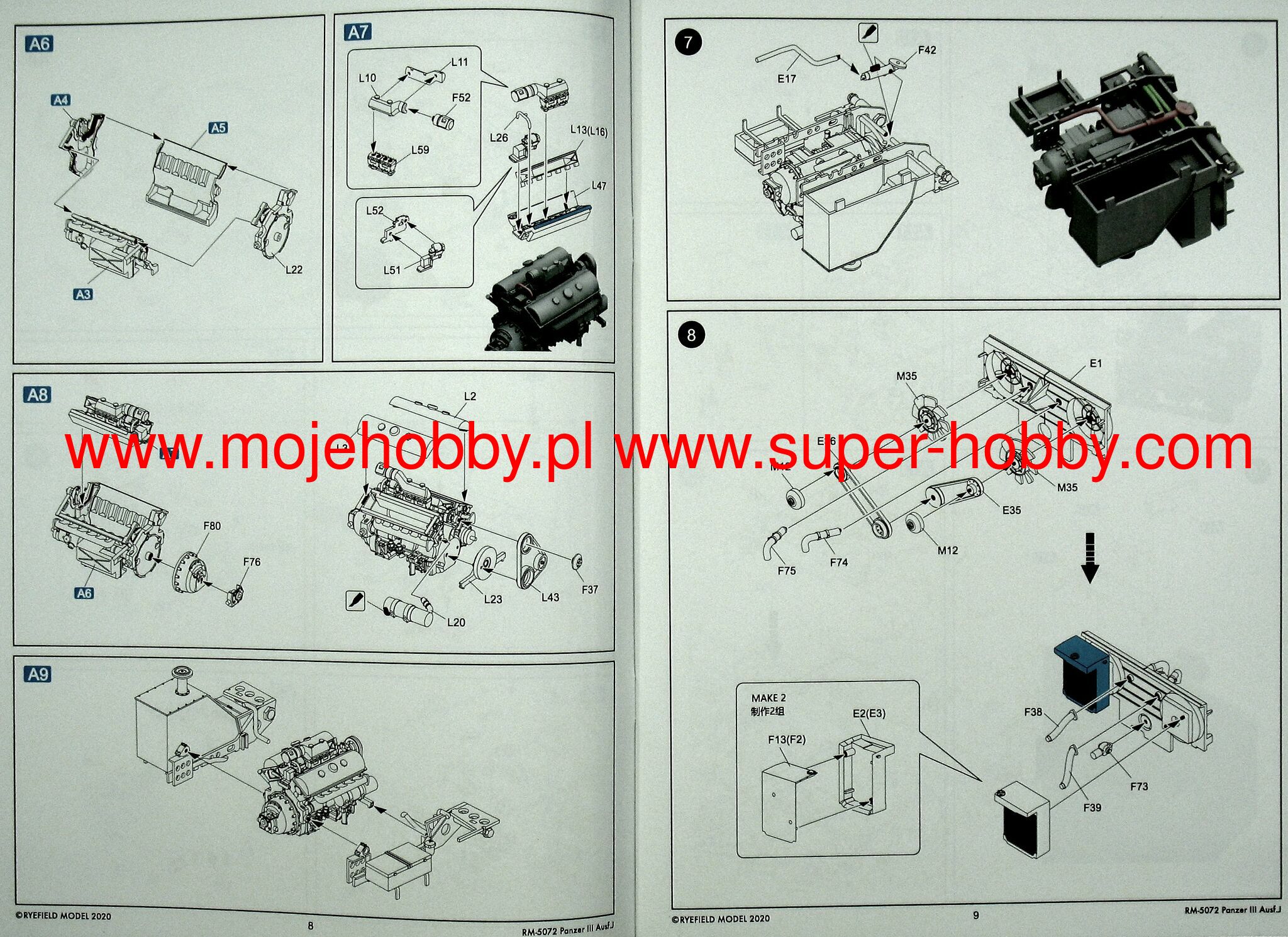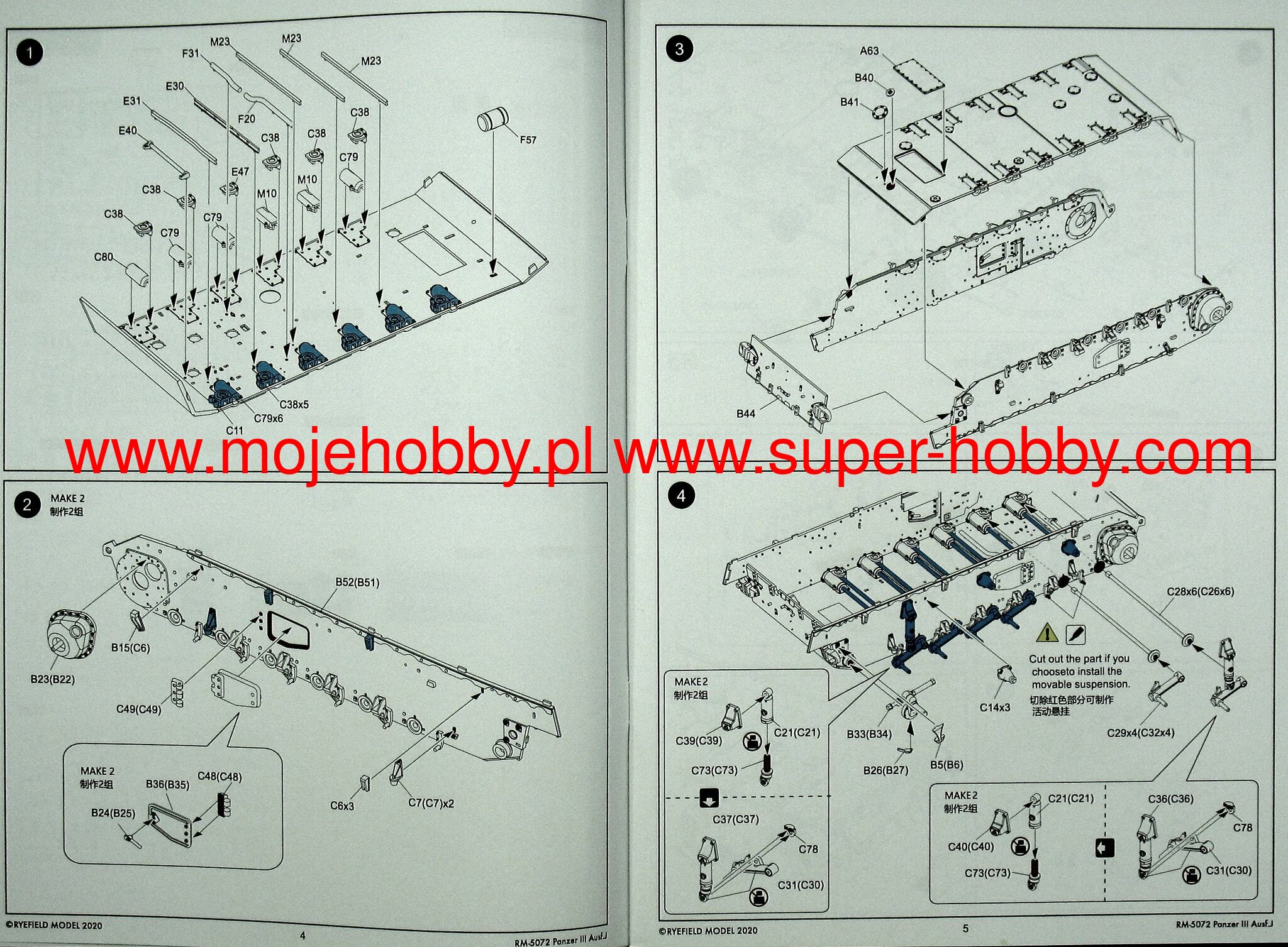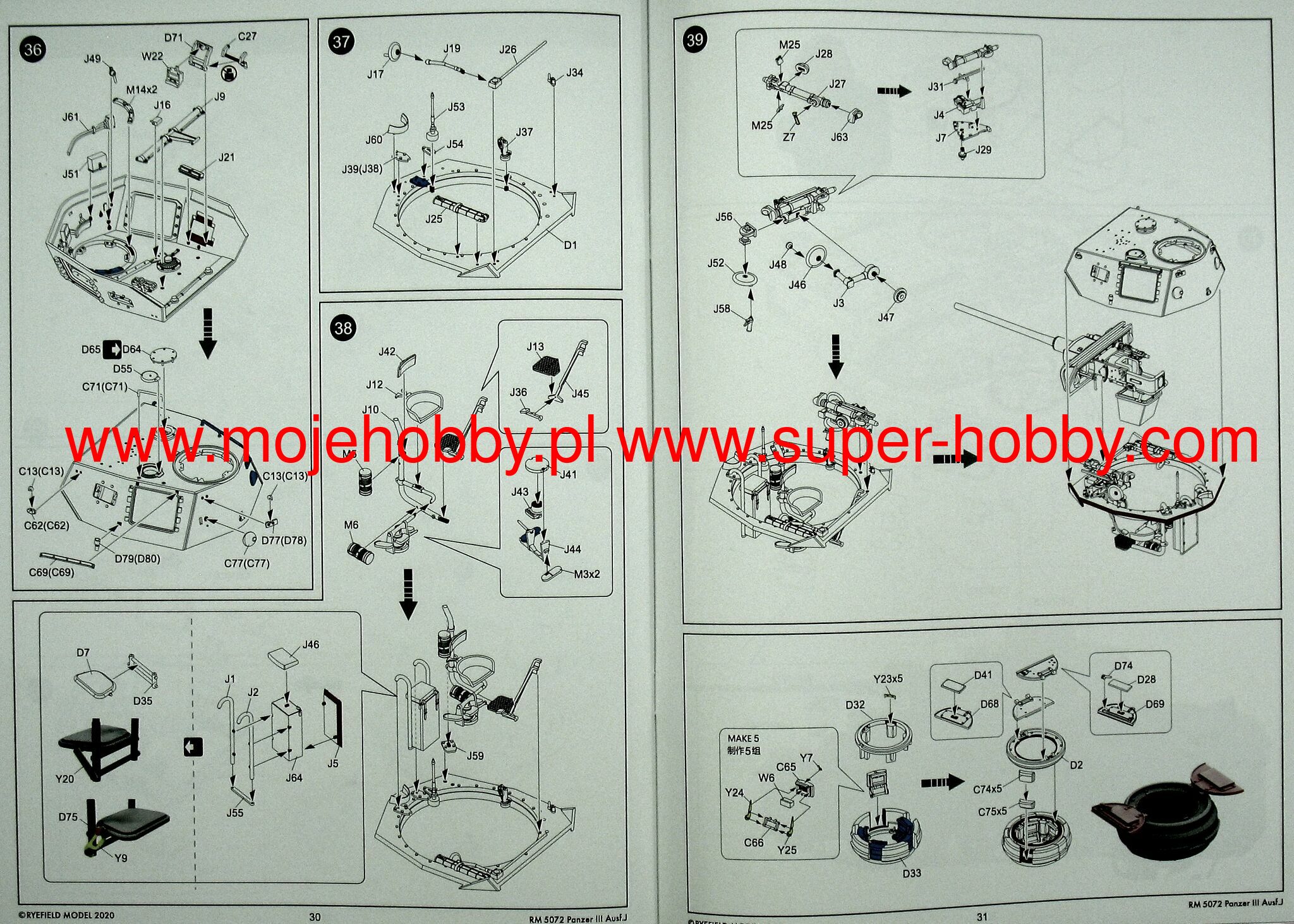 The PzKpfw III (Panzerkampfwagen III) was a German medium tank from the Second World War. The first prototypes of the vehicle were made in 1936, and serial production continued in the period 1937-1943, ending with the production of about 5,800 vehicles. The tank in the E version was powered by a single Maybach HL 120 TRM engine with a capacity of 300 HP. It was armed with one 37mm KwK 35/36 cannon and two 7.92mm MG 34 machine guns. placed in the tower. PzKpfw III was the "workhorse" of the German armored forces during World War II and one of the most intensively developed and modernized Wehrmacht tanks. Its serial production started in 1936, and many variants of this tank were created in its course. Chronologically, the first version was the A version, armed with a 37mm gun and a 230hp engine. However, already in December 1938, the E version was created, which was the first version produced in large series. It had a new, significantly more powerful engine, a completely new suspension and stronger armor in the front part of the turret and hull. Later (from December 1940) it was also armed with a more powerful 50mm cannon. In March 1940, the G version began to be produced, in which the rear hull and turret armor was reinforced. Soon after, in October 1940, the production of the H version started, which from the very beginning was armed with the 50mm KwK 38 L / 42 gun and had reinforced frontal armor. One of the most produced was the J version, which had armor up to 50 mm thick (later reinforced with aplique plates), and after the experience gained from the clashes with the T-34 and KW-1 vehicles - it was intensively rearmed for the KwK 39 L / 60 cannon. cal. 50 mm. The last development version was the N version, which was to be a support tank for armored grenadiers and was armed with a 75mm KwK 37 L / 24 short-barreled cannon. Numerous other vehicles were built on the chassis of the PzKpfw III, such as the StuG III assault gun. PzKpfw III tanks were used on almost all fronts of World War II - from the September campaign in 1939, through the campaign in France in 1940, operations Barbarossa and Typhoon in 1941, the Battle of Kursk in 1943, to the last operations of the German army against The USSR and the Western Allies in 1944-1945.