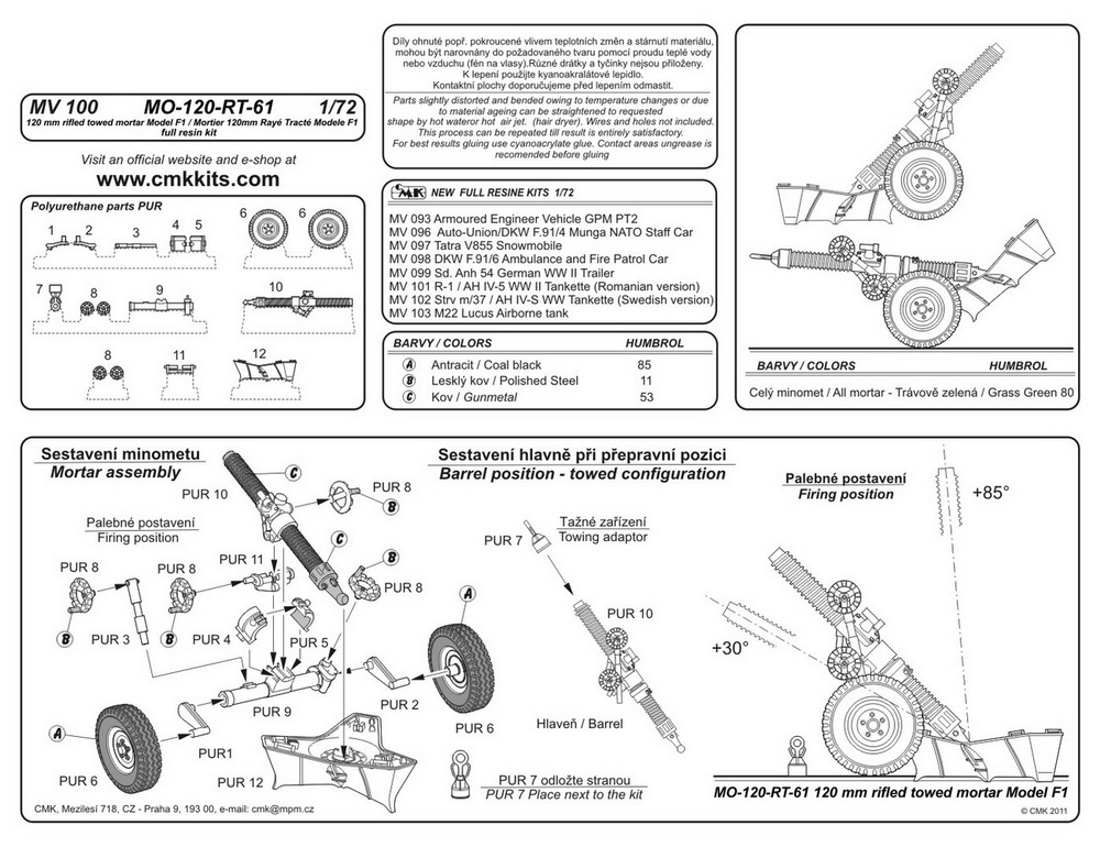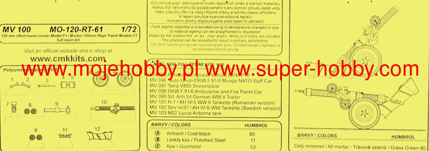 M MO-120-RT-61 -120 MM RIFLED TOWED MORTAR MODEL F1 / MORTIER 120MM RAYÉ TRACTÉ MODELE F1 cmk 1/72