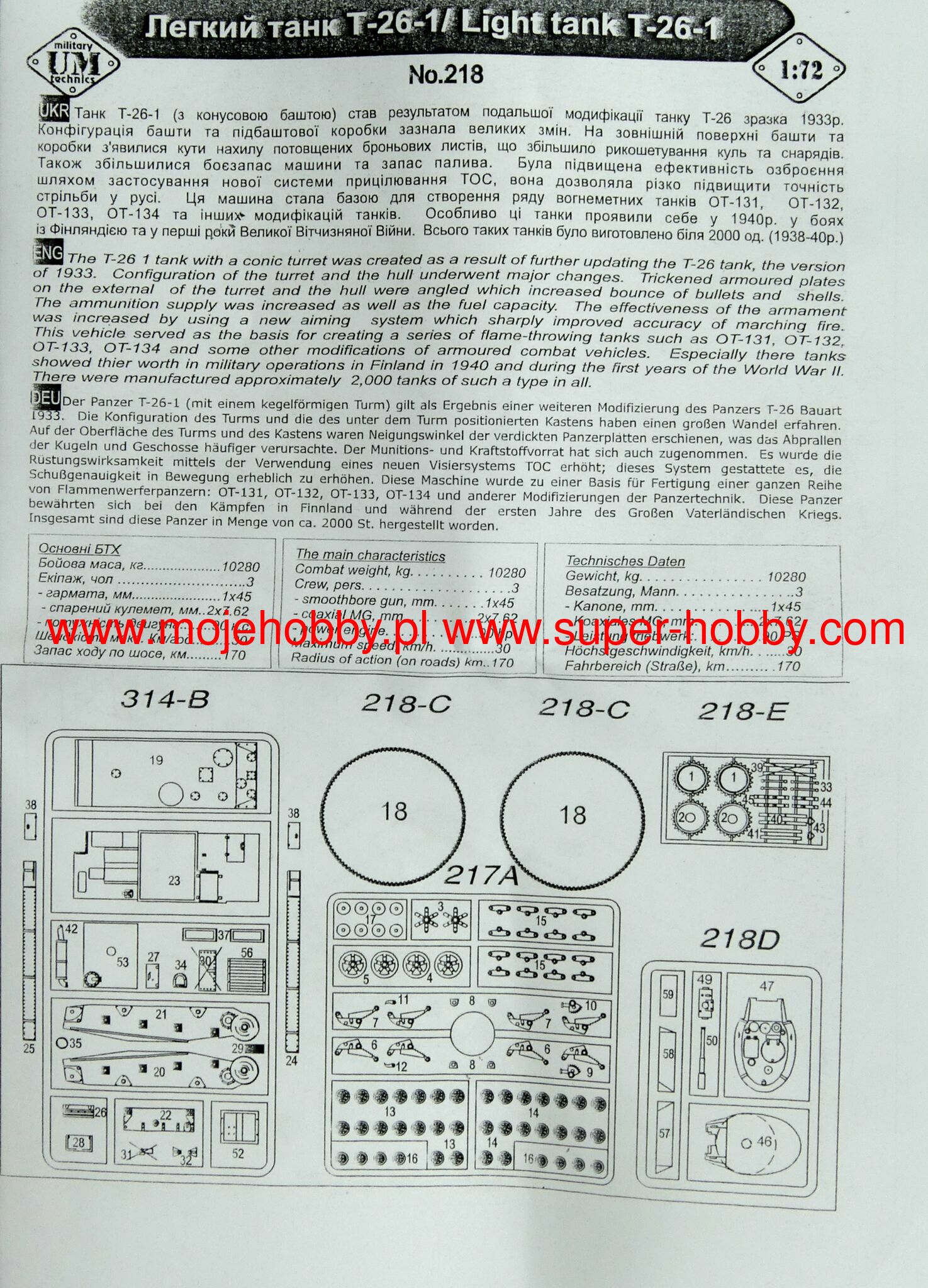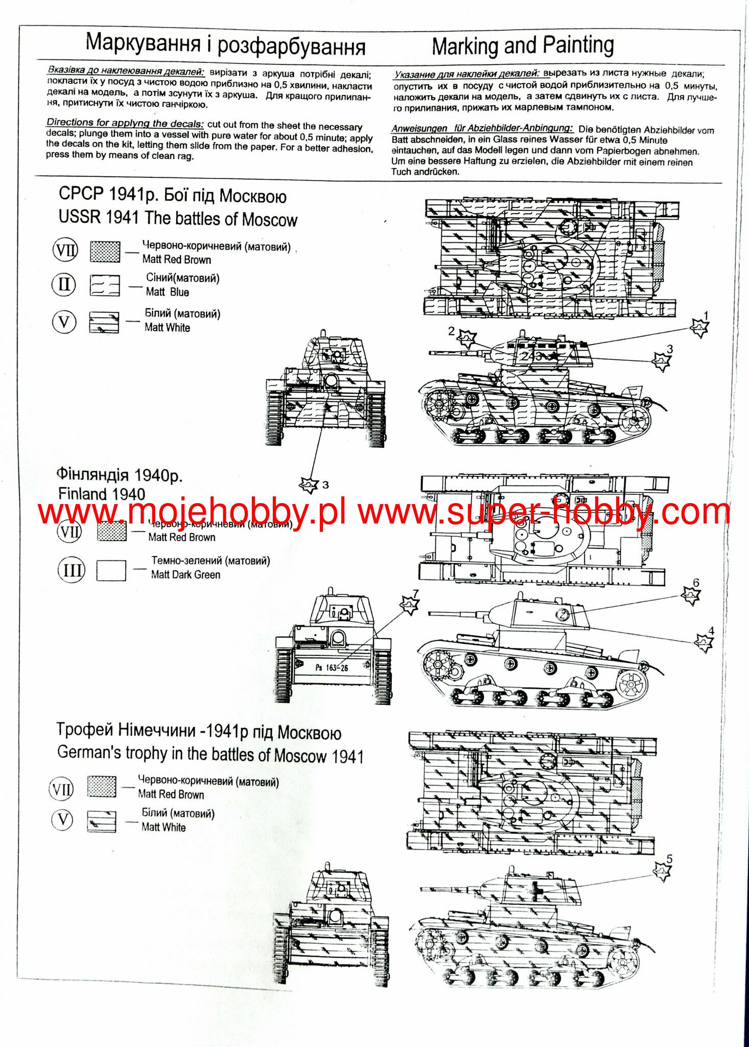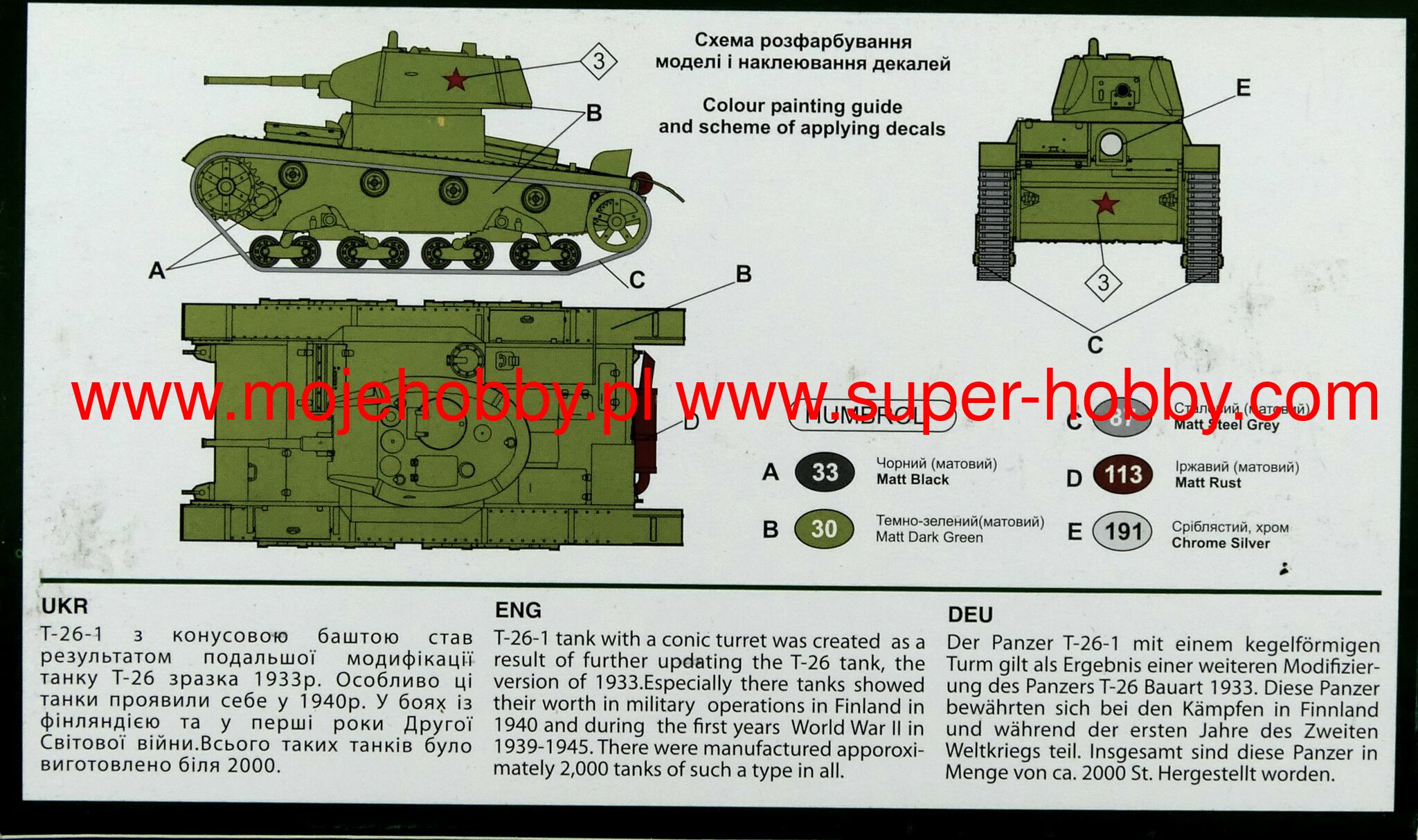 The T-26 is a Soviet light tank from the interwar period and World War II. The first prototypes of this vehicle were made in 1931, and the car entered service in 1931-1932. Approximately 12,000 vehicles of this type were produced in the course of production, along with derivative versions and specialized vehicles! The combat weight of the T-26 tank in the basic version was up to 8.2 tons. The drive was provided by a single, 12-cylinder GAZ carburetor engine with a power of 90-91 HP. The basic armament consisted of a single 45 mm wz.1932 or wz.1934 gun and 1 to 3 DT 7.62 mm machine guns. In fact, the T-26 was a far-reaching development of the British Vickers 6-Ton. The vehicle was also the basic Soviet infantry support vehicle in the 1930s and at the beginning of World War II. It is also worth remembering that the first prototypes of the car and the first production batches had two turrets (T-26 models 1931 and 1932), only from 1933 the tank was manufactured in a single turret variant with a 45 mm gun as the main armament. In the course of production, several variants of the T-26 and specialized versions were created, including: the T-26 model 1938 (version with a new turret, with sloped walls), ChT-130 and ChT-133 (specialized vehicles with flamethrowers) and a wagon ST-26 (bridge tank). The T-26 vehicles took part in numerous conflicts in the 1930s, including the border incidents in Manchuria in 1934-1945 and the civil war in Spain (1936-1939). Tanks of this type were also used on a considerable scale during the aggression against Poland in September 1939, during the Winter War (1939-1940), as well as during the war with Japan in 1939-1940. They were also used on a large scale in the initial phase of the German-Soviet war in 1941. It is worth noting that there are opinions that the latest versions of the T-26 (for example, the 1938 or 1939 model) were not significantly inferior to the German tanks during the Barbarossa or Typhoon operations.