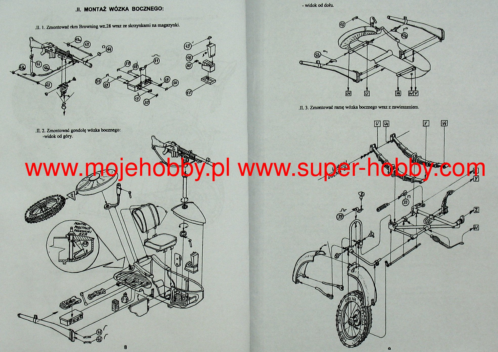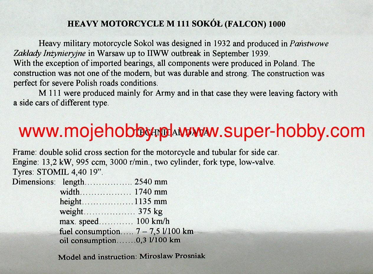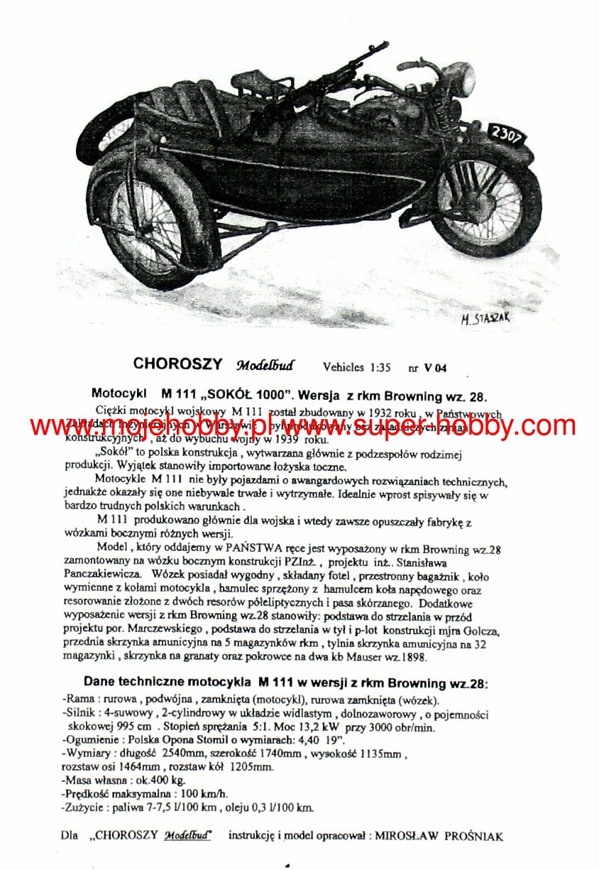 HEAVY MOTORCYCLE M111 SOKÓŁ(FALCON)1000 WITH SIDE CAR AND BROWNING WZ. 28 choroszy modelbud 1/35