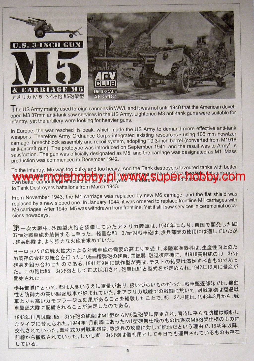 U.S. ARMY 3 INCH GUN M5 ON CARRIAGE M6 afv-club 1/35