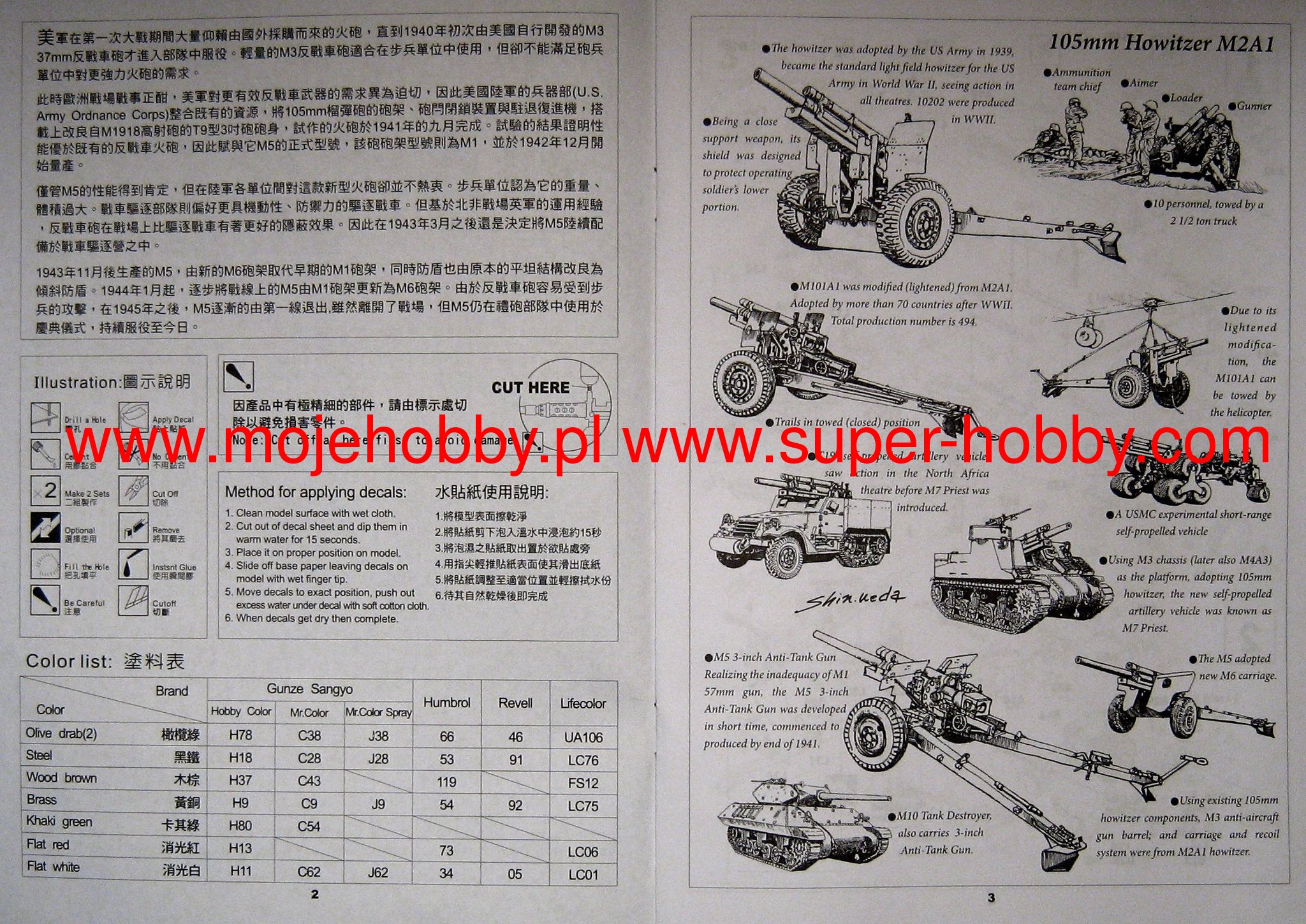 The M5 is an American 76.2 mm (3 inch) anti-tank gun from the Second World War. This weapon was produced in the years 1942-1944 and a total of about 2,500 copies were made. The length of the cannon with the barrel was 7.1 m, with a weight of 2,210 kg. The rate of fire - with well-trained staff - was up to 12 rounds / minute. The maximum range was 14.7 kilometers. The M5 cannon was designed to replace the 37mm M3 cannon, which quickly turned out to be a weapon inconsistent with the realities of the battlefield at that time. When choosing the caliber for the new anti-tank gun, it was decided to use the caliber of 76.2 mm. At the same time, in order to shorten the work on the new weapon as much as possible, it was decided to use a lot of elements from other guns - the T9 anti-aircraft gun and the 105 mm M2 howitzer. The M5 cannons were used by tank destroyer battalions during the campaign in Italy (1943-1945) and during the fighting in North-Western Europe (1944-1945). It is worth noting that the relatively large losses suffered by troops equipped with M5 cannons during the operation in the Ardennes (December 1944-January 1945) meant that this weapon was systematically withdrawn from the line from the beginning of 1945 in favor of mobile tank destroyers, e.g. M -10 or M-18.