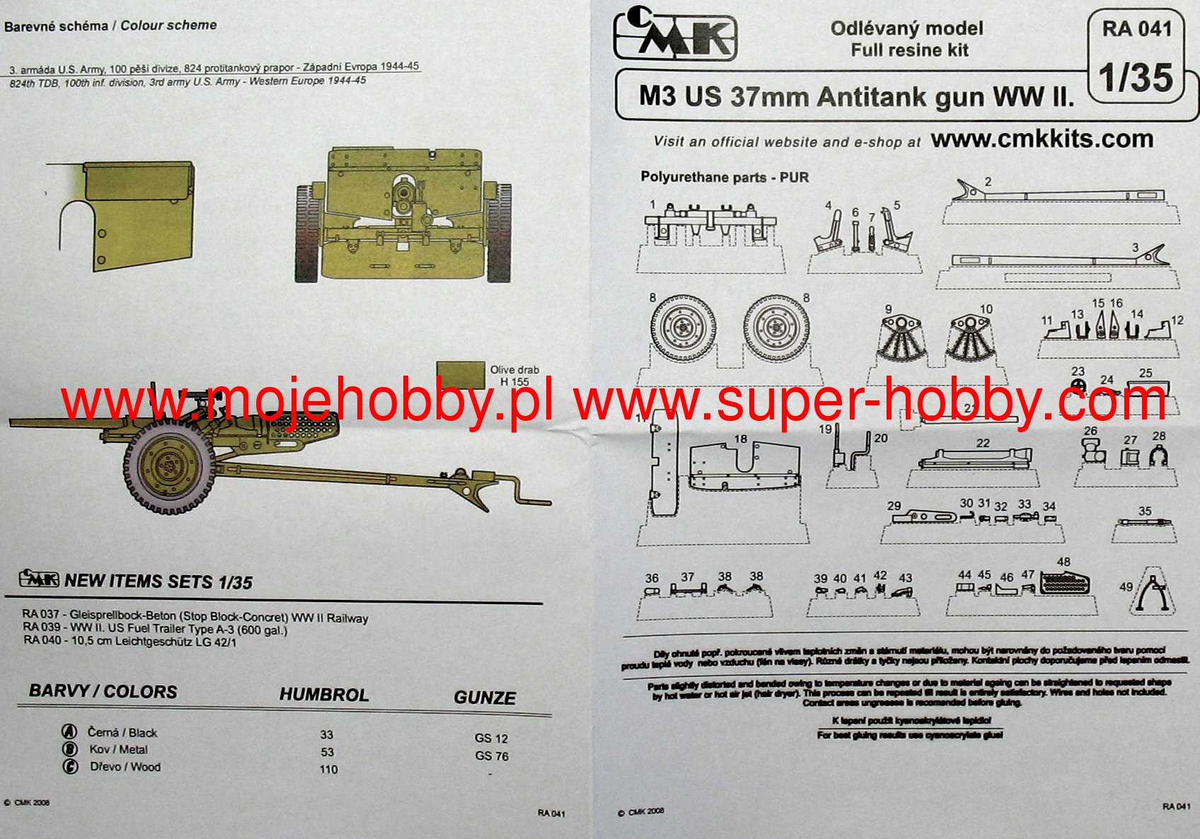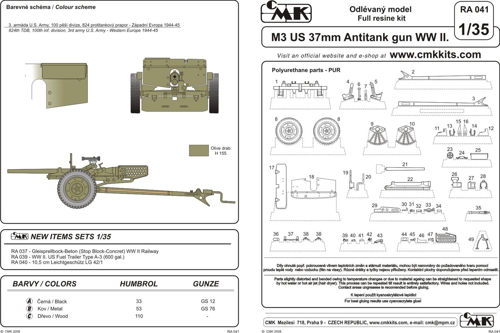 The M3 was an American 37mm anti-tank gun from the Second World War. Its first prototypes were made in 1938, and serial production was carried out in the period 1940-1943. In total, about 18,500 copies of this weapon were produced. The initial velocity of the anti-tank missile oscillated around 850 m / s, and the rate of fire was up to 25 rounds per minute, with a maximum range of 6900 meters. Until 1937, the US Army's anti-tank units operated mainly with heavy machine guns, the usefulness of which in combat - due to the intensive development of armored weapons at that time - was more and more questionable. This state of affairs led to the commencement of work on the first anti-tank gun in the history of the US armed forces, built from scratch, although in a way modeled on the German PaK 36 cannon. Finally, after a period of trials and modernization, in 1940, the 37 mm M3 cannon was put into production . The new gun was characterized by good ballistic properties and low weight, which allowed it to be towed by a Willys Jeep. The M3 cannon was also small in size, which made it easy to conceal in the field. Moreover, by the turn of 1942/1943, it was able to provide decent anti-tank cover for American troops. Later, however, it began to be withdrawn from units fighting in North Africa and Europe in favor of the British 6-pounder cannon. However, it continued to serve in the Pacific region, actually until 1945. After modernization, it was also installed in such vehicles as the M3 Lee and M5 Stuart tanks and the M8 Greyhound armored car. Significant amounts of these weapons found their way to China under the Lend-and-Lease Act program.
