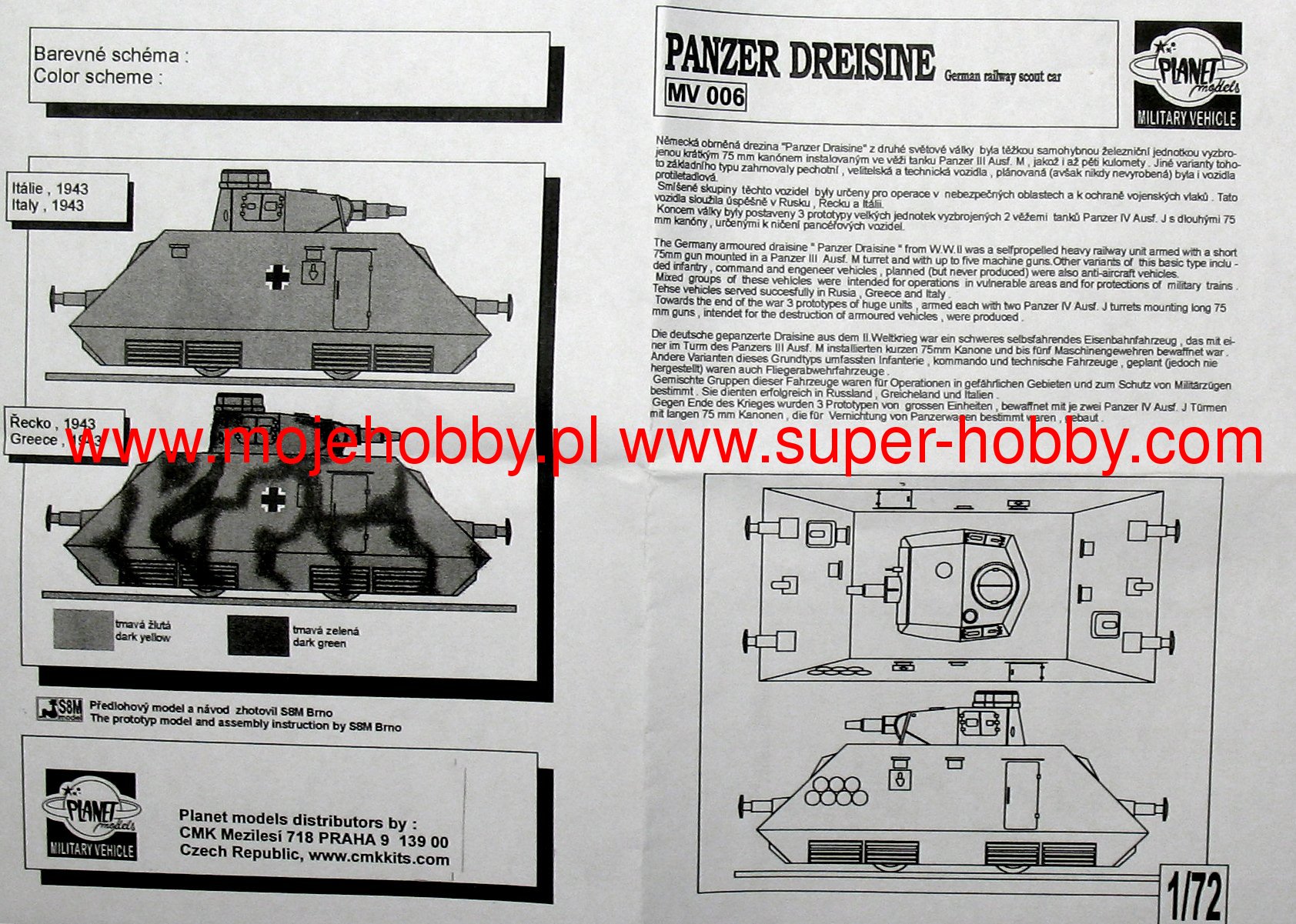 Schinen-Sparwagen (abbreviated: S.sp) is a German, self-propelled armored draisine from the Second World War. The draisine was developed in 1944 and its serial production began in the same year. Depending on the version, the armament could be configured differently, but most often it consisted of heavy and light machine guns and mortars. The maximum speed was up to 40 km / h. The Schinen-Sparwagen draisine was designed for independent reconnaissance operations, transporting infantry, but could also be part of armored trains composed mainly of this type of draisine. The draisine was covered with armor up to 20 mm thick, and its weight reached 18 tons. It is worth adding that the combat capabilities of the Schinen-Sparwagen were similar to the BP-42 draisine. The S.sp draisines took part mainly in the battles in the Balkans from November 1944.