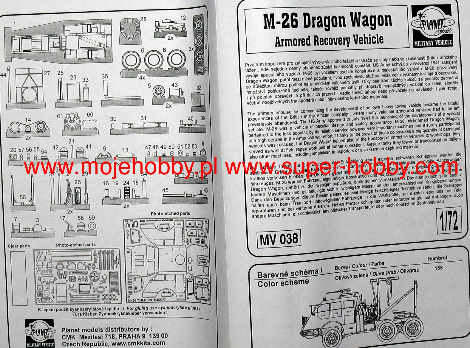 M26 Dragon Wagon to amerykański, wojskowy, opancerzony ciężki samochód ciężarowy z okresu II wojny światowej. Pierwsze wozy tego typu weszły do służby w 1941/1942 r. i pozostawały w niej do lat 50. XX wieku. Pojazd był napędzany pojedynczym silnikiem Hall-Scott 440 o mocy 240 KM. Prędkość maksymalna dochodziła do 45 km/h. Uzbrojenie wozu składało się z pojedynczego karabinu maszynowego kal. 12,7 mm. M26 Dragon Wagon został opracowany na potrzeby US Army, która wraz z rozwojem własnego komponentu pancernego, zdała sobie sprawę, że potrzebuje nowych ciężarówek do transportu uszkodzonych czołgów lub ich szybszego przewozu drogowego. Co więcej, nowy ciągnik siodłowy miał mieć również lekko opancerzoną kabinę kierowcy. Nowy wóz miał uzupełnić w linii wozy M19, które weszły do służby w 1940 roku. M26, w porównaniu z M19 miał wyraźnie mocniejszy silnik, opancerzoną kabinę kierowcy, był też w stanie przenosić znacznie cięższe ładunki. Pojazdy M26 Dragon Wagon były używane przede wszystkim w Europie północno-zachodniej w latach 1944-1945. Zostały zastąpione w linii przez wozy M123, począwszy od 1955 roku. Co oprócz modelu będę potrzebować do jego sklejenia?