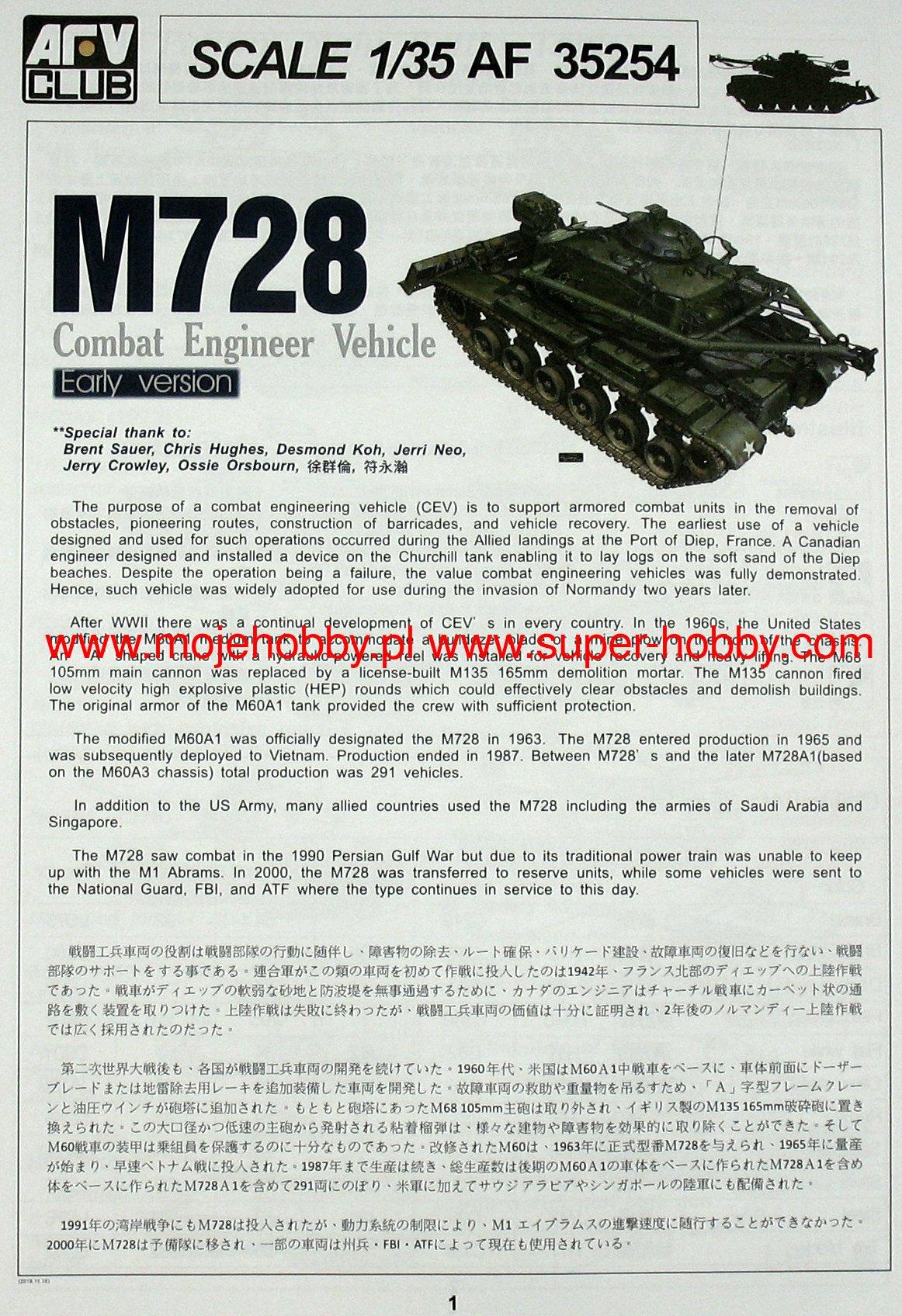 The M728 Combat Engineer Vehicle is an American tracked combat engineer and engineering vehicle. The first prototypes of the car were created in 1963, and its serial production started in 1965 and lasted with breaks until 1987. In total, about 315 vehicles of this type were built. The drive is provided by a single motor Continental AVDS-1790 with a power of 750 hp. The total length of the cart is 8.83 meters with a width of 3.66 meters. The armament - in the basic version of the vehicle - consists of a 165 mm M135 short-barreled cannon and two 7.62 and 12.7 mm machine guns. The M728 Combat Engineer Vehicle was initially tested on the chassis of the M26 Pershing, but the M60A1 chassis was used relatively quickly in trials with the new vehicle, which proved successful enough to be put into series production. From the very beginning, the M728 was designed as a possibly well-armored engineer and engineering vehicle, capable of operating under enemy fire. Very often, the M728 vehicles were equipped with D7 minesweepers or the M9 bulldozer arm. Vehicles of this type were used in the Vietnam War (starting in 1968) and during the First Gulf War (1990-1991). The users of these vehicles, outside the USA, are also, for example, Saudi Arabia, Oman and Spain.