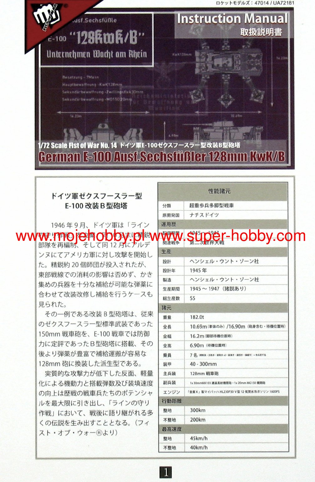 UA72181 FIST OF WAR GERMAN E-100 AUSF.SECHSFÜSSLER 128MM KWK/B "UNTERNEHMEN WACHT AM RHEIN" JANUAR 1947 model collect 1/72