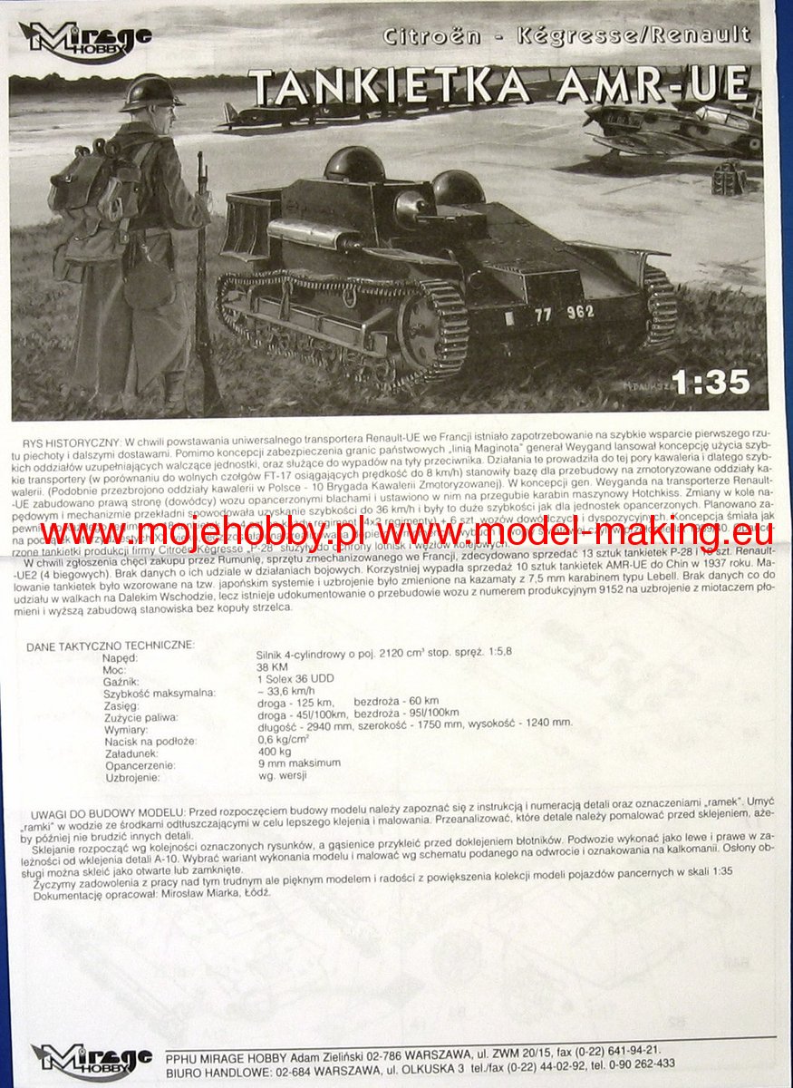 Купить MIRAGE HOBBY ТАНКЕТКА AMR -UE СИТРОЕН -КЕГРЕССЕ/РЕНО 1/35 (1/35)