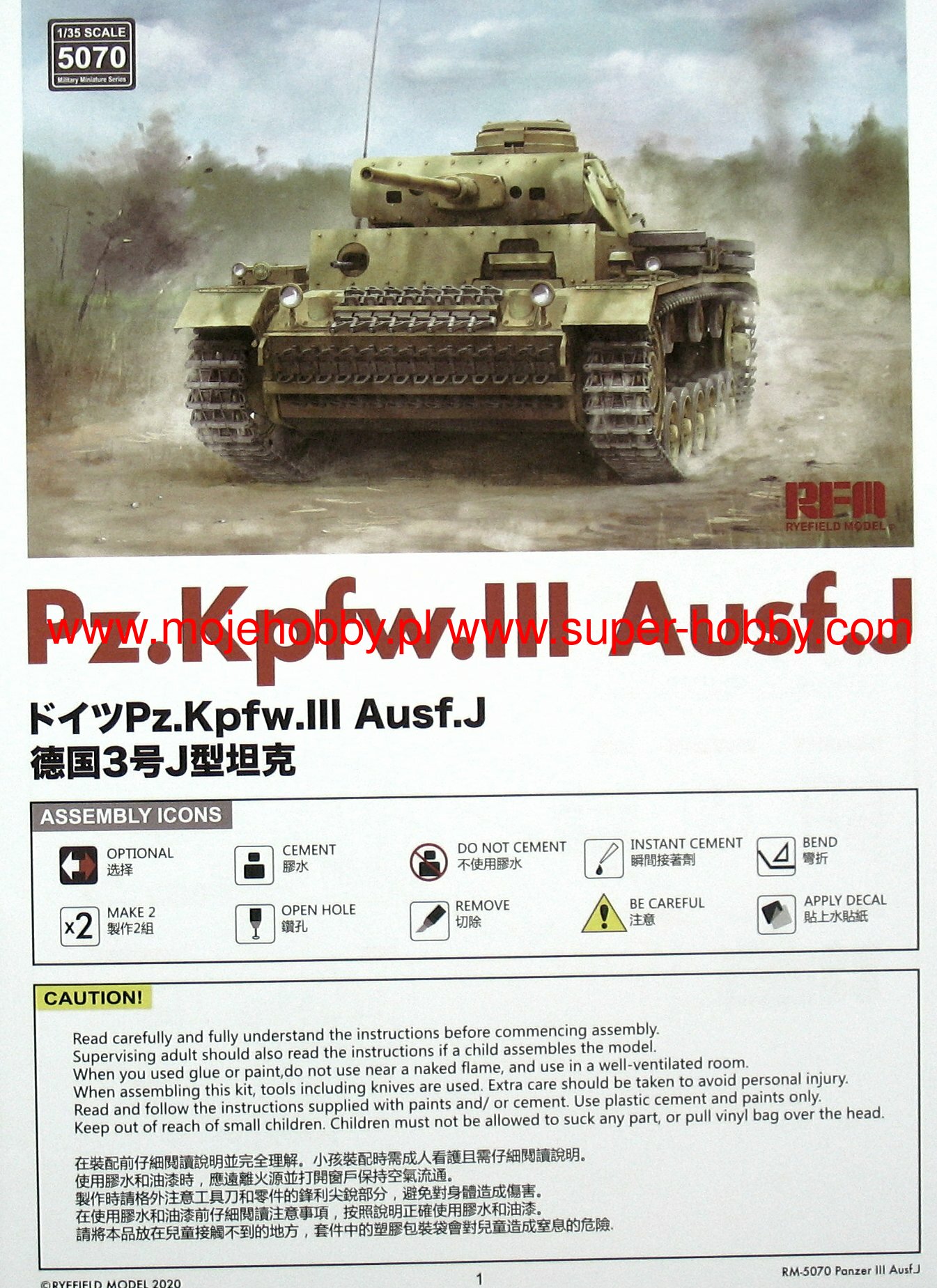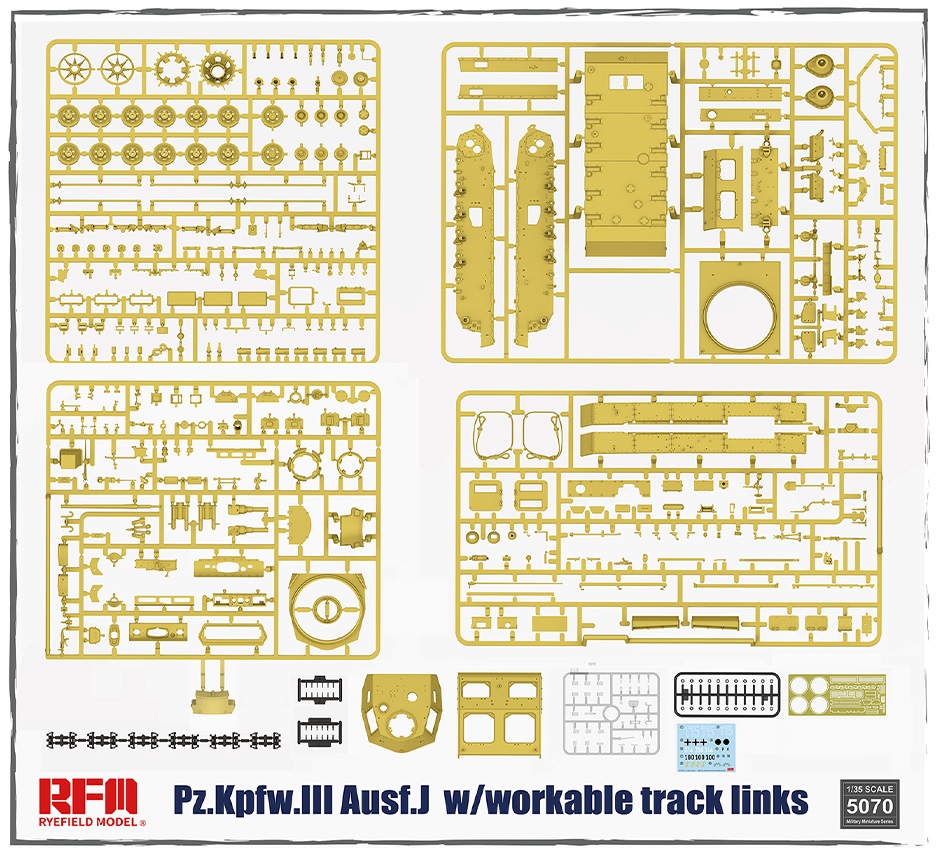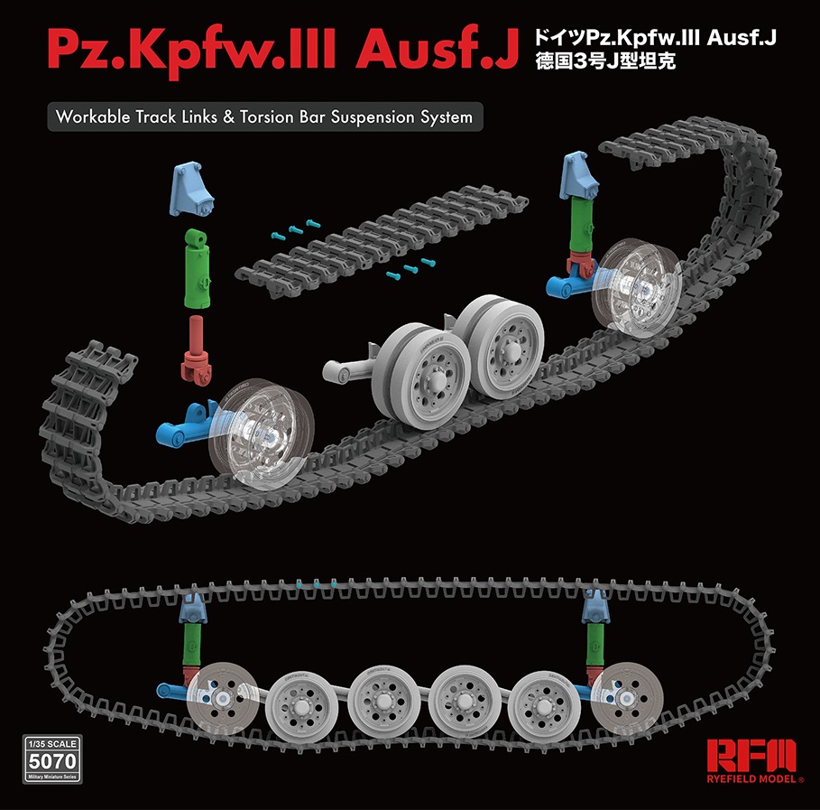 RM-5070 PZ.KPFW.III AUSF.J W/WORKABLE TRACK LINKS & TORSION BAR SUSPENSION SYSTEM rye field model 1/35