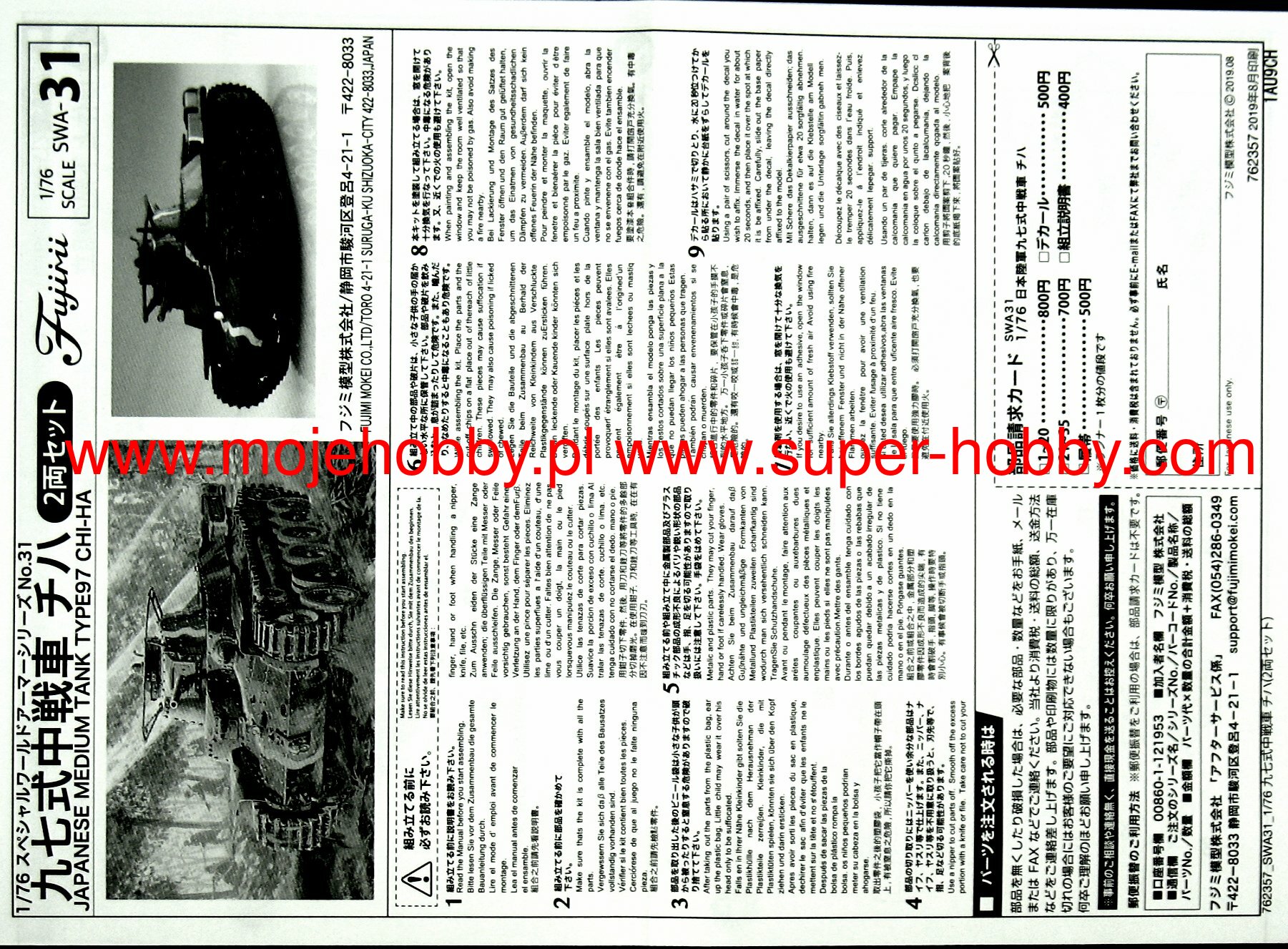 The Type 97 Chi-Ha was a Japanese medium tank from the Second World War. The first prototypes were built in 1936, and serial production continued in 1938-1943. In total, about 1,200 copies of this tank were built. The Type 97 was powered by an engine Mitsubishi SA 12-200VD with 170 HP. The armament of the vehicle - the basic version - was a single 57 mm Type 97 tank gun and two 7.7 mm Type 97 machine guns. The Type 97 Chi-Ha was developed in response to a demand from the Japanese Army High Command for a new medium tank. The arsenal of the army in Osaka and the Mitsubishi concern stood up to compete. Based on the experience of the Spanish Civil War and observations from the war in China, a decision was made to adopt a tank developed by Mitsubishi, the Type 97 Chi-Ha. The new tank had good off-road mobility, but also - as shown in the clashes with the T-26 and BT-5 vehicles over Chałchyn-Gol - completely outdated armament and too thin armor. As a result, a decision was made to modernize the car, which led to the Type 97 Shinhoto Chi-Ha version, which was developed in 1940. It featured a new 47mm Type 1 cannon, an enlarged hull and an improved engine cooling system. Type 97 tanks fought in China (1937-1945), against the Red Army in 1938-1939 and during the Pacific War of 1941-1945, especially intensively in the first - offensive phase of this conflict - in 1941-1942, especially in the Philippines and Malaya . Tanks Captured by Chinese troops during the Japanese-Chinese War, the Type 97 Chi-Ha also fought in the Chinese Civil War 1945-1949.