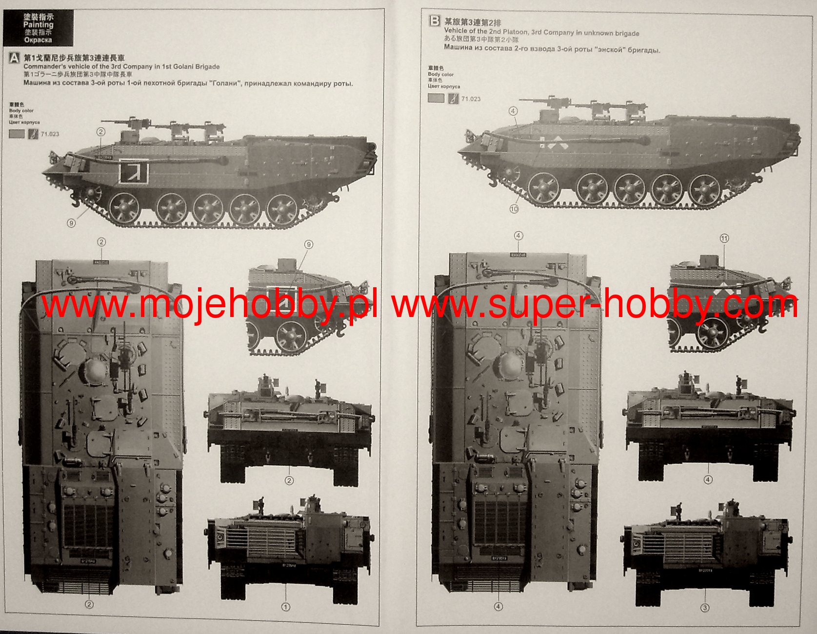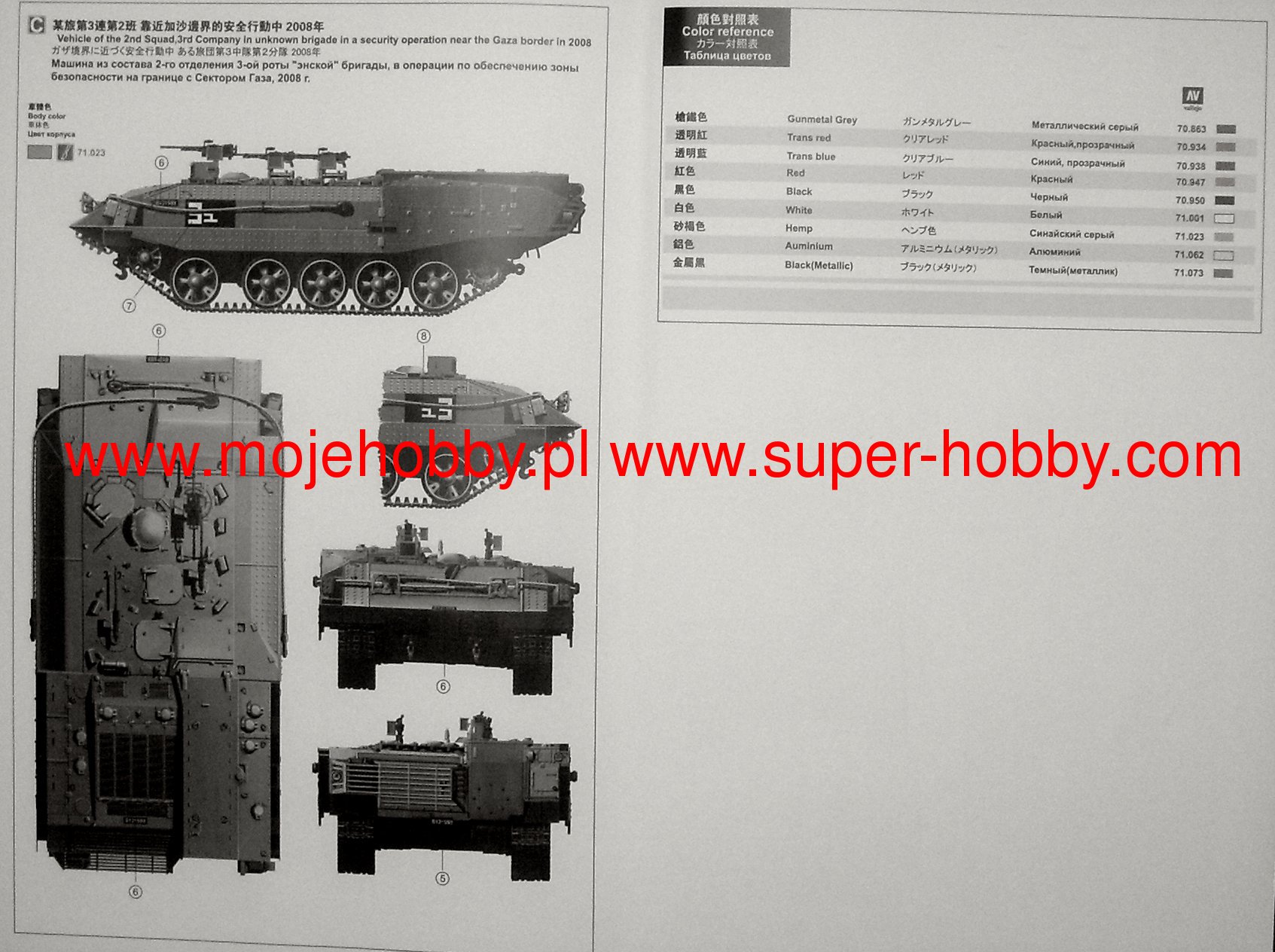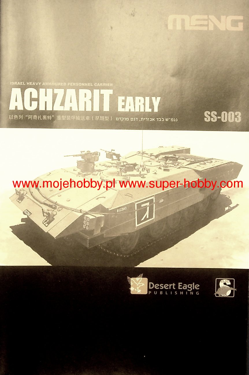 Achzarit is a modern Israeli heavy tracked APC. The vehicle is powered by a single diesel engine with a power of 650 or 850 hp . Production of cars of this type started in 1988. Standard The Achzarit is armed with three 7.62 mm machine guns. Vehicle Achzarit was created as a result of modification of captured Soviet-made Arab tanks of the T-54 / T-55 family. The modification consisted in removing the turret of the tank and the main armament, modernizing the chassis and arranging a landing compartment in the middle and rear of the vehicle, which allows the transport of up to 7 soldiers with full equipment. Achzarit was also armored with reactive armor (ERA), especially at the front of the hull. In the course of serial production, two versions of the vehicle appeared, differing in the engine used: the Mk.1 with an engine power of 650 HP and the Mk.2 with an engine power of 850 HP. Armored personnel carriers Achzarit took part in activities, e.g. as part of activities related to the Al-Aqsa Intifada in 2000-2004 or during the Second Lebanon War in 2006.