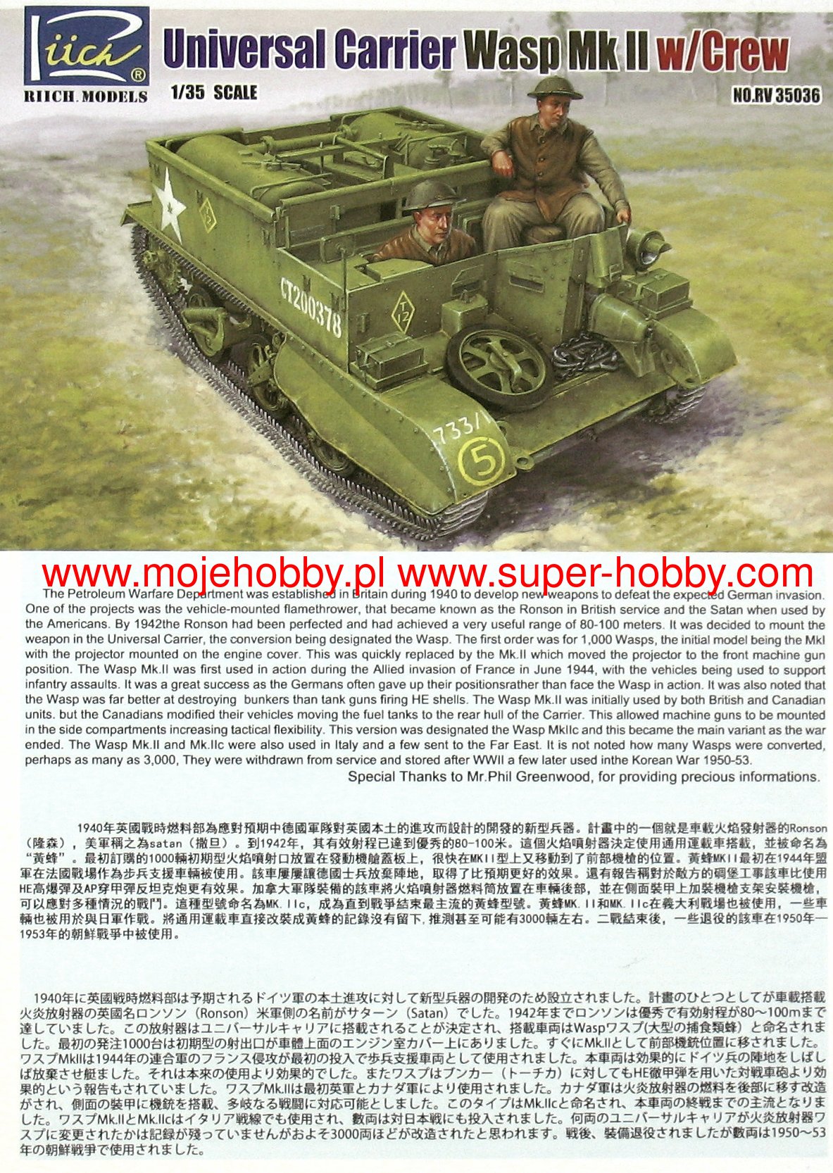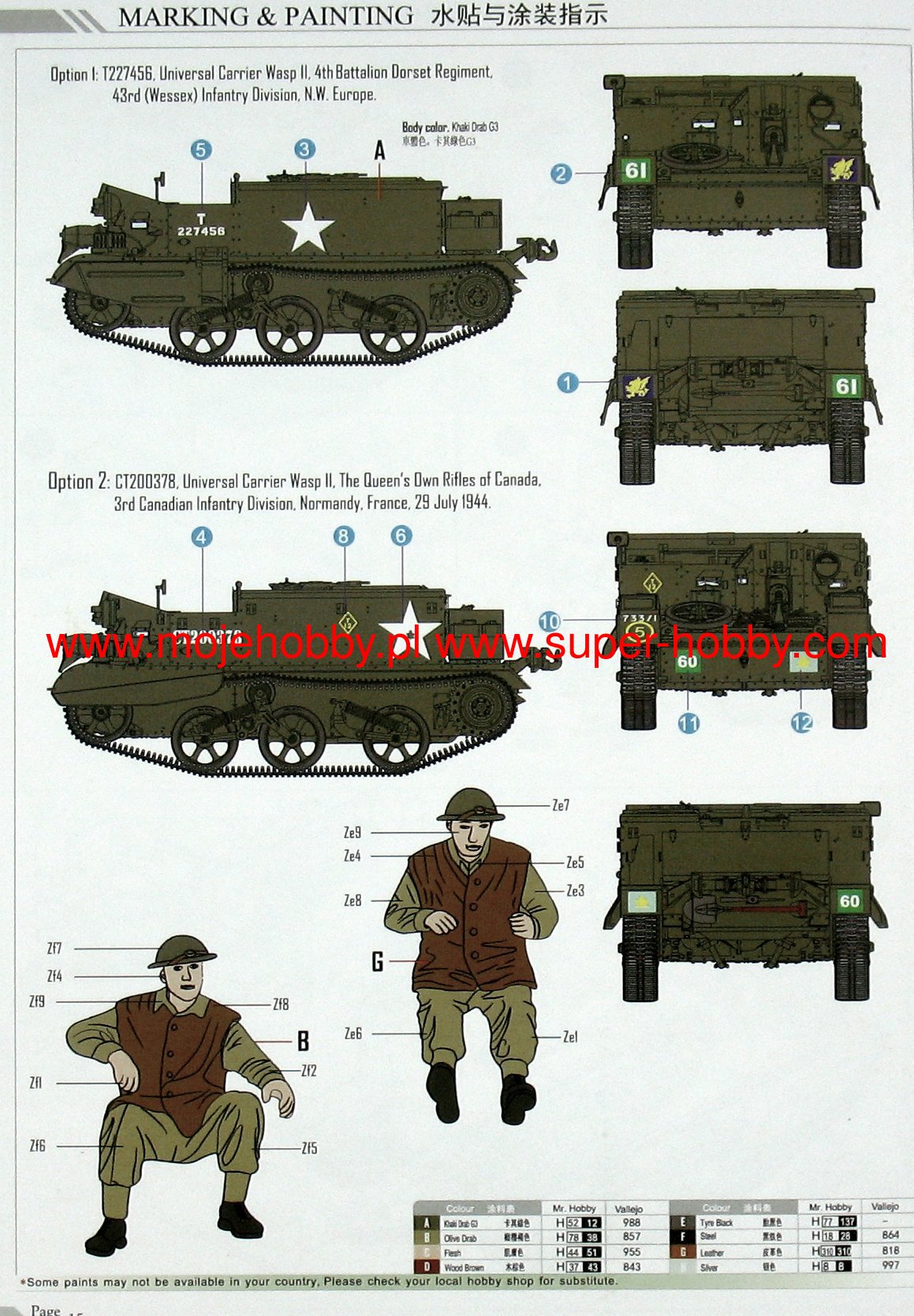 The Universal Carrier was a British tracked light armored vehicle from the Second World War. The first prototypes were built in 1935, and serial production was carried out in the period 1936-1945. In total, as many as 75,000 copies of this vehicle of all versions were created, which makes it the most frequently produced British armored vehicle during the Second World War. The Universal Carrier was powered by an engine Ford GAE or GAEA with 65 HP. The armament of the vehicle varied depending on the version, but most often it consisted of a 7.7 mm Bren machine gun. The Universal Carrier was derived from the VA D50 tractor developed at Vickers and was the result of a British Army contract for a lightweight, versatile tracked transporter. Originally, there were three versions of the car: the Vickers heavy rifle carrier, the Bren Gun Carrier, the Scout Carrier reconnaissance vehicle and the armored personnel carrier dedicated to Cavalry Carrier cavalry units. However, in 1939 it was decided to standardize all these vehicles and - with the outbreak of the war - put such a unified vehicle (Universal Carrier) into mass production. During World War II, the Universal Carrier was used for a wide variety of tasks: as an armored personnel carrier, as a reconnaissance vehicle or as an artillery tractor for a 6-pound 57mm gun. The Universal Carrier turned out to be a very successful, reliable, cheap to produce vehicle, susceptible to modernization and improvement. It was produced not only in Great Britain, but also in Canada, India and Australia. He served in many armies, including British, Australian and Canadian. It was also used by the Polish Armed Forces in the West (PES). The Universal Carrier vehicle served on all fronts where the British army fought in World War II: from the campaign in France in 1940, through the fighting in North Africa (1940-1943) and Italy (1943-1945), to the campaign in Normandy, in France and in West Germany (1944-1945). He also fought in the Far East against Japanese troops (1941-1945).