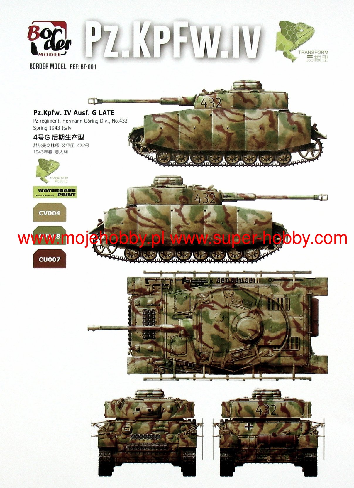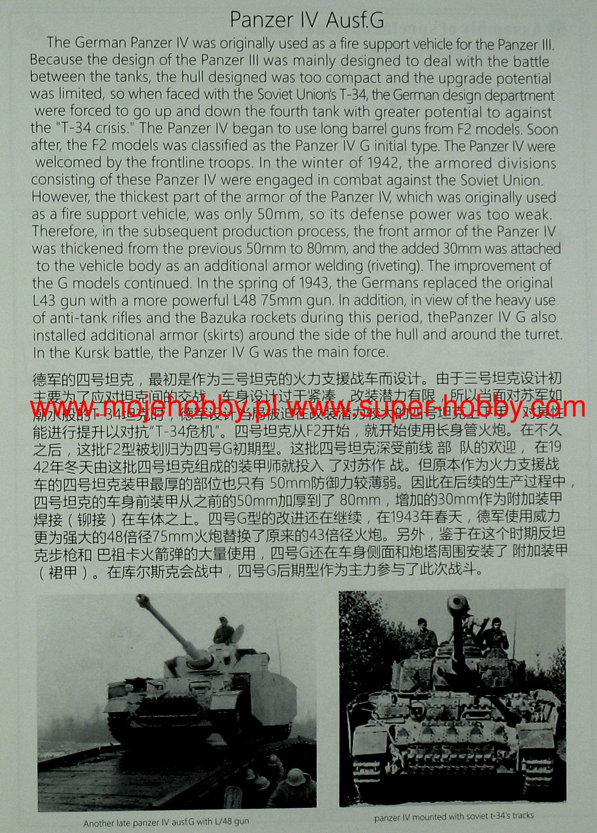 PzKpfw IV (Panzerkampfwagen IV) was a German medium tank from the Second World War. The first prototypes of the vehicle were created in 1936, and serial production continued in the period 1938-1945, ending with the production of about 8,600 vehicles. The D version of the tank was powered by a single Maybach HL 120 TRM engine with a capacity of 300 HP. It was armed with 1 75mm KwK 37 L / 24 gun and 2 7.92mm MG 34 machine guns. The PzKpfw IV was created as a result of a competition announced at the end of 1934 by the German Armaments Department for a medium tank weighing up to 18 tons and armed with a 75 mm gun. The competition was won by the Krupp company, whose vehicle was put into mass production - as it turned out, it was a vehicle that can be safely called the "workhorse" of German armored forces during World War II and one of the most intensively developed and modernized Wehrmacht tanks. Numerous variants of the PzKpfw IV were created in the course of production. Chronologically, the first was the A version, armed with a 75mm short-barreled gun and a 230hp engine. However, versions B and C appeared quickly, in which several significant changes were made: first of all, more powerful engines (265 HP in version B and Maybach HL 120 TRM with 300 HP in C version - which were installed in PzKpfw IV until 1945 year), and the armor of the entire car was improved. The F1 and F2 versions turned out to be a real revolution, in which the frontal armor was increased to 60 mm, and the main armament was changed to the great, long-barreled 75mm KwK 40 L / 43 cannon, which in 1942 and 1943 allowed them to fight any Allied or soviet. The most frequently produced versions of the PzKpfw IV were the G, H and J versions, which were very similar to the F1 and F2 versions. The main armament has not changed significantly (it was still the KwK 40 cannon), as well as the engine and chassis. On the other hand, the armor was slightly strengthened, and from the beginning of 1943 armored screens (Schurzen) were installed on them. Numerous other vehicles were built on the chassis of the PzKpfw IV, such as the StuG IV assault gun, the Nashorn tank destroyer or the Wirbelwind self-propelled anti-aircraft gun. PzKpfw IV tanks were used on almost all fronts of World War II - from the September campaign in 1939, through the campaign in France in 1940, the Barbarossa and Typhoon operations in 1941, the Battle of Kursk in 1943, to the last operations of the German army against The USSR and the Western Allies in 1944-1945.