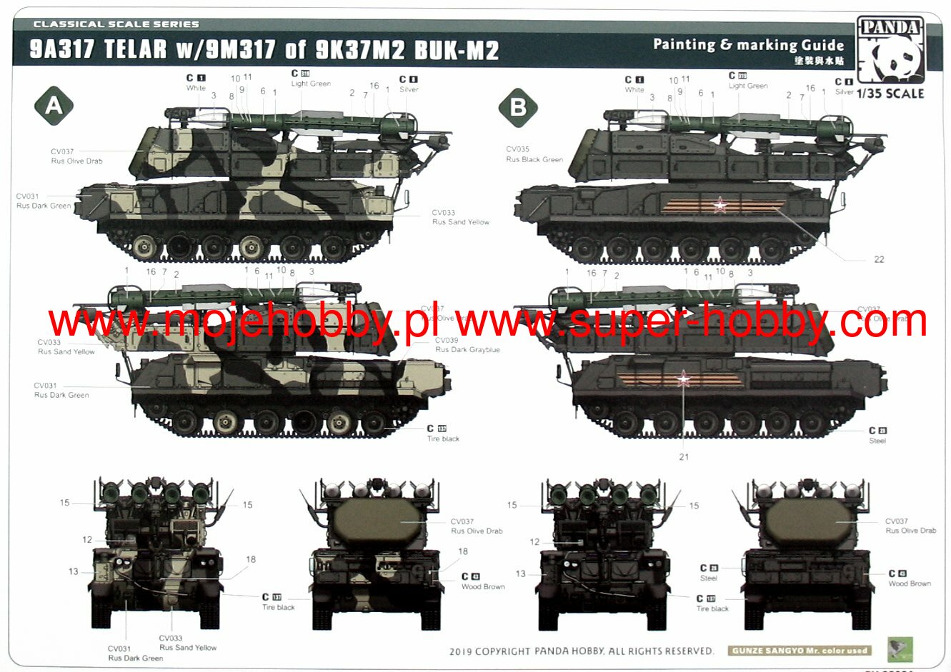 9K37 Buk to mobilny system obrony przeciwlotniczej i przeciwrakietowej produkcji radzieckiej, a obecnie rosyjskiej. Pierwsze prototypy tego systemu pojawiły się pod koniec lat 70. XX wieku, a do służby w Armii Radzieckiej wszedł w 1979 albo 1980 roku. Przyjmuje się, że podstawowy kierowany pocisk rakietowy tego systemu mierzy ok. 5,5 m, przy wadze rzędu ok. 690 kg, z czego głowica bojowa ma masę rzędu 70 kilogramów. 9K37 Buk został opracowany jako następca systemu 2K12 Kub. Jego głównym przeznaczeniem jest zwalczanie manewrujących samolotów, śmigłowców, ale też pocisków typu cruise czy rakiet krótkiego i średniego zasięgu. Przyjmuje się, że system w swej pierwotnej wersji był w stanie zwalczać cele na dystansie do 22 kilometrów. Jednak wraz z wprowadzeniem do służby nowych wersji systemu, na przykład wersji 9K37M-1 czy 9K317E (produkowanego od 2007 roku), zasięg ten wzrósł do 50-60 kilometrów. Wraz z rozwojem systemu rosła też liczba rakiet, które mogły być kierowane na cel: od 1-2 w wersji podstawowej, do 24 w wersji 9K317E. System był i jest nadal dość szeroko eksportowany i poza Federacją Rosyjską, był albo jest również wykorzystywany w: Algierii, na Białorusi, w ChRL czy na Ukrainie. Co oprócz modelu będę potrzebować do jego sklejenia?