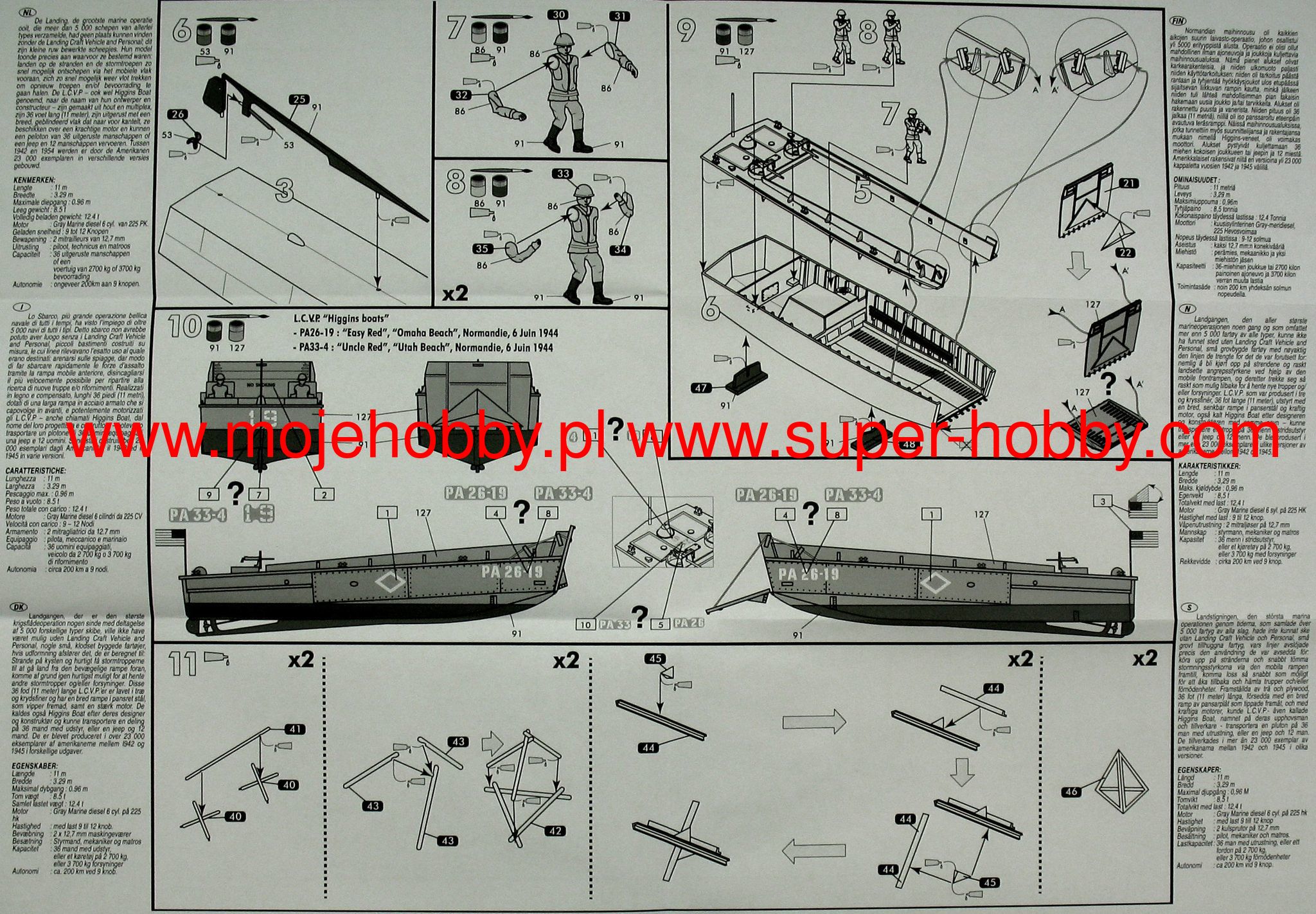 LCVP (full English name: Landing Craft, Vehicle, Personnel) is an American landing craft from World War II and the post-war period. Barges of this type were built on a massive scale in 1942-1945. It is estimated that over 23,000 barges of this type were built at that time. The total length of the LCVP was 11.5 meters and a width of 3.3 meters. The empty barge weighed about 8.2 tons, and the maximum speed did not exceed 11-12 knots. Most often, the deck armament consisted of two 7.62 mm Browning machine guns. The LCVP was designed by the American entrepreneur and constructor Andrew Higgins based on units designed to operate in wetlands, swamps and swamps. Very often, from the name of the designer, it is called "Higgins's boat". The first copies of this boat, tested in the late 1930s by the US Marine Corps, did not have an unloading ramp in the bow part. However, this disadvantage was eliminated relatively quickly, and the aforementioned ramp was finally the width of the entire barge. It is worth adding that LCVPs were cheap and adapted to mass production - suffice it to say that a lot of their elements were made of plywood! They also had a slight draft, which allowed them to land directly on the shore. A single LCVP barge could carry up to 36 soldiers with full equipment. Barges of this type were used extensively by the Allies in operations such as the North Africa (1942), Sicily (1943) and Normandy beaches (1943). 1944). They were also successfully used in the Far East during the battles for Guadalcanal (1942-1943) or during the landings on the islands of Iwo-Jima and Okinawa (1945).The LCVP (Landing Craft Vehicle Personnel) type barges were designed for the Operation Overlord by the American designer Andrew Higgins. They were made entirely of plywood and could accommodate 36 soldiers or a light vehicle such as a Jeep. The speed of these carriers reached 17 km / h, they had a crew of 3 sailors, they were armed with 2 machine guns of 12.7 mm caliber, and the landing was performed after leaving the front ramp. About 20,000 barges of this type were produced.Already after the first experiences of fighting in North Africa at the turn of 1942-1943, the US Army changed the position of the American infantry division. From 1943 onwards, each infantry division had three full-time infantry regiments, in turn composed of three infantry battalions. In addition, the infantry regiment also included other units, for example: an anti-tank company, an artillery company or a staff company. In total, the US Army's infantry regiment numbered approximately 3,100 soldiers. It should also be remembered that the division also included a strong artillery component consisting of four artillery battalions - 3 light and 1 medium, most often armed with 105 and 155 mm howitzers. There was also, among others, an engineering battalion, a repair company, a reconnaissance unit and a Military Police platoon. In total, the US Infantry Division numbered approximately 14,200 people from 1943. It quite clearly dominated the artillery over the German division and had much better and - above all - fully motorized means of transport, which made it a highly mobile tactical formation. It also had much richer "individual" anti-tank weapons in the form of a large number of bazooka launchers, of which there were over 500 in the entire division.