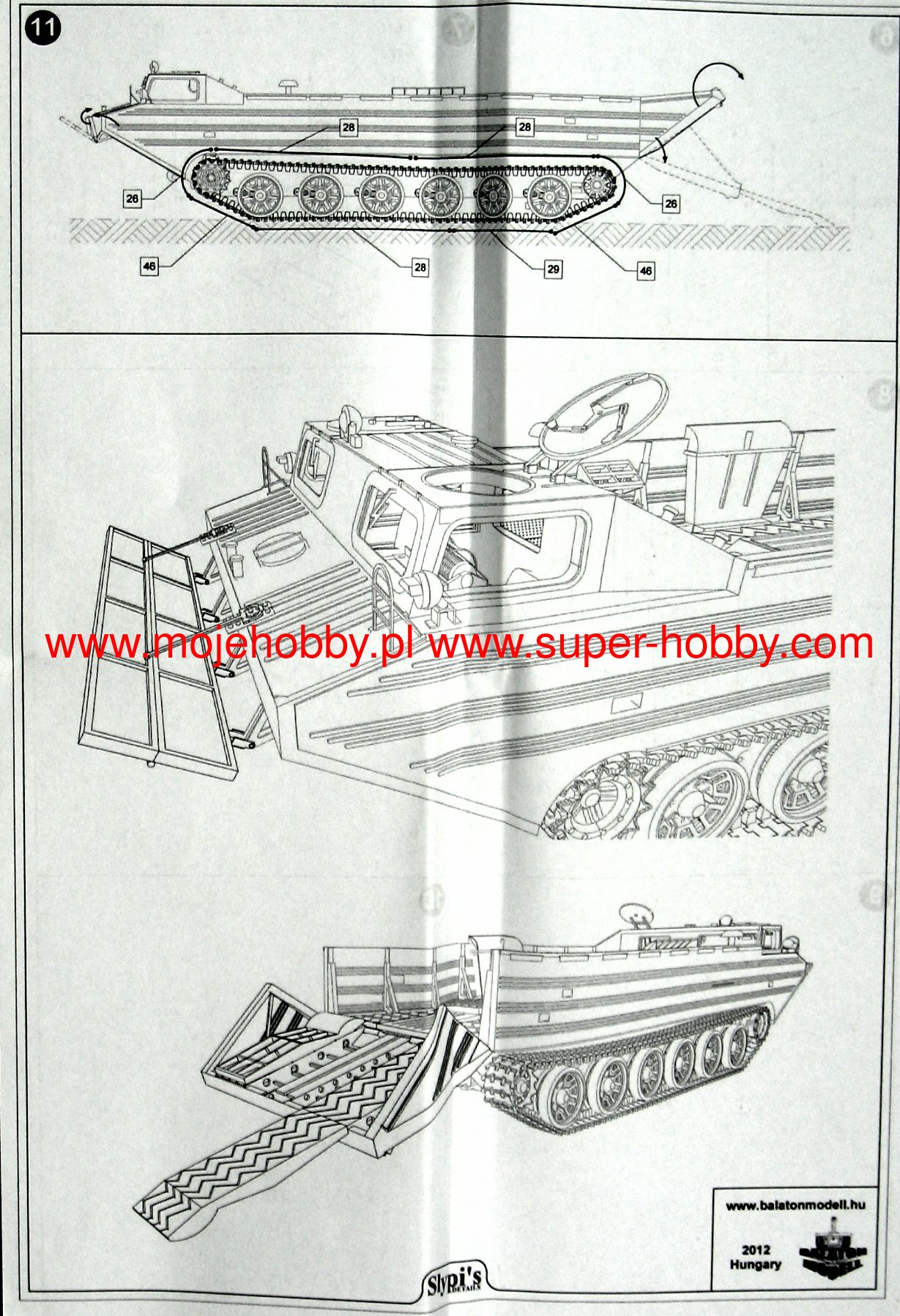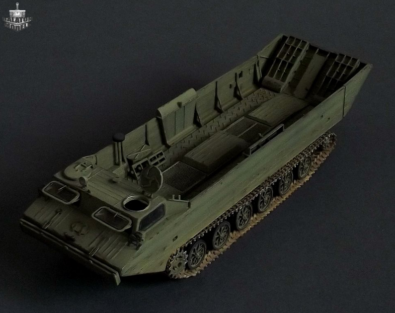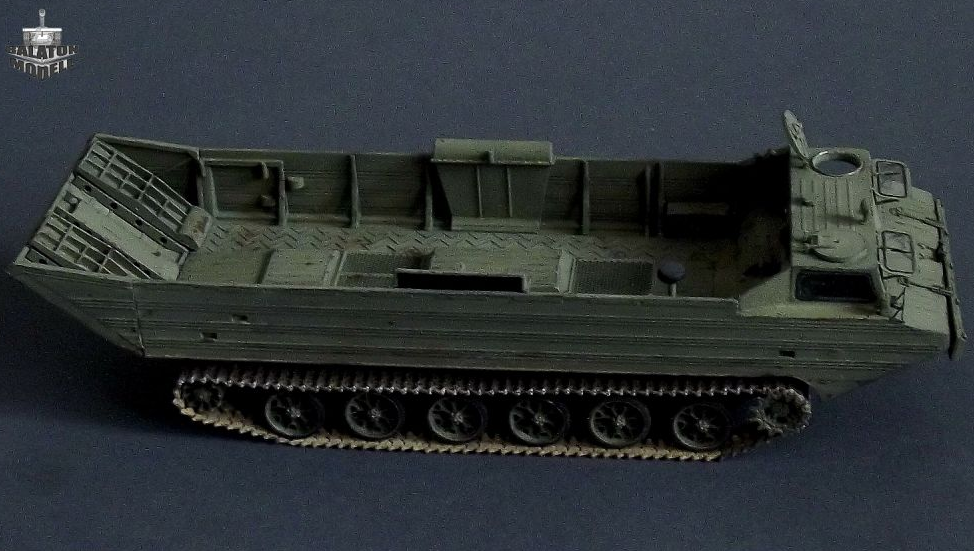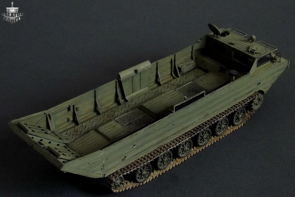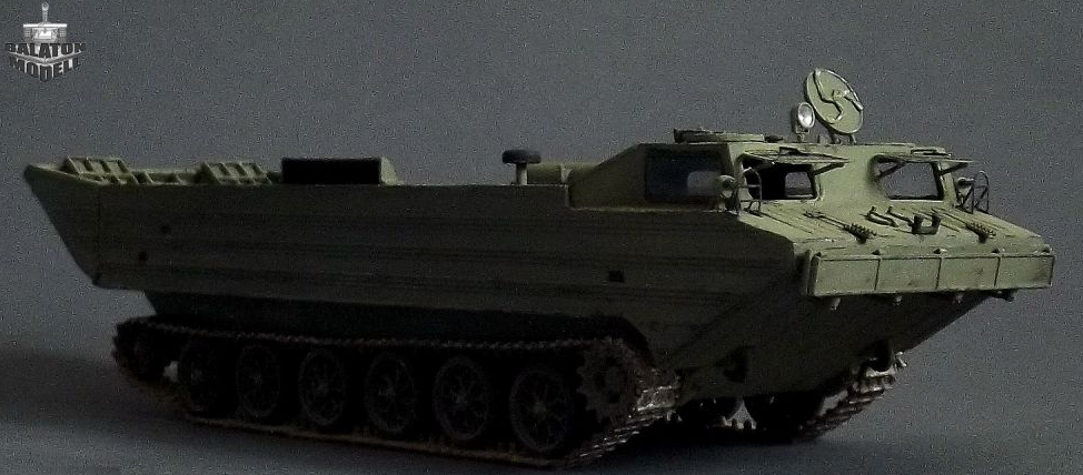 The PTS is a modern Soviet, and later Russian, floating tracked transporter. The vehicle has been in production since the 1960s. The basic version of the vehicle is powered by a single 350 HP W-54-T engine. The vehicle usually does not have any fixed armament. The PTS was developed as the successor to the K-61, with the aim of improving the seaworthiness of the new vehicle, increasing the weight of the load to be carried and better road performance. In order to shorten the research and development time and reduce production costs, many components from the T-54 tank and the ATS-59 artillery tractor were used. During the series production of this successful vehicle, several modernizations were made, including: developed in 1988, with improved propeller drive and higher payload). The PTS vehicle can carry a load of up to 10 tons or 72 landing troops with full equipment.