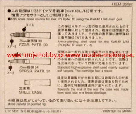 Купить 35182 TAMIYA ЛАТУННЫЕ СНАРЯДЫ ДЛЯ НЕМЕЦКИХ ТАНКОВ Т-IV С 75-ММ ПУШКОЙ L48 KWK40 (1/35)