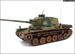 The Type 3 Chi-Nu was a Japanese medium tank from the Second World War. The first prototypes were built in 1943, and serial production continued in 1944-1945. In total, about 150 examples of this tank were built. The Type 3 Chi-Nu was powered by an engine Mitsubishi Typ 100 with 240 HP. It was armed with a single 75mm Type 3 tank gun and one 7.7mm Type 97 machine gun. The Type 3 Chi-Nu was developed in response to the Japanese Army Command's demand for a new medium tank. It was supposed to be an equal opponent for the American M 3 Lee and M4 Sherman cars. After a long process of conceptual and analytical work, it was decided to use the drive and the entire chassis of the Type 97 Shinhoto Chi-Ha, but with the chassis and redesigned turret of the Type 1 tank. The new tank had armor up to 50 mm thick, which was at most comparable to the Allied tanks, but with outdated main armament and mediocre off-road characteristics. It was clearly inferior to the M4 Sherman. All produced Type 3 Chi-Nu tanks were sent to defend the Home Islands against the expected Allied invasion of Japan, and never took part in combat.