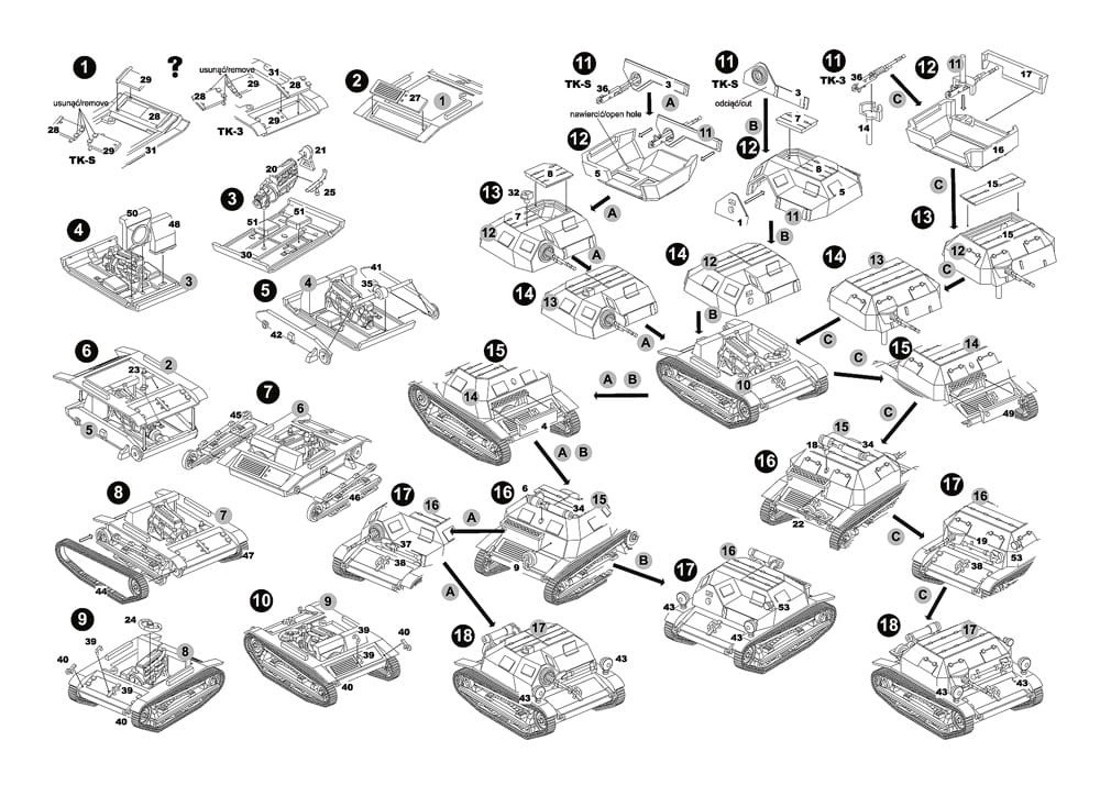 TKS is a Polish light tank (tankette) from the Second World War. The first prototypes of the vehicle were made in 1933, and serial production continued in the period 1934-1936, ending with the production of 280 copies of this vehicle. The TKS was powered by an engine Polish Fiat 122B with 46 HP. The vehicle was armed with one 7.92 mm Hotchkiss wz.25 machine gun or one of the heaviest wz. 38 FK-A with a caliber of 20 mm. TKS was created as a modernization and development of the TK-3 vehicles. Compared to the original, the front part of the fuselage has been changed, a new engine with a little more power has been added, the armor has been strengthened - especially in the front part of the car, the running gear and electrical system have been modernized. The changes led to a virtually completely new vehicle. However, the existing weaponry, i.e. a single machine gun, was retained, and it was planned to be replaced with a 20 mm caliber weapon. However, the outbreak of war in 1939 thwarted these plans and only about 20-30 TKS were modernized in this way. Due to the large number of TKS produced by Polish standards, they were the basic element of the Polish armored forces during the September campaign in 1939. TKS tankettes were also exported to Estonia, and the copies obtained in 1939 were used by both the German and Soviet armies.