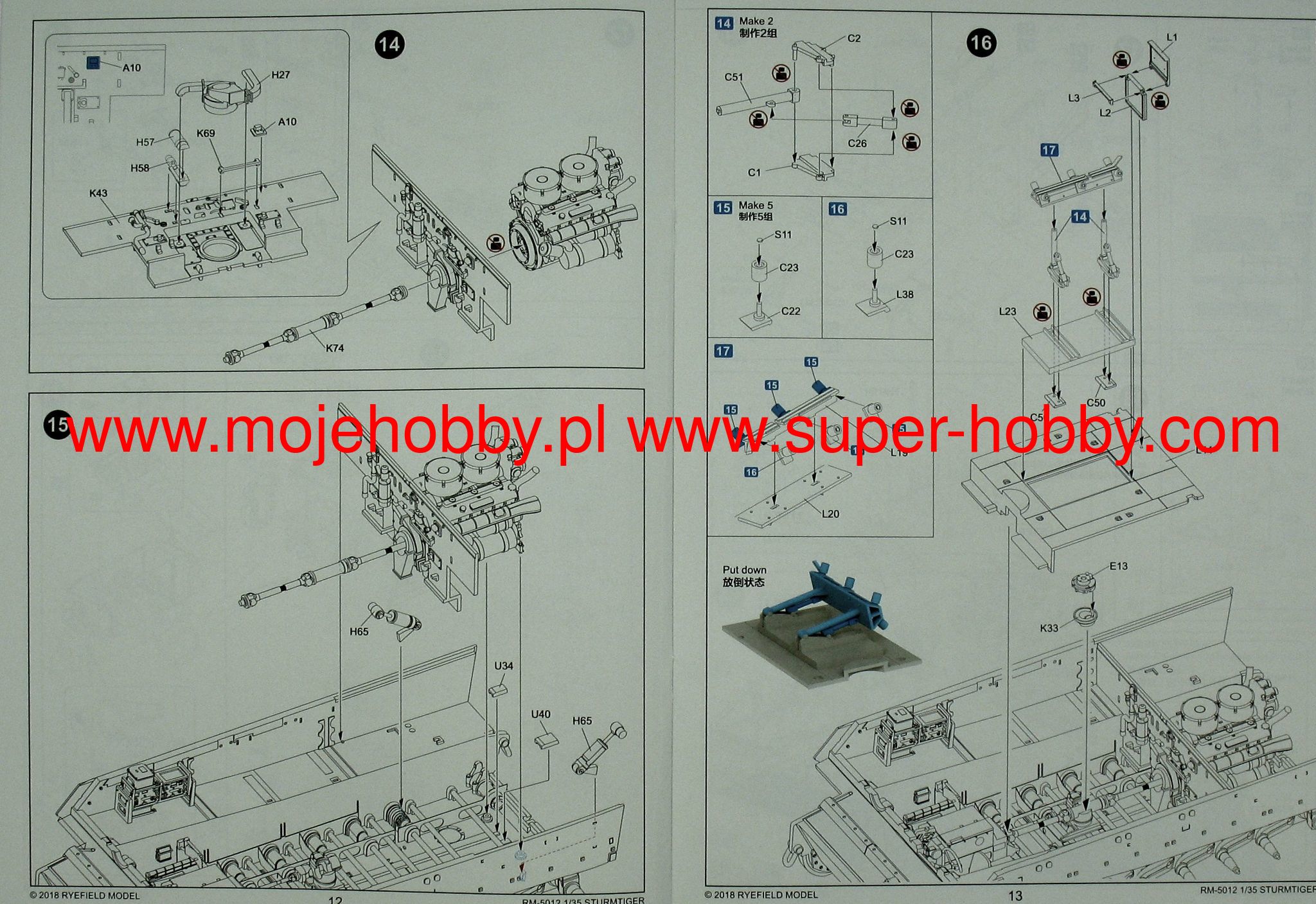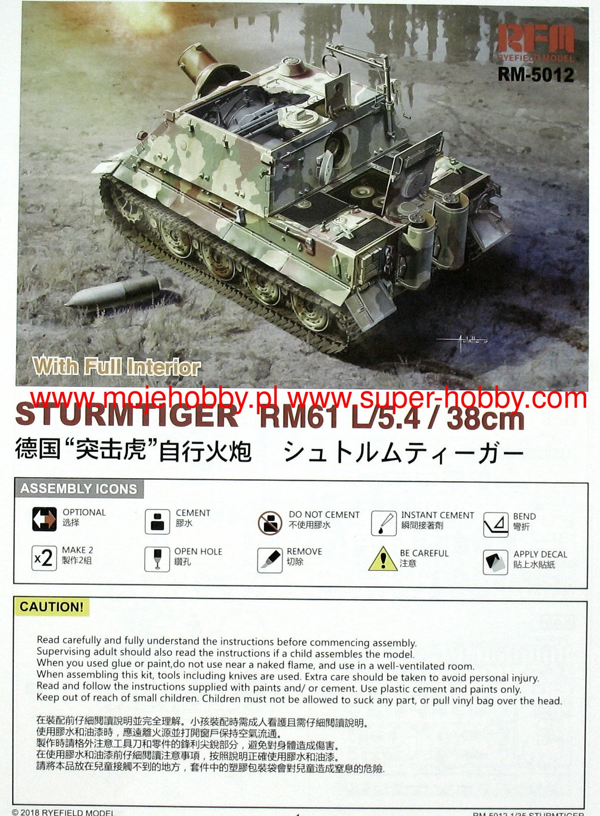 RM-5012 STURMMORSER TIGER RM61 L/5,4 / 38 CM WITH FULL INTERIOR rye field model 1/35