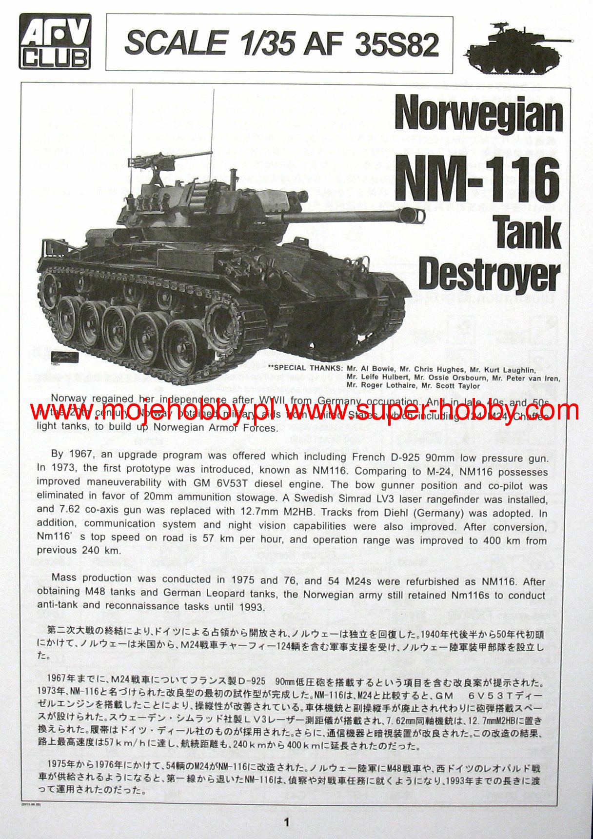 The NM-116 is a Norwegian light tank from the Cold War period. The length of the wagon - without a barrel - was 5.03 meters and a width of 2.82 meters. The drive was provided by a single engine diesel 6V53T with 260 HP . The armament consisted of a 90mm D-925 cannon and one 12.7mm machine gun. After the end of World War II, the Norwegian armed forces acquired approximately 120 American M24 Chaffee tanks. However, already in the 1960s it became clear that these vehicles would not be able to engage in equal combat with Soviet vehicles such as the T-54, T-55 or especially the T-62. On the other hand, the Norwegian army was aware that the purchase of completely new tanks would be beyond its financial capacity. With both of these issues in mind, it was decided to significantly modernize some of the M24's owned, which in fact led to the creation of a completely new car - the NM-116. The reconstruction included the replacement of the drive unit, which now had the form of the so-called "Power pack", with an engine similar to that used in the M113 transporters. In addition, the main armament has been changed from a 75mm cannon to a 90mm cannon. A completely new fire control system using a laser rangefinder was installed. The first cars modernized in this way were created in the early 1970s, and they were withdrawn from service only in 1993!