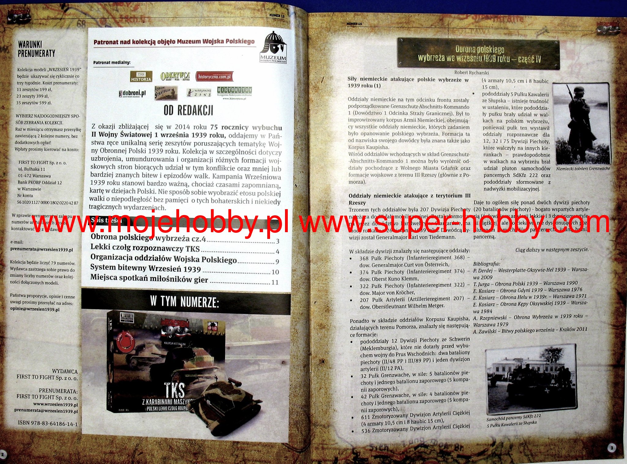 TKS is a Polish light tank (tankette) from the Second World War. The first prototypes of the vehicle were made in 1933, and serial production continued in the period 1934-1936, ending with the production of 280 copies of this vehicle. The TKS was powered by an engine Polish Fiat 122B with 46 HP. The vehicle was armed with one 7.92 mm Hotchkiss wz.25 machine gun or one of the heaviest wz. 38 FK-A with a caliber of 20 mm. TKS was created as a modernization and development of the TK-3 vehicles. Compared to the original, the front part of the fuselage has been changed, a new engine with a little more power has been added, the armor has been strengthened - especially in the front part of the car, the running gear and electrical system have been modernized. The changes led to a virtually completely new vehicle. However, the existing weaponry, i.e. a single machine gun, was retained, and it was planned to be replaced with a 20 mm caliber weapon. However, the outbreak of war in 1939 thwarted these plans and only about 20-30 TKS were modernized in this way. Due to the large number of TKS produced by Polish standards, they were the basic element of the Polish armored forces during the September campaign in 1939. TKS tankettes were also exported to Estonia, and the copies obtained in 1939 were used by both the German and Soviet armies.
