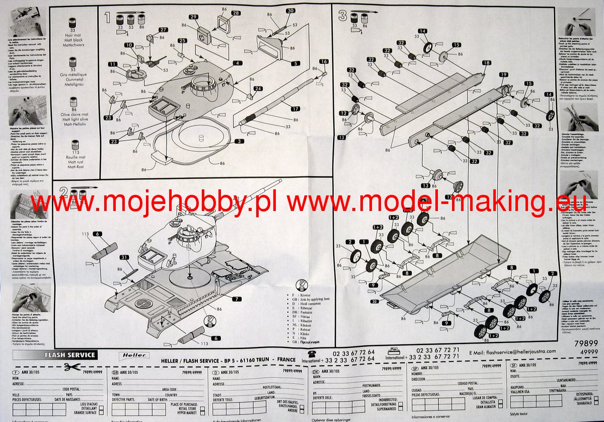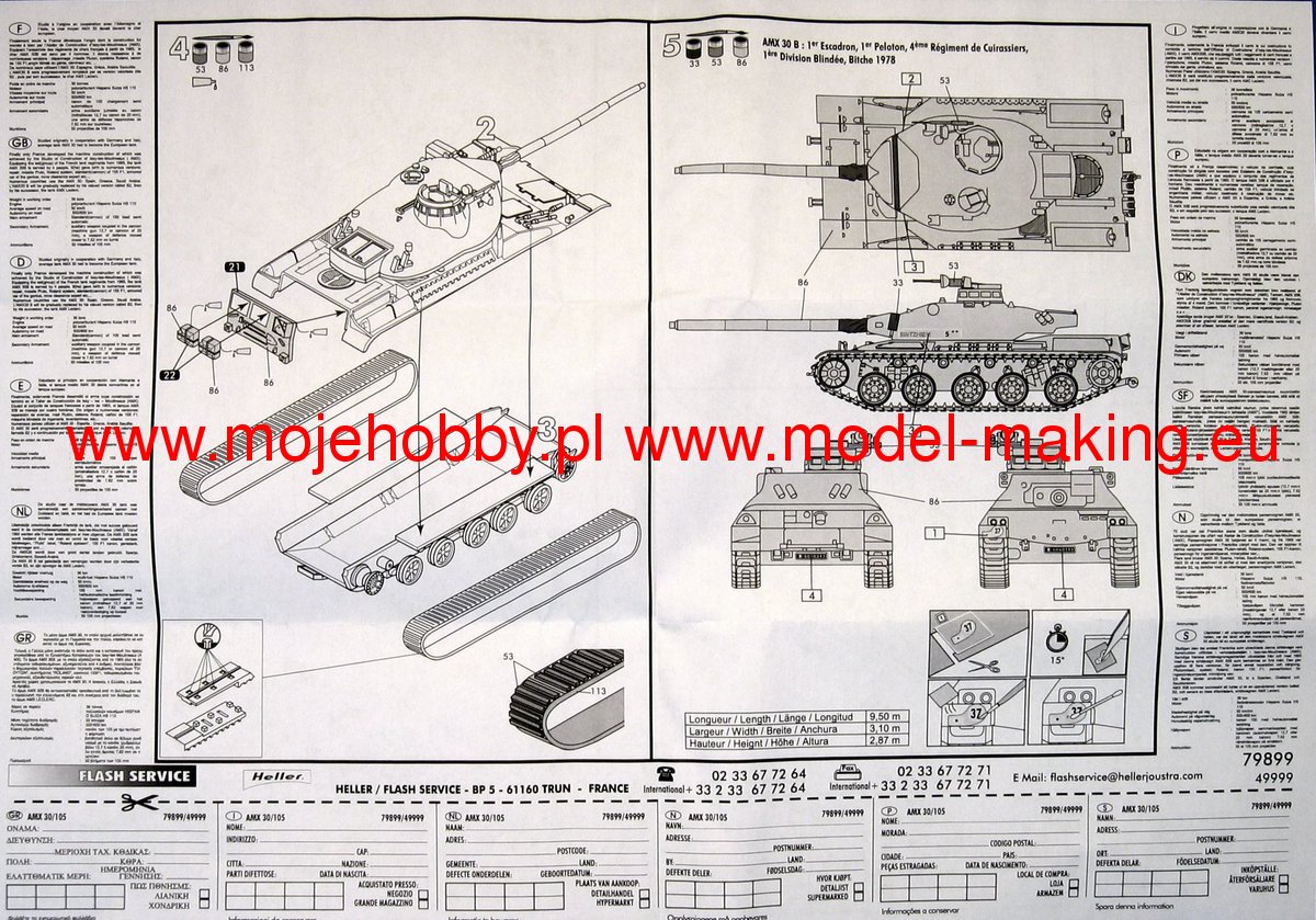 The first prototypes of the French I-generation AMX-30 main battle tank were created in 1963. Serial production started in 1966, which led to the creation of approx. 3,500 vehicles of this type, both for the use of the French army and for export. The AMX-30 tank was powered by a 720hp Hispano-Suiza HS110 diesel engine. Its main armament was the 105mm CN105-F1 cannon, and its auxiliary armament was one 20mm automatic cannon and two 12.7mm and 7.62mm machine guns. The AMX-30 was created as a response to the demand of the French army from the mid-1950s, which wanted to replace the various American and German tanks they had so far with one main battle tank of domestic construction. Originally, work on the AMX-30 was carried out in cooperation with the German industry, but this cooperation was withdrawn after a few years. The AMX-30 tanks were introduced to the line in the mid-1960s, and many specialized vehicles were created on their chassis, including the AMX-30D evacuation tank or the AMX-30EBG engineering vehicle. The AMX-30 itself has also undergone numerous upgrades. One of the most important ones was the modernization to the AMX-30B2 standard, implemented since 1979, which involved improving the suspension and the use of a new SKO (fire control system). The tank was quite successful on foreign markets, mainly among the countries of the Persian Gulf region. It was also used in combat, e.g. in the Operation Desert Storm in 1990.