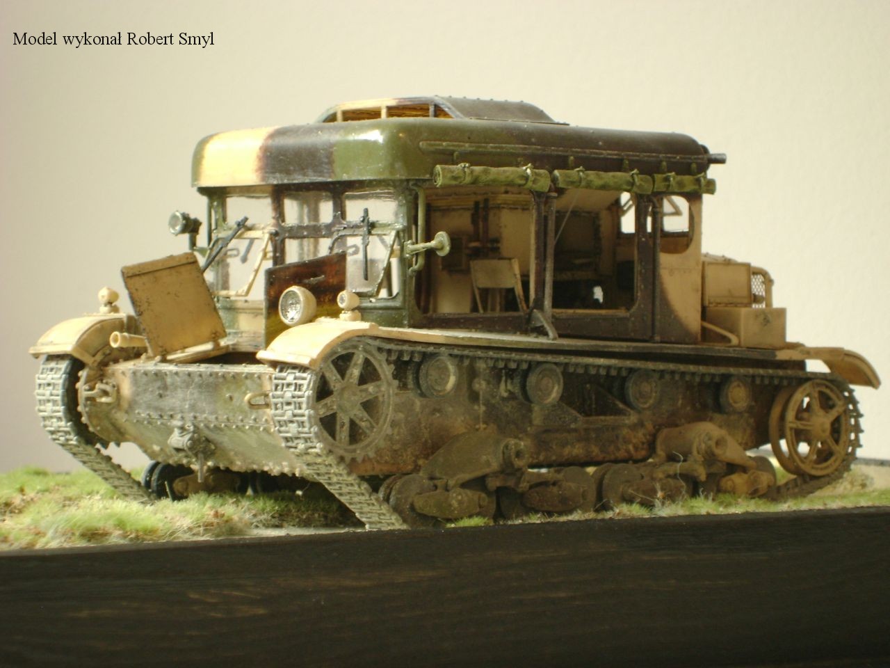 The C7P was a Polish tracked artillery tractor from the interwar period and World War II. The first prototypes of the vehicle were built in 1933, and serial production continued in the period 1934-1939, ending with the production of about 150 examples. The C7P was powered by an engine PZInż. 235 with 115 hp. The vehicle did not have any permanent weapons. Along with the slow motorization and mechanization of the Polish Army at the turn of the 1920s and 1930s, it was decided to increase the mobility of Polish artillery and use in some of its units new tracked tractors that would replace the vehicles used so far - such as the Holt tractor 75. In order to shorten the time needed for analytical and implementation works, it was decided to use the chassis and many components were developed at the same time for the 7TP tank. As a result, a vehicle with good off-road characteristics, low failure rate and relatively easy operation was created. C7P tractors were used primarily for towing heavy cannons, howitzers and mortars. The main target unit turned out to be the 1st Heaviest Artillery Regiment, which received a large part of the C7Ps produced. These vehicles also found their way to the armored forces, where they were used to tow and retrieve damaged tanks from the field. C7P tractors took part in the September campaign in 1939, and small numbers of them fell into the hands of the Wehrmacht and the Red Army.