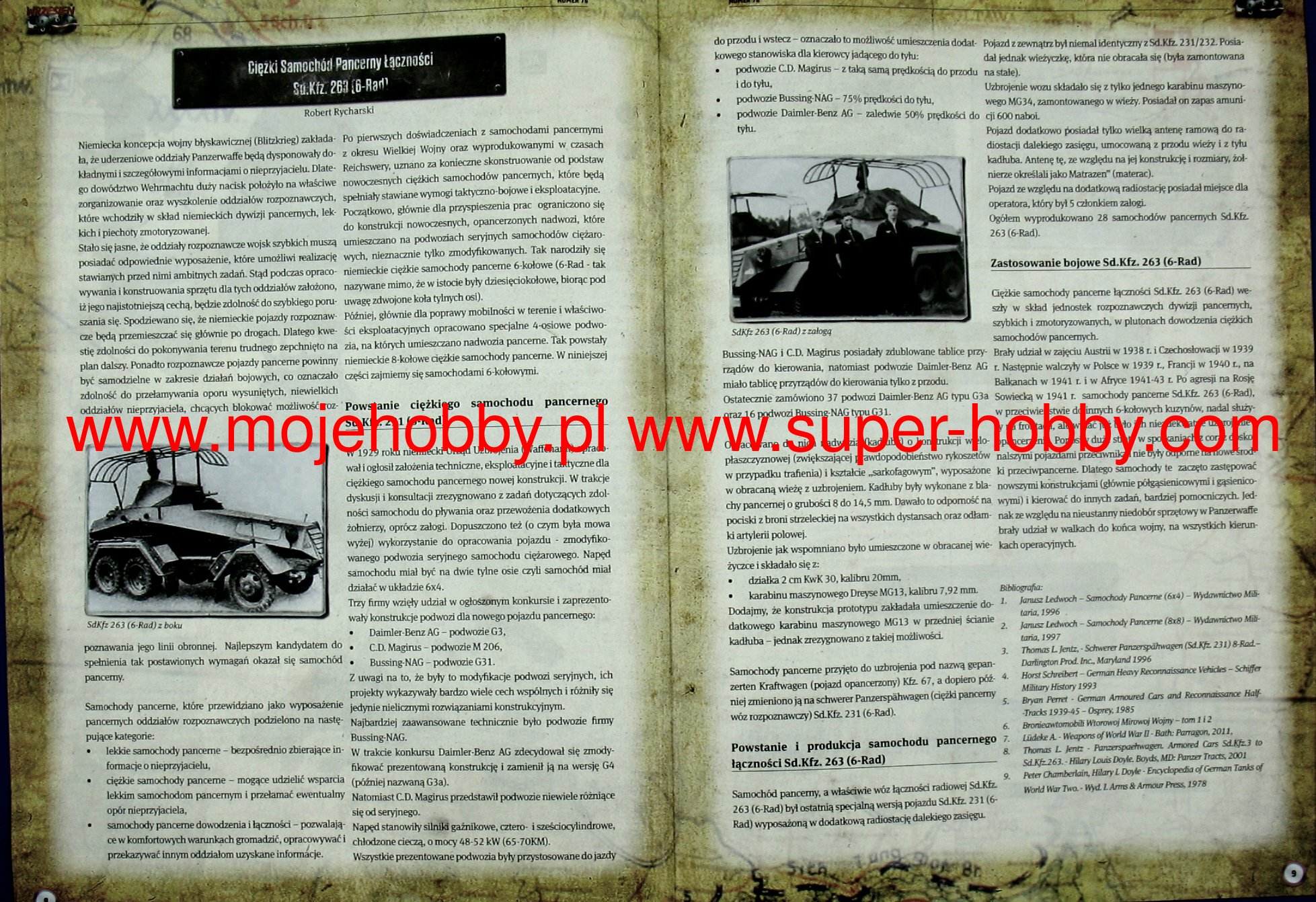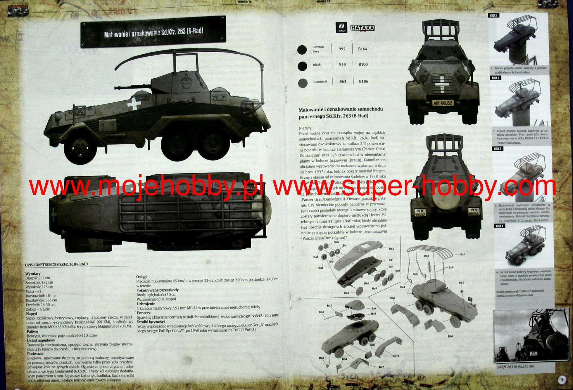 Sd.Kfz.263 Panzerfunkwagen was a German armored car and radio communication from the interwar period and World War II. The first prototypes of the vehicle were created in the mid-1930s, and serial production continued in the period 1937-1943, ending with the production of about 210 copies of this car. The vehicle was powered by a single engine with a power of up to 180 HP. The armament consisted of a single 7.92 mm MG34 machine gun. The Sd.Kfz.263 Panzerfunkwagen was a development of the Sd.Kfz.232 car. The new vehicle adapted many elements of its predecessor, mainly the chassis and many elements of the fuselage. However, a profound change took place in the bodywork, as the turret was removed and the crew compartment was significantly enlarged and adapted to the work of one more crew member. The car could also take more efficient radio equipment and used a railing antenna very often. The only armament was a single machine gun with a fairly limited supply of ammunition. The Sd.Kfz.263 Panzerfunkwagen vehicles were used primarily in the reconnaissance and communication units of the German armored divisions.