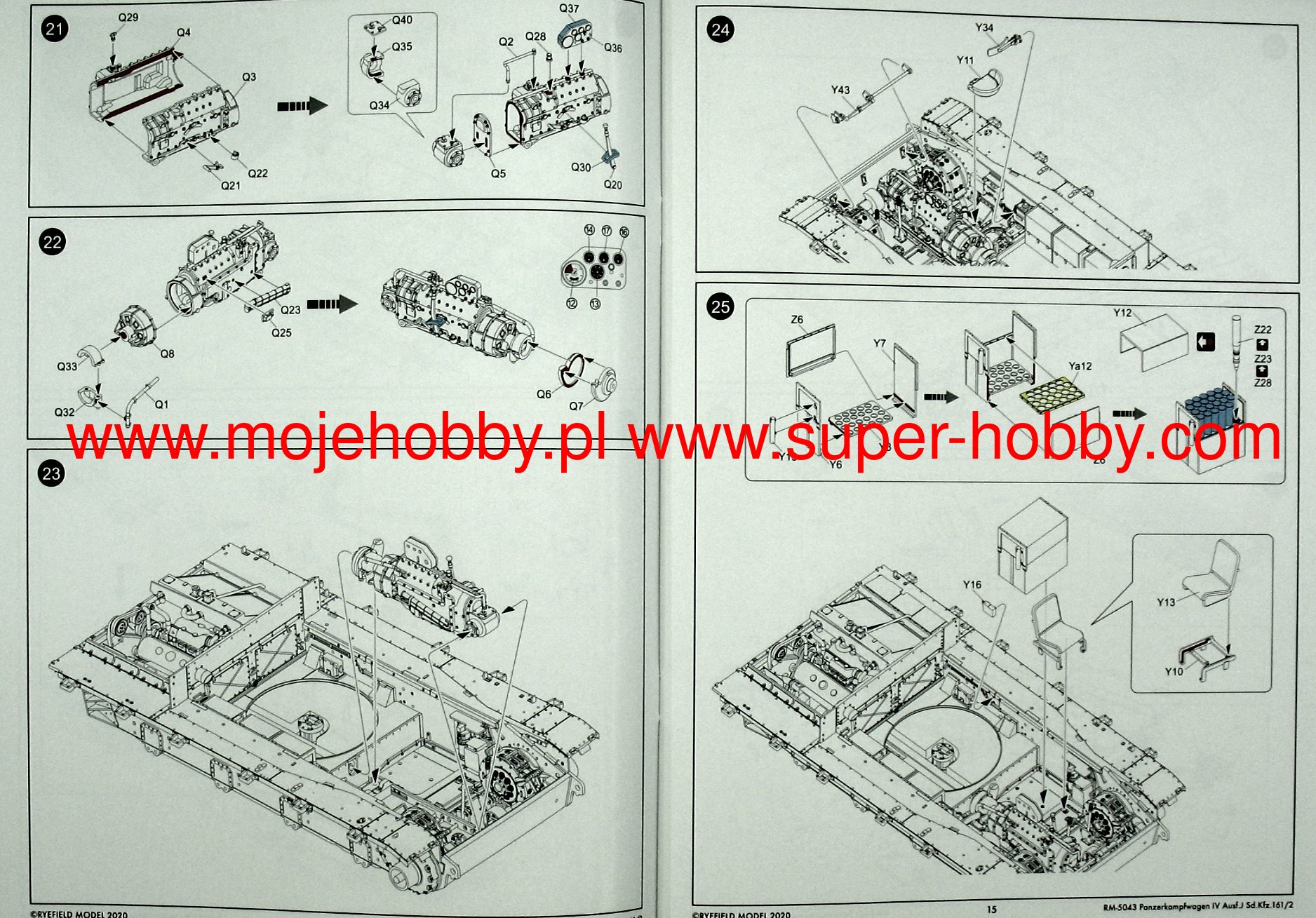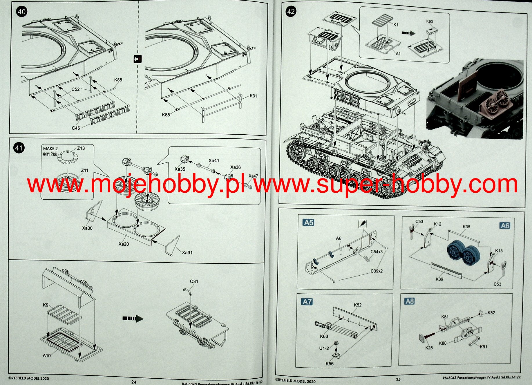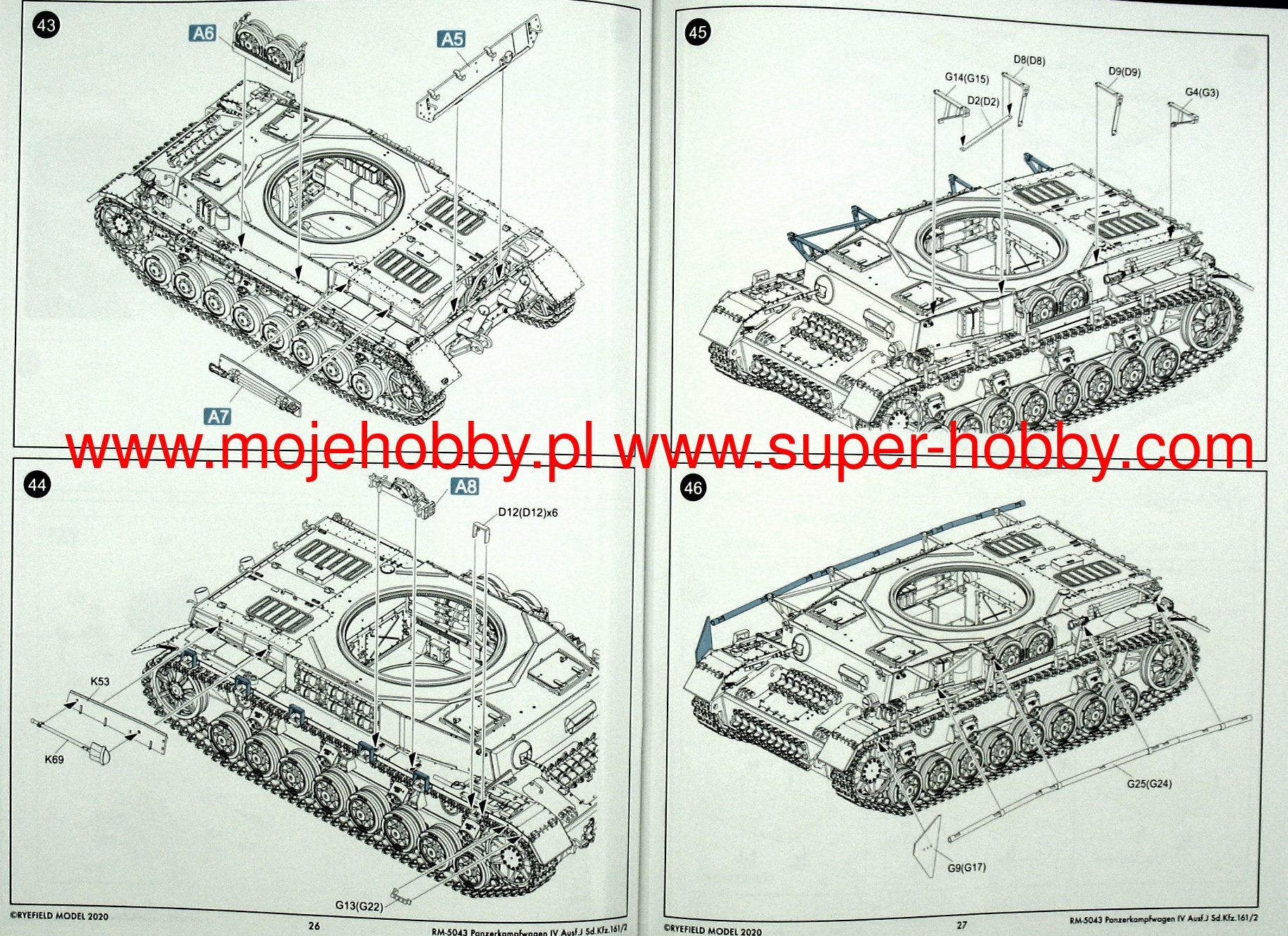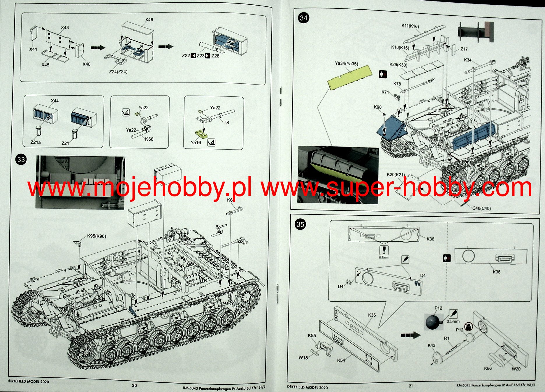 PzKpfw IV (Panzerkampfwagen IV) was a German medium tank from the Second World War. The first prototypes of the vehicle were created in 1936, and serial production continued in the period 1938-1945, ending with the production of about 8,600 vehicles. The D version of the tank was powered by a single Maybach HL 120 TRM engine with a capacity of 300 HP. It was armed with 1 75mm KwK 37 L / 24 gun and 2 7.92mm MG 34 machine guns. The PzKpfw IV was created as a result of a competition announced at the end of 1934 by the German Armaments Department for a medium tank weighing up to 18 tons and armed with a 75 mm gun. The competition was won by the Krupp company, whose vehicle was put into mass production - as it turned out, it was a vehicle that can be safely called the "workhorse" of German armored forces during World War II and one of the most intensively developed and modernized Wehrmacht tanks. Numerous variants of the PzKpfw IV were created in the course of production. Chronologically, the first was the A version, armed with a 75mm short-barreled gun and a 230hp engine. However, versions B and C appeared quickly, in which several significant changes were made: first of all, more powerful engines (265 HP in version B and Maybach HL 120 TRM with 300 HP in C version - which were installed in PzKpfw IV until 1945 year), and the armor of the entire car was improved. The F1 and F2 versions turned out to be a real revolution, in which the frontal armor was increased to 60 mm, and the main armament was changed to the great, long-barreled 75mm KwK 40 L / 43 cannon, which in 1942 and 1943 allowed them to fight any Allied or soviet. The most frequently produced versions of the PzKpfw IV were the G, H and J versions, which were very similar to the F1 and F2 versions. The main armament has not changed significantly (it was still the KwK 40 cannon), as well as the engine and chassis. On the other hand, the armor was slightly strengthened, and from the beginning of 1943 armored screens (Schurzen) were installed on them. Numerous other vehicles were built on the chassis of the PzKpfw IV, such as the StuG IV assault gun, the Nashorn tank destroyer or the Wirbelwind self-propelled anti-aircraft gun. PzKpfw IV tanks were used on almost all fronts of World War II - from the September campaign in 1939, through the campaign in France in 1940, the Barbarossa and Typhoon operations in 1941, the Battle of Kursk in 1943, to the last operations of the German army against The USSR and the Western Allies in 1944-1945.