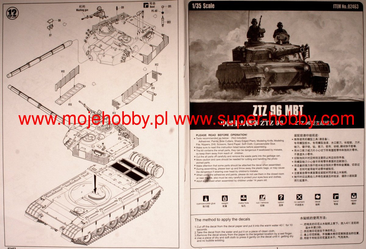 The ZTZ-96 or Type 96 is a modern Chinese Main Battle Tank. The first prototypes of the vehicle were probably created in the early 1990s, and serial production started in 1996 or 1997 continues to this day. To date (2018), 1,500-2,500 tanks of this type have been produced. The ZTZ-96 is powered by a 1000 HP diesel engine. The vehicle is armed with a single 125mm tank gun, a license-free copy of the Russian 2A46 cannon. In addition, the tank's armament consists of 2 machine guns: cal. 12.7 mm and 7.62 mm. The ZTZ-96 was created as a successor to the Type 85 tank. The Chinese designers set themselves the goal of the ZTZ-96 to create a machine that would be able to match Russian designs like the T-80U or T-80UD. To shorten the work, many components from the Type 85 tank were used. However, a few new elements were added: first of all, a slightly modernized gun, better FCS (fire control system) and improved armor. Probably a more powerful engine was also used, which improved the mobility of the car in the field. A significant modification of the ZTZ-96 car is the ZTZ-96G version, which received much better reactive armor and an SKO with thermal imaging cameras. It is commonly believed that the ZTZ-96 is currently the main battle tank of the PRC army.