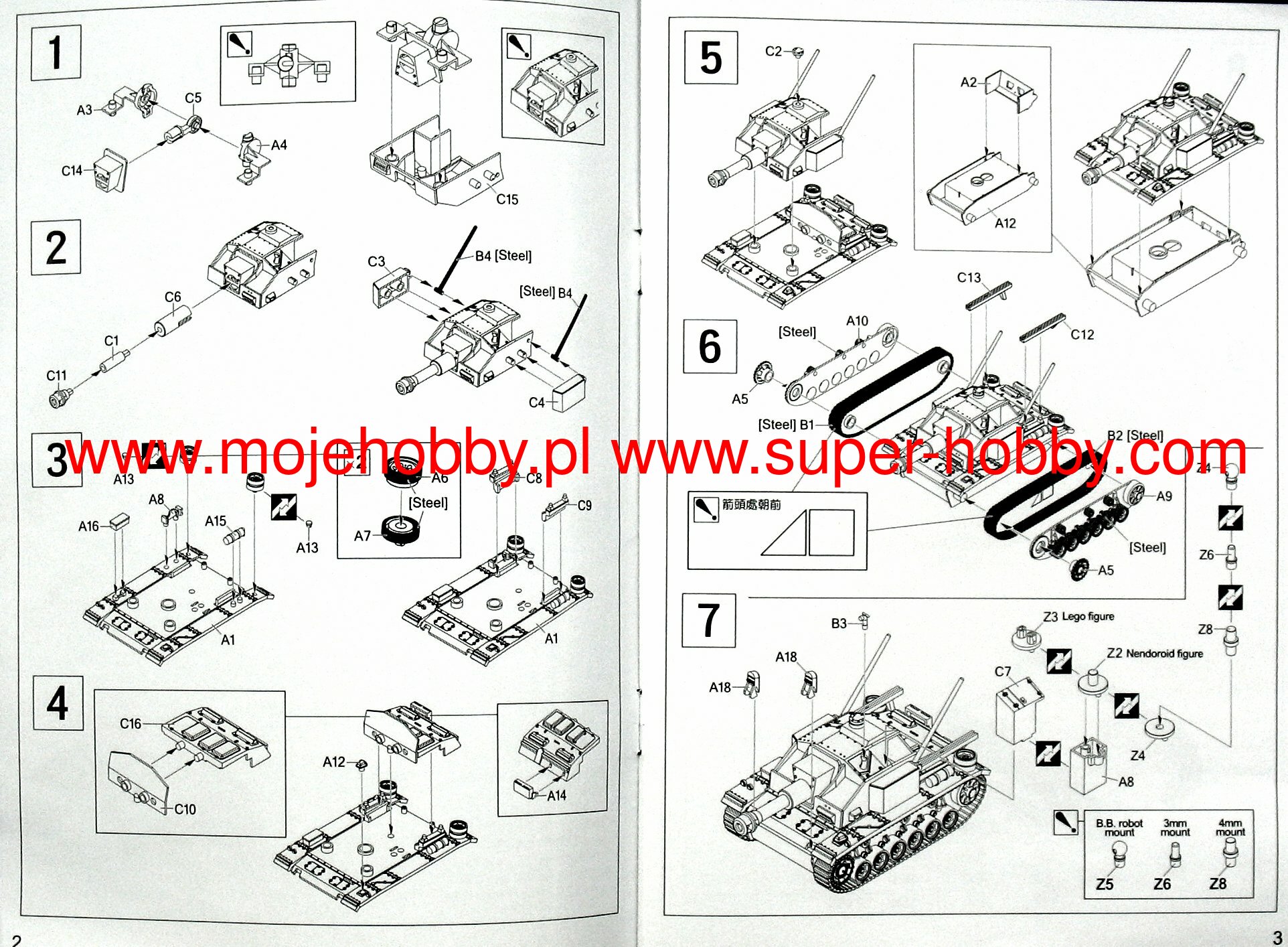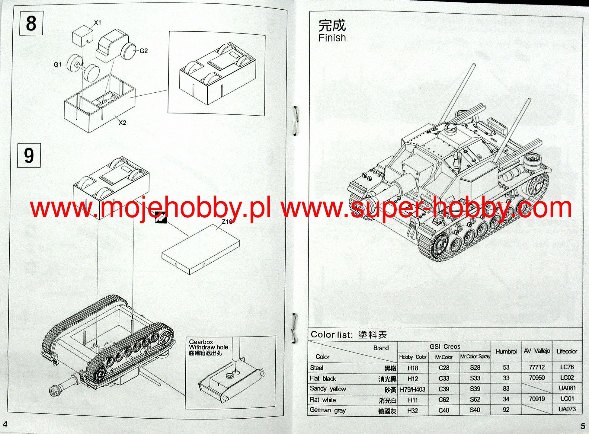 The StuG III (Sturmgeschutz III) was a German armored gun from the Second World War. The first prototypes of the vehicle were built in 1937, and serial production continued in the period 1940-1945, ending with the production of about 10,300 vehicles. The StuG III in the E version was powered by a single Maybach HL 120 TRM engine with 300 hp. It was armed (version E) with a 75mm short-barreled cannon. and 1 MG34 machine gun cal. 7.92 mm. The StuG III was created as a result of an initiative undertaken by Erich von Manstein, who in a letter to General Beck in 1935 signaled the need to create assault artillery for the advancing infantry within the mechanized units of the Wehrmacht. Ultimately, the order to design a new vehicle was commissioned to Daimler-Benz, which in turn used the chassis of the PzKpfw III Ausf. B. Several versions of the StuG III gun were produced during series production. Chronologically, the first was the A version, armed with the 75mm Stuk 37 L / 24 gun and based on the chassis of the PzKpfw III Ausf tanks. F and G and produced from the beginning of 1940. Soon after, version B was created - the first one to be produced on a large scale, which differed only slightly from the version A. In 1941, version D, which had better armor and sights, entered the production. The E version was quickly created, which was the first to receive additional armament in the form of the MG34 machine gun. At the beginning of 1942, the StuG III underwent a major modification to become actually a tank destroyer by installing a long-barreled 75mm StuK 40 L / 48 gun. The designation of the car was also changed to StuG 40. In the period 1940-1945, the StuG III served on almost all fronts on which the German army fought. It turned out to be a very useful weapon, cheap to produce and, most importantly, effective. It is estimated that different versions of the StuG were responsible for the destruction of approximately 20,000 Soviet tanks and armored vehicles in 1941-1945.