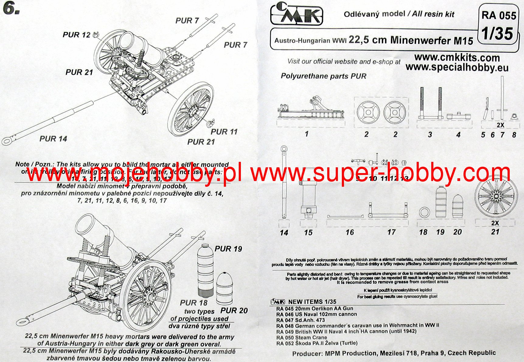 The Minenwerfer M.15 is an Austro-Hungarian, 225 mm heavy trench mortar (so-called mine thrower) from the First World War. The initial velocity of the demolition shell from this mortar was up to 170 m / s, with a maximum range of approx. 680 meters. Serial production continued in the years 1915-1918 and led to the creation of about 930 pieces of these weapons. The Minenwerfer M.15 was developed and put into series production at the Böhler plants as an alternative to the German Erhardt 25 cm Schwerer Minenwerfer trench mortar licensed for the Imperial-Royal Army, the production process of which turned out to be too demanding for the Böhler plants. The M.15 minenwerfer was front-loaded and had an unthreaded barrel line. It did not have very precise aiming means, which made it not very precise, and the projectiles fired from it often flew over the target. The main task of the Minenwerfer M.15 was to support the attacks of its own infantry on enemy trench lines. The mortar could fire missiles with combat gas. Two development variants (M.16 and M.17) were created in the course of production.