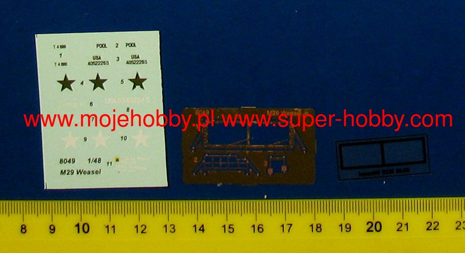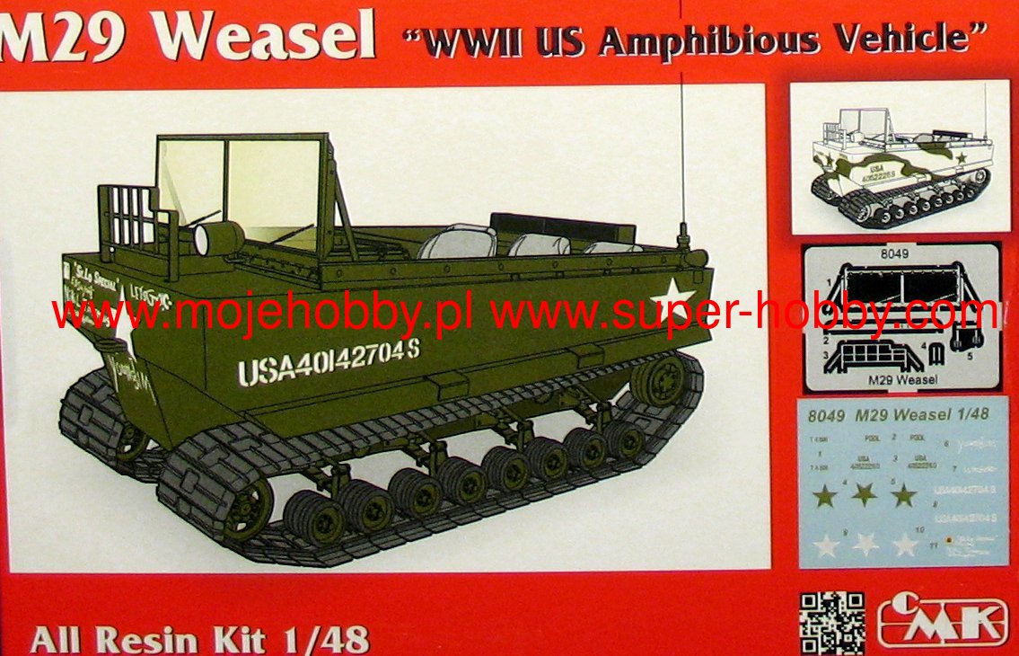 M29 Weasel był amerykańskim, uniwersalnym pojazdem transportowym z okresu II wojny światowej. Pierwsze prototypy pojazdu powstały w 1942 roku, a produkcja seryjna trwała w latach 1943-1945. M29 Weasel był napędzany pojedynczym silnikiem Studebaker 6-170 Champion o mocy 70 KM. Pojazd nie posiadał stałego uzbrojenia. M29 Weasel powstał w firmie Studebaker na zamówienie US Army, która zgłaszała zapotrzebowanie na lekki pojazd transportowy zdolny do poruszania się w trudnych warunkach terenowych zwłaszcza w głębokim śniegu. Początkowo pojazd posiadał oznaczenie T19, ale szybko zostało ono zmienione na M29. Wersją rozwojową M29 był model M29C, który posiadał zdolności amfibijne, poprzez dodanie pływaków oraz ster kierunku w tylnej części kadłuba pojazdu. M29 Weasel wszedł do służby w siłach zbrojnych USA w 1942 roku, ale na masową skalę zaczęto go wykorzystywać dopiero w toku kampanii włoskiej (1943-1945) oraz walk w północno-zachodniej Europie w okresie 1944-1945. Od listopada 1944 roku M29 Weasel walczył również na Pacyfiku w ramach jednostek Korpusu Piechoty Morskiej. Pojazdy tego typu wzięły udział w walkach o Iwo-Jimę i Okinawę w 1945 roku. Innymi użytkownikami pojazdów M29 Weasel były także Francja, Kanada czy Wielka Brytania. Co oprócz modelu będę potrzebować do jego sklejenia?