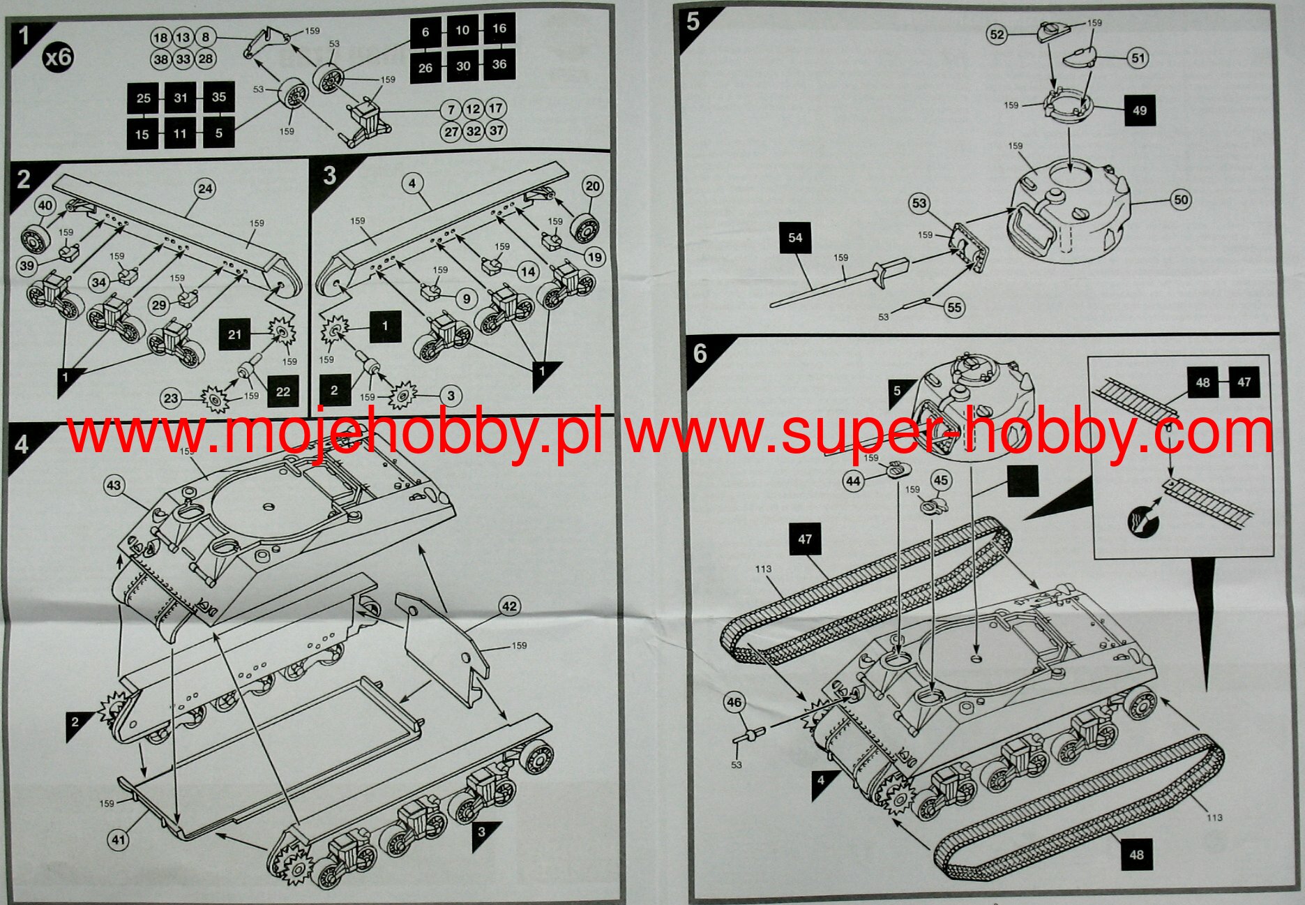 The M4 Sherman was an American medium tank from the Second World War. The first prototypes were built in 1941, and serial production was carried out in the period 1942-1945. In total, about 49,000 copies of this tank of all versions were created, which makes it one of the most produced tanks of the Second World War and the most important tank in the equipment of the Allied armies during this conflict. The M4 Sherman was powered by a single engine version of the M4A1 Continental R 975 C4 with a power of 400 hp . The vehicle was armed with - depending on the version - a single 75mm M3 cannon or a 76mm M1 cannon or a 105mm M4 howitzer and two 7.62mm Browning1919A machine guns. The M4 Sherman was developed as the successor to the M2 and M3 tanks, although it used many of the latter's components. First of all, it only used a slightly changed chassis of the M3 Lee car. When designing the M4 Sherman, the emphasis was primarily on playing the role of an infantry support vehicle, and not fighting enemy tanks - this was the role of American tank destroyers. Only possible clashes with the carts were assumed Pz.Kpfw III and Pz.Kpfw IV. A significant role was also played in the mass production of the new tank and the lowest possible production costs. The result was a tank with good armament for 1942 and early 1943, average armor, but with a tilted front plate, but also with poor maneuverability and - especially in the first versions - very susceptible to fire as a result of hitting the engine compartment . At the same time, however, a tank was created that could be truly large-scale production and had a significant modernization potential. Many development versions were created in the course of serial production M4 Sherman. Chronologically the first was the M4A1 version that already had a cast armor. Another - M4A2 - had welded armor and a new General Motors 6460 engine with 375-410hp, but much less prone to fire. A version of the M4A3 also appeared, armed with a 105 mm howitzer and powered by a Ford GAA engine with a capacity of 450 HP. Based on the M4A3 version, two sub-versions were created: the M4A3E2 Jumbo with reinforced armor and the M4A3E8 with the HVSS and 76mm gun. An interesting development version was also the T34 Calliope with mounted missiles not guided on the turret. The M4 Sherman was also supplied in huge numbers to the British and Red Army. The former developed a version of the Firefly based on it, with a great 17-pounder anti-tank gun. During World War II, M4 Sherman tanks fought in North Africa (1942-1943), Italy (1943-1945), during the battles in Normandy, France and West Germany (1944-1945), but also in the Pacific or in the ranks The Red Army on the Eastern Front. After World War II, the M4 Sherman was used in many countries, including Argentina, Belgium, India, Israel, Japan, Pakistan and Turkey. He also took part in many post-1945 conflicts, including the Indo-Pakistani War of 1965 and the Six-Day War of 1967.