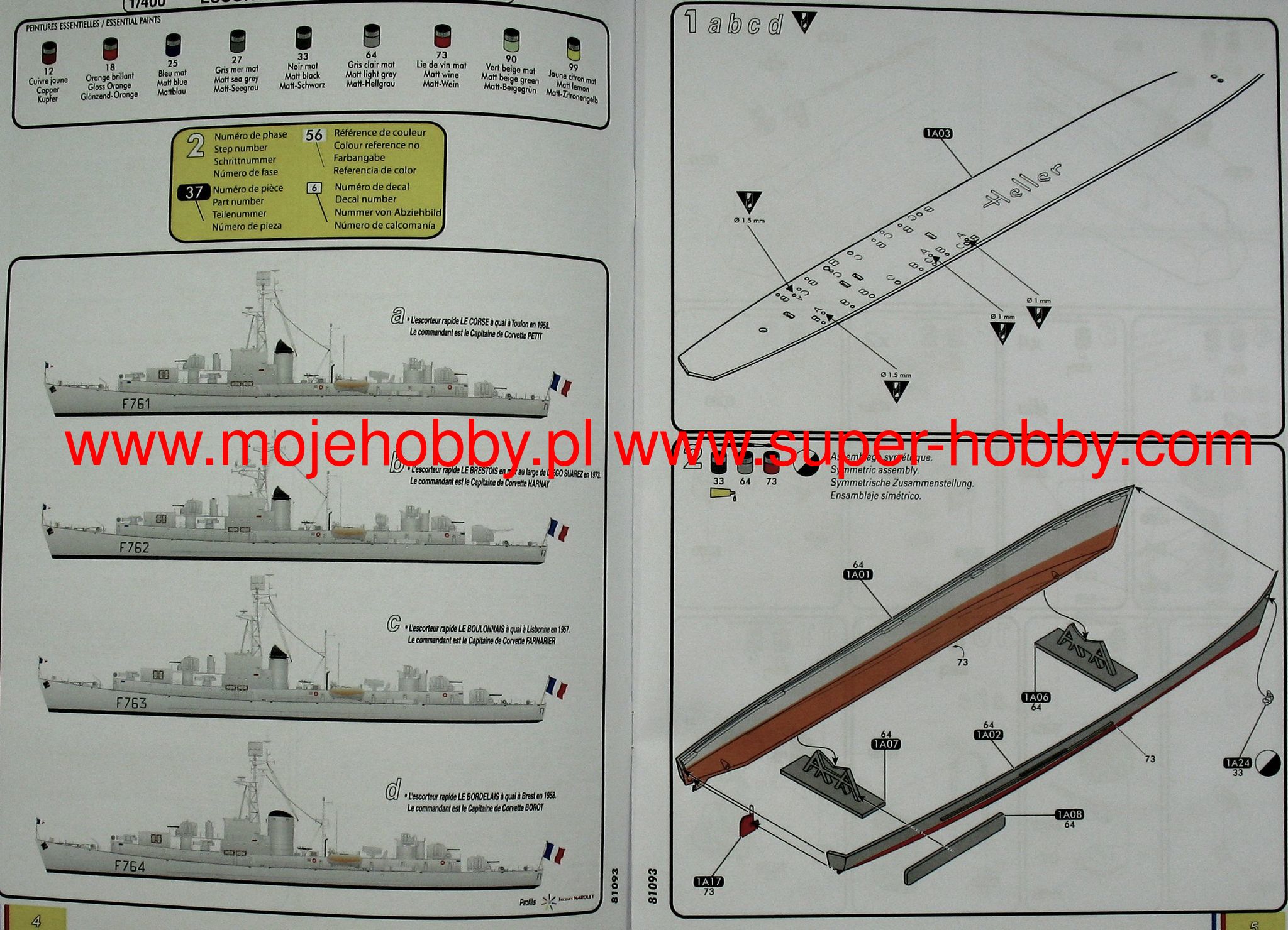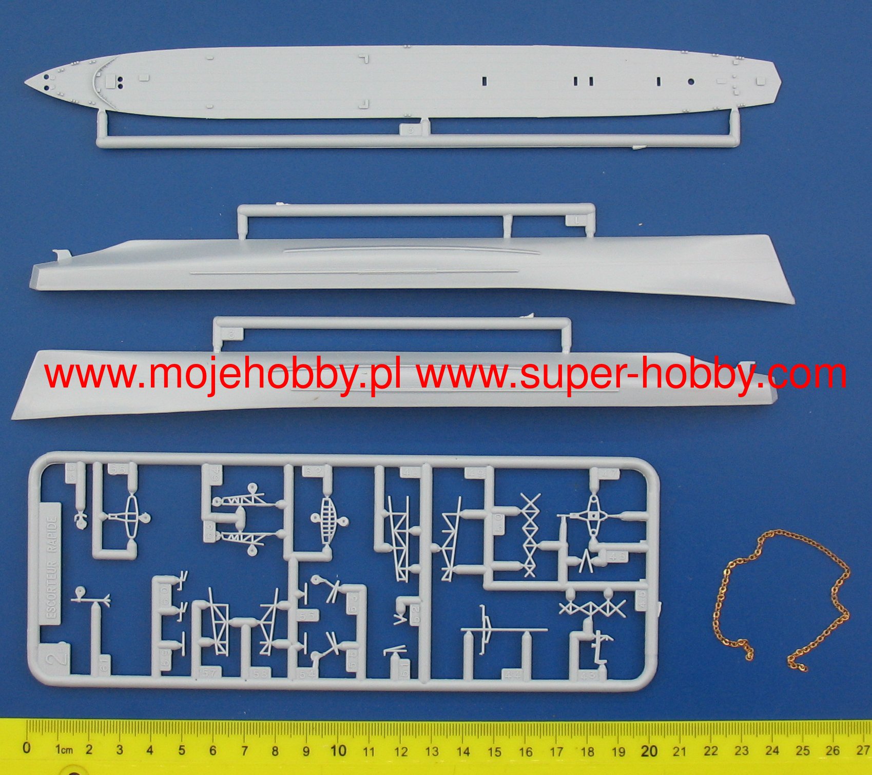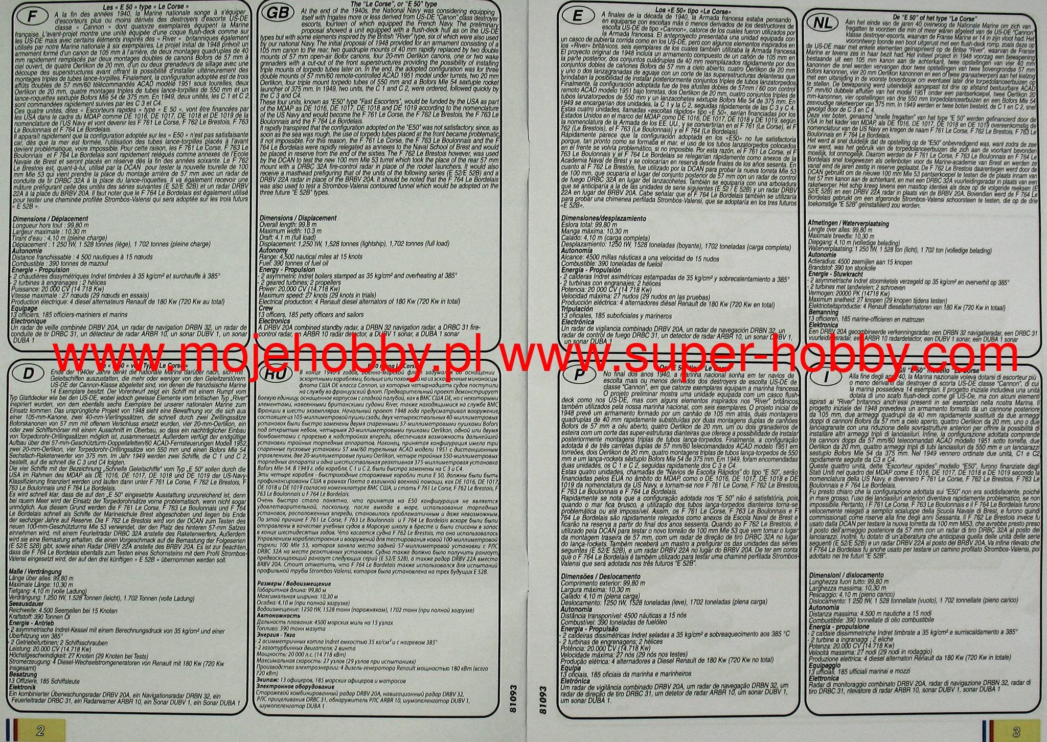 Le Corse (albo Typ E-50) to określenie klasy francuskich szybkich fregat (fr. Escorteurs Rapide) z okresu powojennego. Jednostki tej klasy były wodowane w latach 1952-1953 i służyły w Marine Nationale do 1976 roku. Długość okrętu tej klasy wynosiła 99,8 m, szerokość 10,3 m, a wyporność pełna ok. 1700 ton. Prędkość maksymalna dochodziła do 27 węzłów. Główne uzbrojenie stanowiło między innymi: 6 dział kal. 57 mm w trzech wieżach po dwa działa, 2 działa Oerlikon kal. 20 mm czy 12 wyrzutni torpedowych kal. 550 mm. Klasa szybkich fregat Le Corse w sumie liczyła 4 okręty o nazwach: Le Corse, Le Brestois, Le Boulonnais oraz Le Bordelais. Fregaty tego typu były budowane przede wszystkim z myślą o prowadzeniu działań konwojowych oraz zapewnieniu własnym jednostkom handlowym zabezpieczenia przed działaniami nieprzyjacielskich samolotów oraz okrętów podwodnych. Konstruktorzy, przy projektowaniu tej klasy położyli spory nacisk na spory zasięg pływania, łącząc go jednocześnie z wysoką jak na owe czasy prędkością maksymalną. Bardzo często przyjmuje się, że fregaty typu Le Corse były pierwszymi budowanymi od podstaw okrętami dla Marine Nationale po zakończeniu II wojny światowej i miały symbolizować się odrodzenie francuski sił morskich. Co oprócz modelu będę potrzebować do jego sklejenia?
