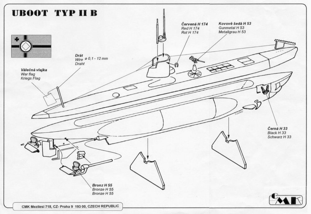 U-booty Type II były niemieckimi okrętami podwodnymi, których budowę zainicjowano w 1934 roku. Długość jednostek Type II wynosiła zależnie od podtypu: od 41 m do 44 m, szerokość od 4,08 m do 4,92 m, a wyporność podwodna od 303 ton do 364 ton. Prędkość maksymalna U-bootów Type II na powierzchni wynosiła ok. 13 węzłów, a maksymalna prędkość podwodna ok. 7 węzłów. Uzbrojenie główne stanowiły 3 wyrzutnie torpedowe kal. 533 mm wszystkie na dziobie z łącznie 5 torpedami lub 18 minami zabieranymi na pokład okrętu. Uzbrojenie dodatkowe to 1 działko przeciwlotnicze kal. 20 mm. Okręty tego typu powstały przed wszystkim w stoczniach w Kilonii oraz Lubece. U-booty Type II były pierwszym okrętów podwodnych budowanych dla niemieckiej marynarki wojennej po 1918 roku. W swych ogólnych założeniach był bardzo wyraźnie wzorowane na okręcie budowanym dla Finlandii o nazwie „Vessiko”. W pełni świadomie traktowano je jako okręty, które miały dać niemieckiemu przemysłowi stoczniowemu odpowiednie kwalifikacje do wielkoseryjnej produkcji nowych typów okrętów podwodnych, o większych możliwościach bojowych. Stąd też U-booty Type II były przeznaczane do zadań szkoleniowych i obrony wybrzeży. Posiadały też sporo wad: bardzo ograniczony zasięg działania, powolny proces zanurzania się oraz niską prędkość podwodną. W toku II wojny światowej wykorzystywano je przede wszystkim na Bałtyku oraz Morzu Północnym, a w niewielkim stopniu po przerzuceniu Dunajem także na Morzu Czarnym. Co oprócz modelu będę potrzebować do jego sklejenia?
