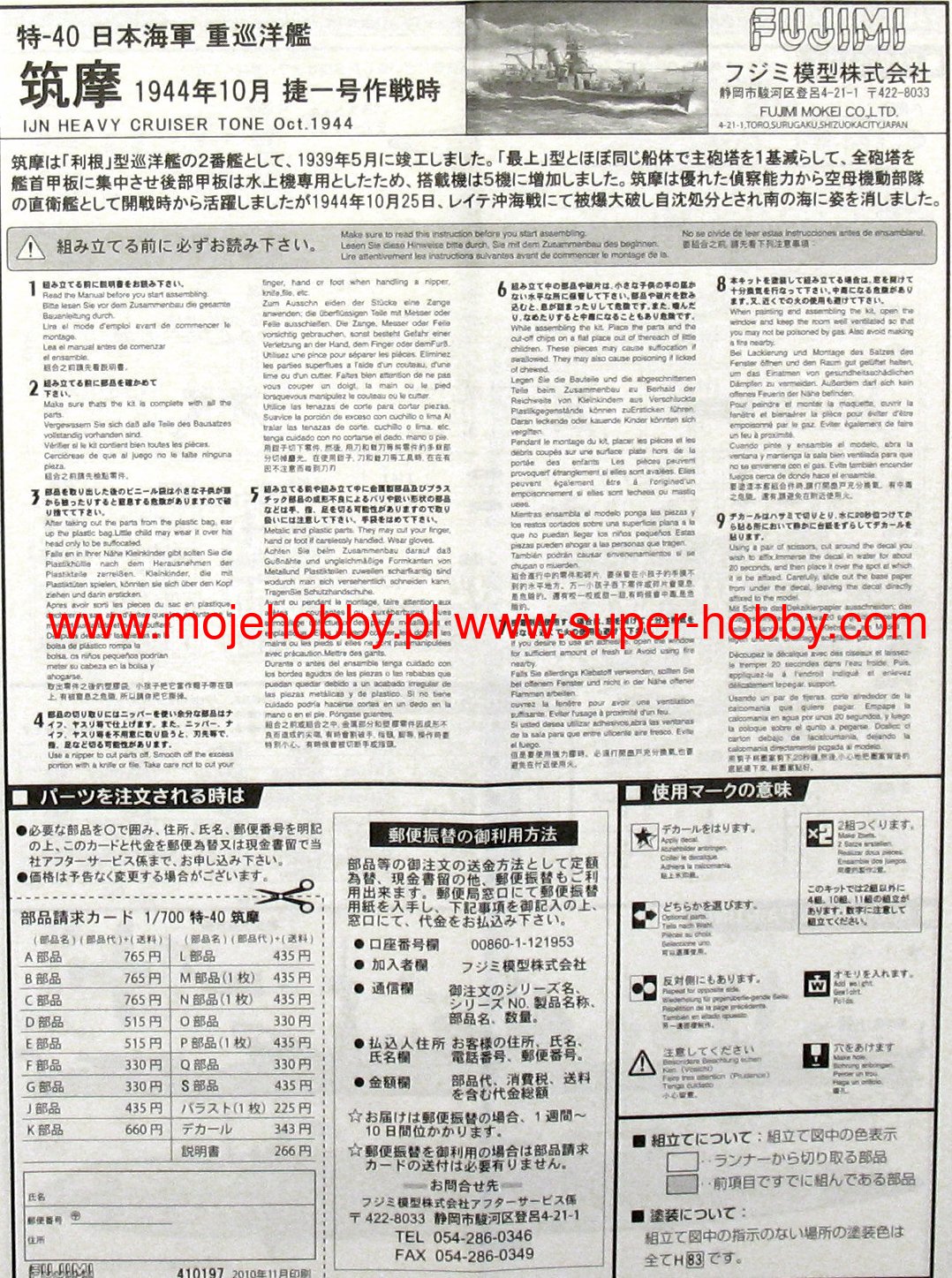 Chikuma was a Japanese heavy cruiser the keel of which was laid in 1935, launched in March 1938, and commissioned in the Imperial Japanese Navy in May 1939. The ship was 189 m long, 19.4 m wide, and had a full displacement of 15,400 tons. The maximum speed of the cruiser Chikuma was 35 knots. The main armament at the time of the launch was 8 203 mm guns in four turrets, two guns each, and the additional armament included: 12 127 mm guns and 12 610 mm torpedo tubes. Chikuma was the second and final Tone-class cruiser. Initially, units of this type were planned to be built based on the already proven project of the Mogami cruisers, but due to the withdrawal of Japan from the disarmament systems, and especially from the London Treaty of 1932, it allowed the designers to deeply redesign new units, e.g. by adding a larger number of seaplanes, which allowed the Tone-class ships to perform reconnaissance functions in relation to their own groups of aircraft carriers. Cruiser Chikuma began her combat route in World War II by participating in the attack on the American base Pearl Harbor on December 7, 1941. Shortly after (April 1942) he took part in the famous rally of the Japanese fleet to the Indian Ocean. Chikuma also fought in the Battle of Midway (June 1942), and the ship's seaplanes were the first to detect the USS Yorktown aircraft carrier. The combat trail ended in the Battle of Leyte, when Chikuma was sunk by American aircraft on October 25, 1944.