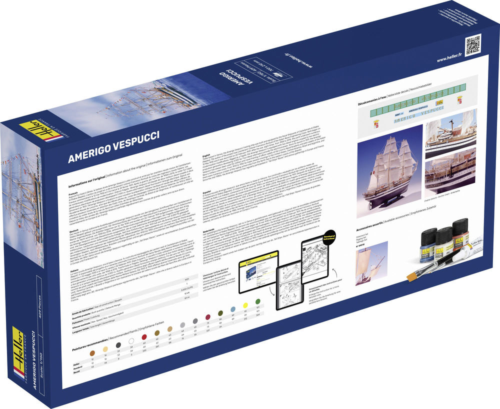 The SV Amerigo Vespucci is an Italian training sailing ship from the 20th century. The construction of the ship began in 1930, and the launch took place in February 1931. The ship was built at the shipyard in Castellmmaer di Stabia in Naples, southern Italy. The vessel is 101 m long by 15 m wide. Its displacement is about 4,200 tons. The mechanical drive is a Fiat Q 426 engine with 2000 hp. SV Amerigo Vespucci was built as a training ship for the Regia Marina, the Italian Navy, and its main designer was Col. Francesco Rotundi, who in turn was modeled on the great sailing ships at the turn of the 17th and 18th centuries. The ship was made of steel and has quite rich sails with a total area of approx. 2,850 m2. At present, the unit has very modern navigation equipment, but it has many old design solutions, such as capstans powered by human hands. In the period 1931-2002 SV Amerigo Vespucci took part in a total of 71 school cruises, cruising mainly in the Mediterranean, the North Sea and the Atlantic.